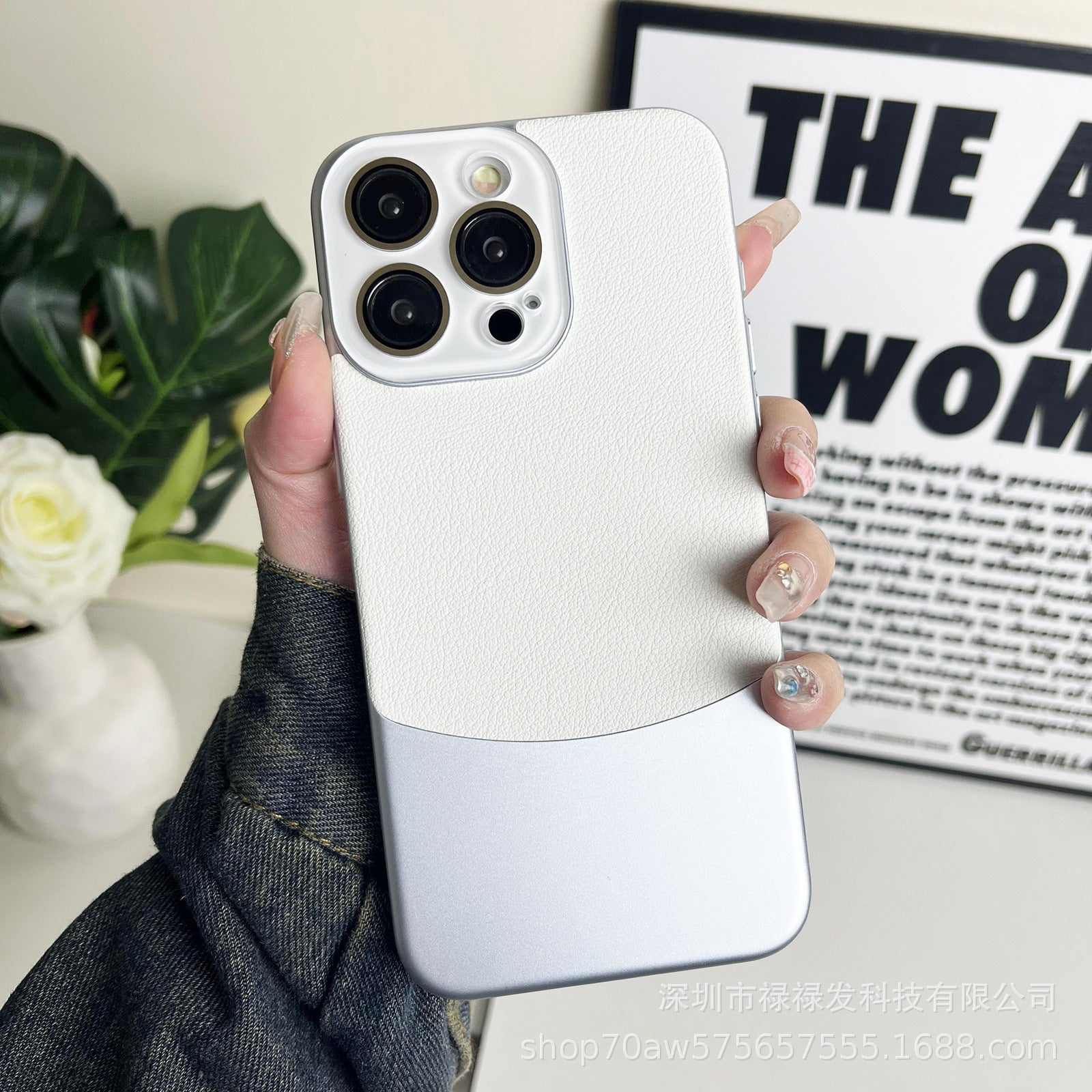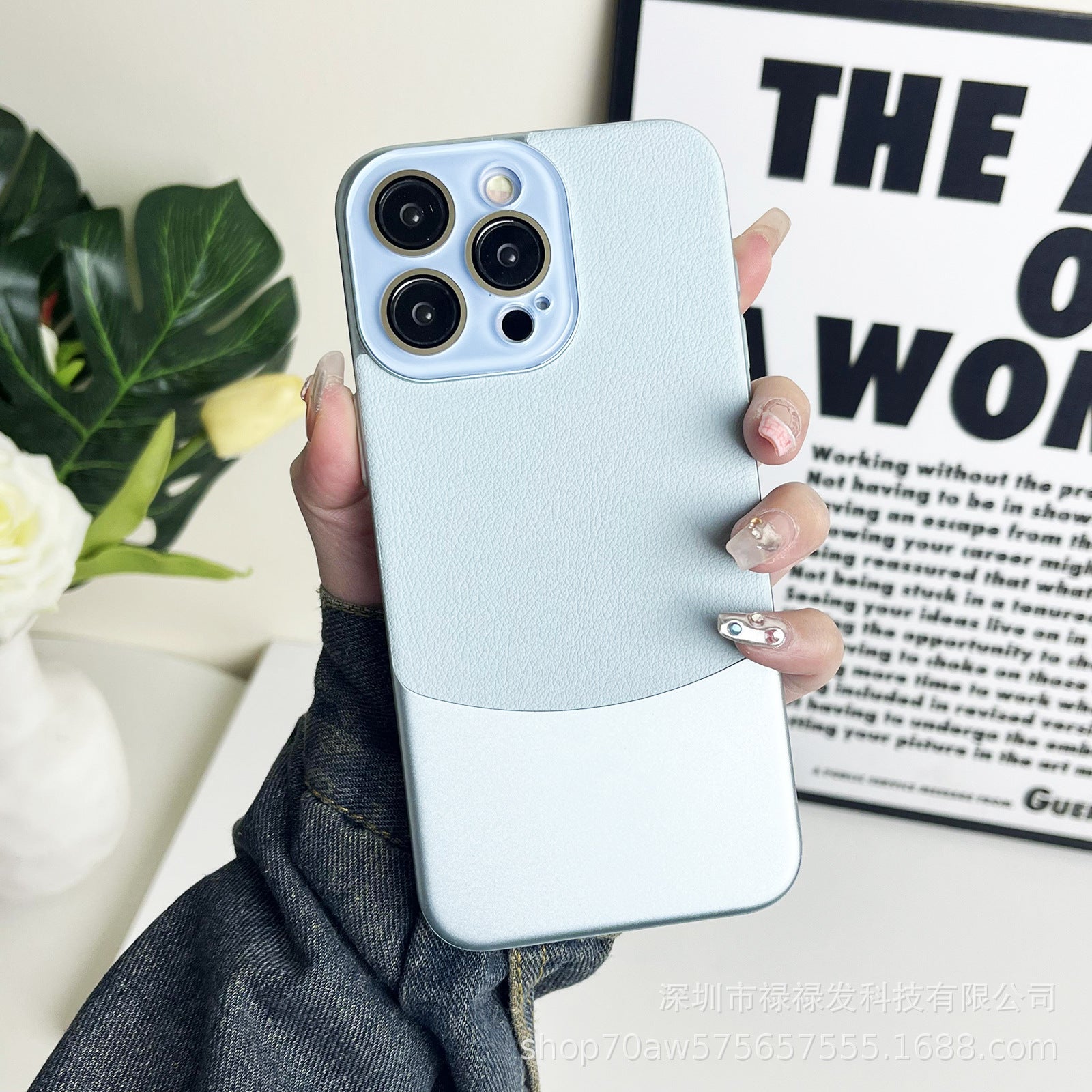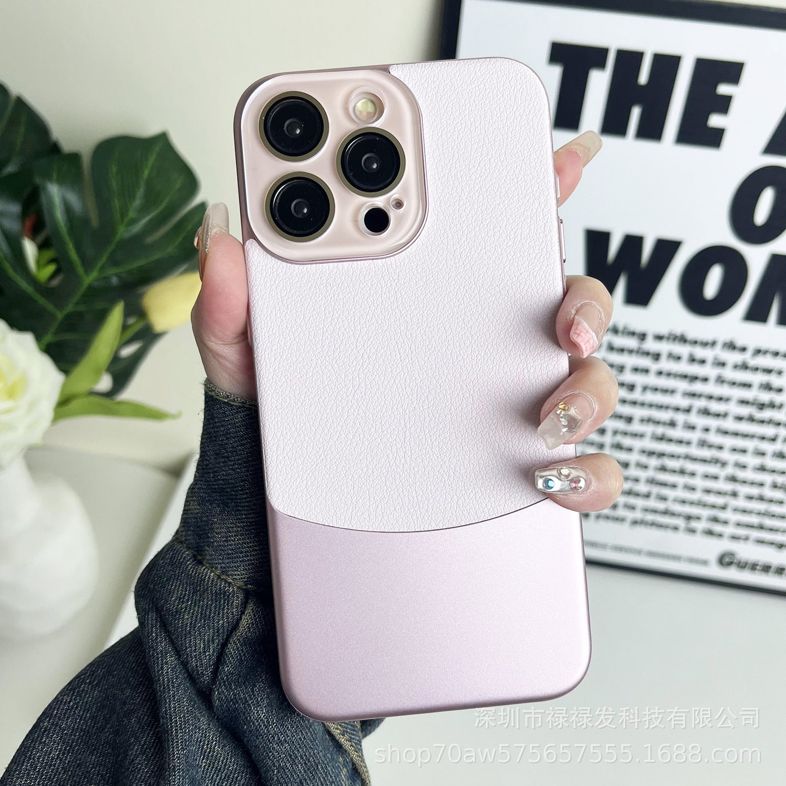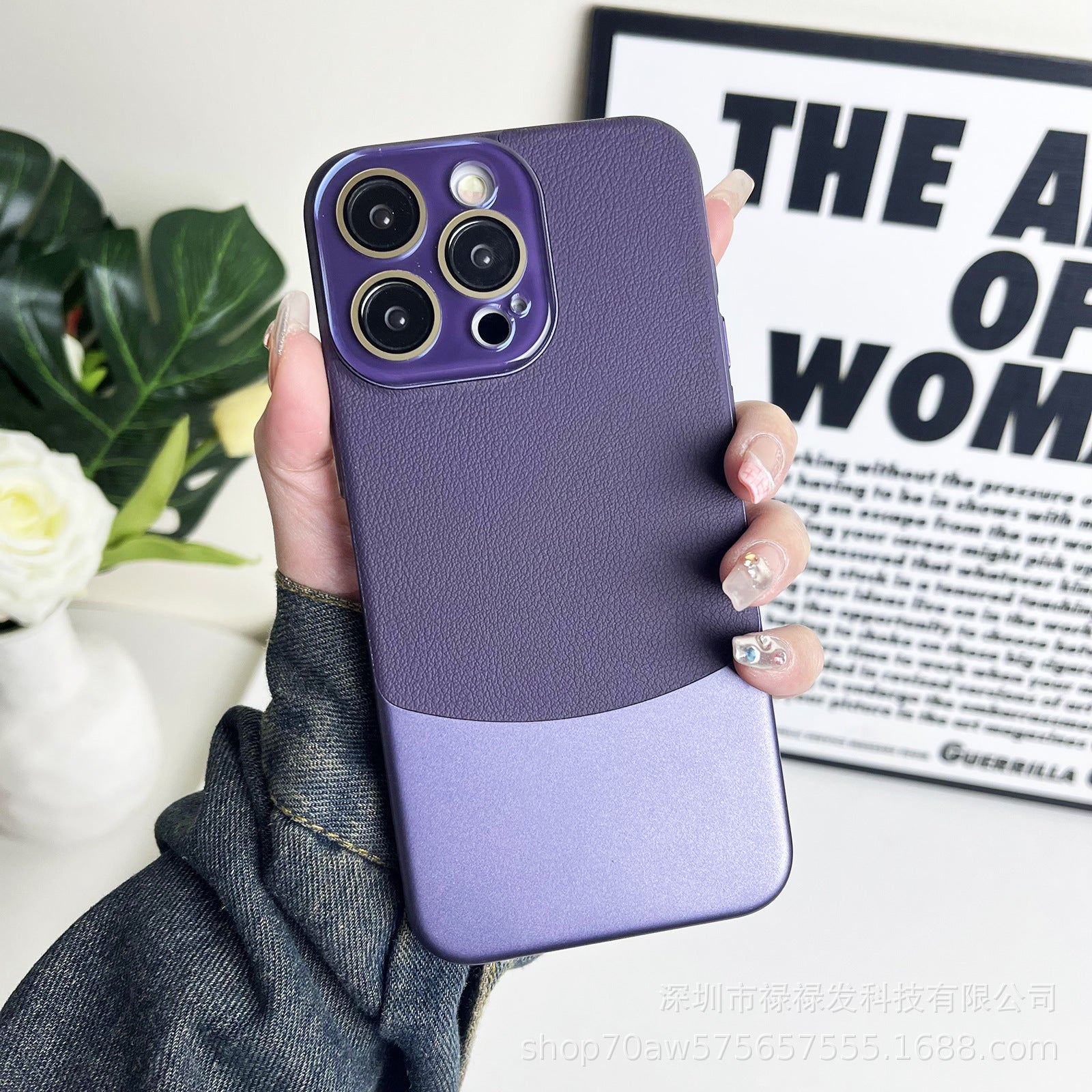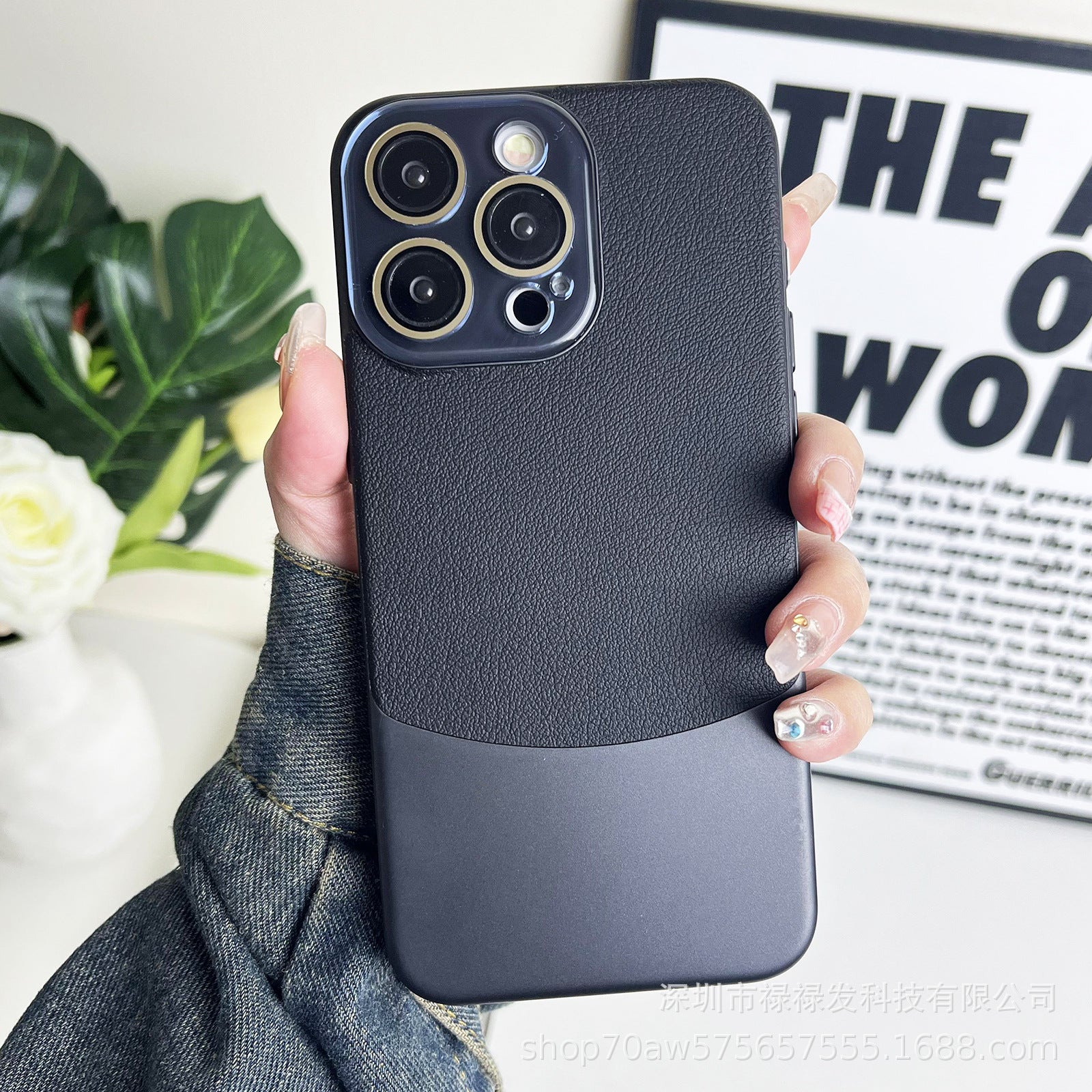 Crystal lens nappa shell suitable for Apple 11/12/13/14/15 mobile phone case all-inclusive plain leather double combinati