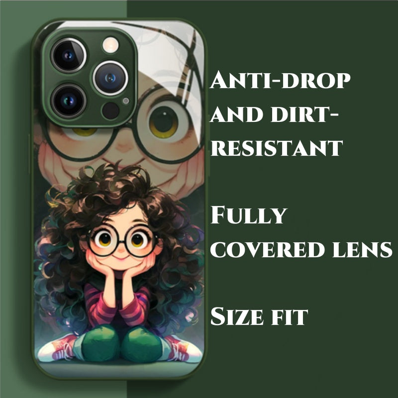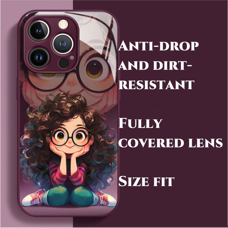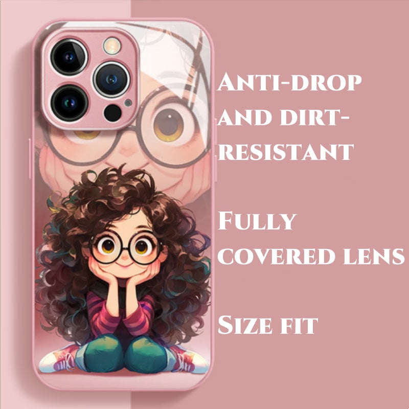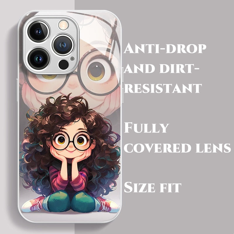 Curly Hair Glasses Girl Liquid Glasses Cartoon Phone Case