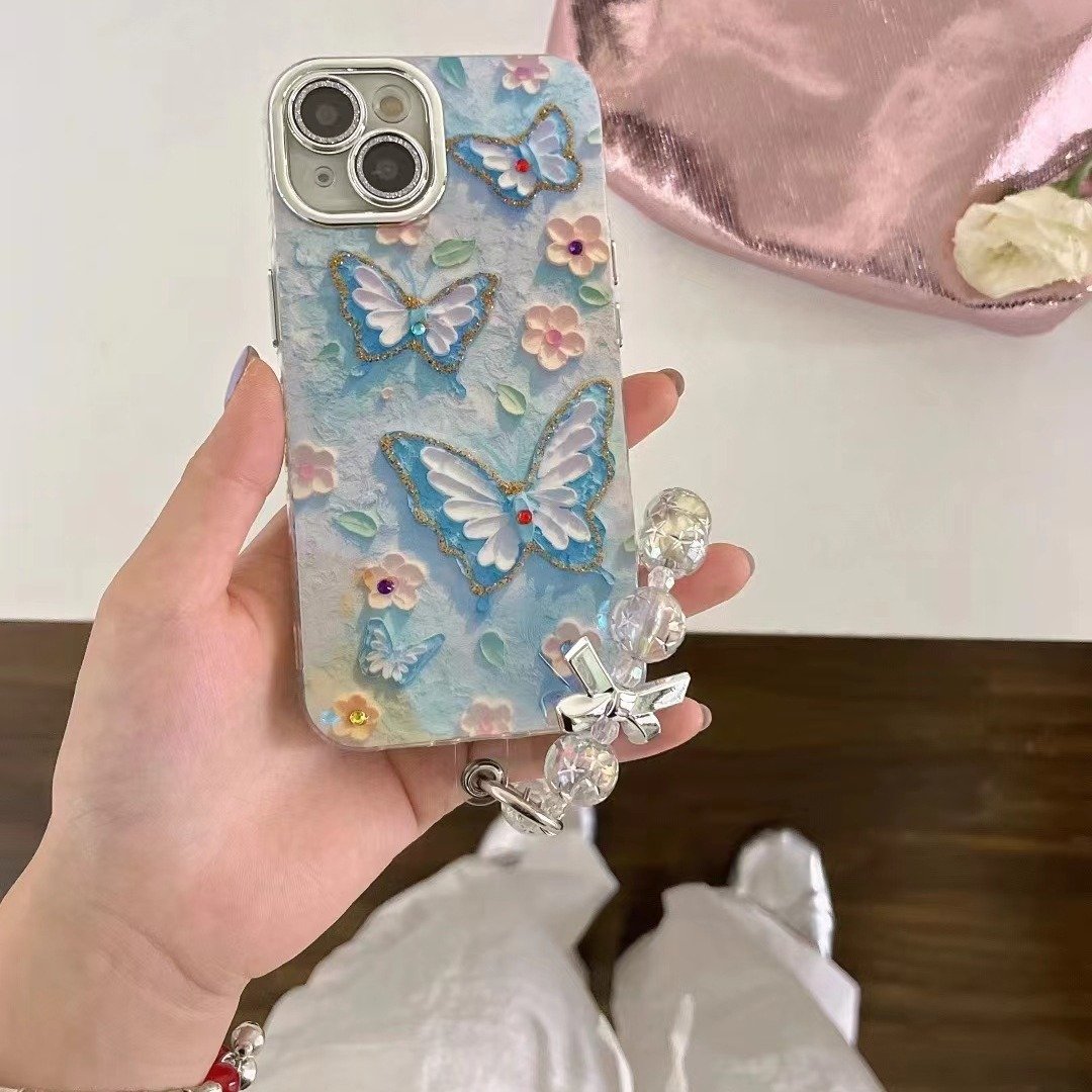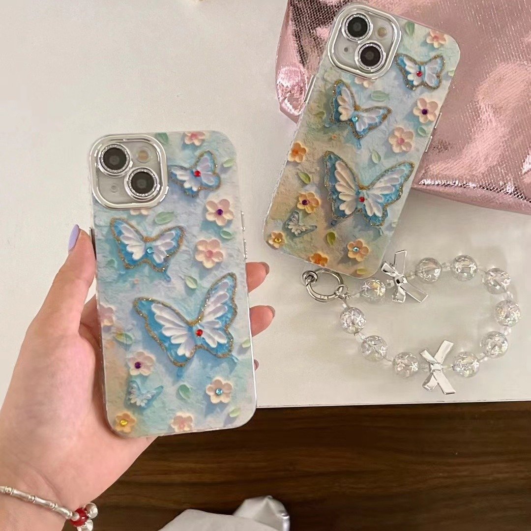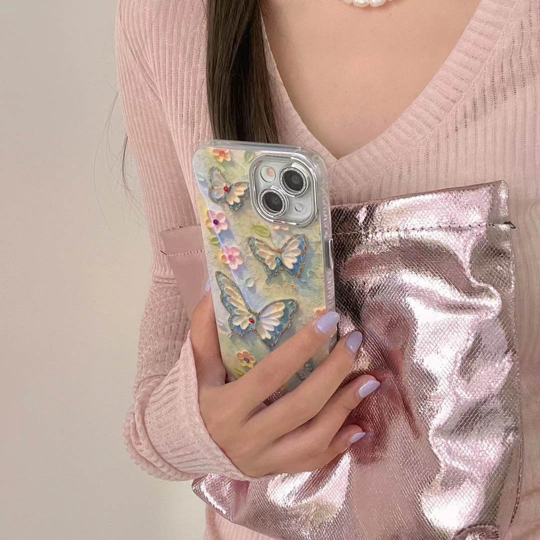 The beautiful Glossy shimmering glitter bling sparkling diamond Rhinestone pearly-lustre oil painting Butterfly Holographic Iridescent Laser design is eye-catching, showing off your personality. The Graphic printing design makes this shiny gradient pearl-like shine won't fade over time. You'll be raving about this case, and you'll receive many compliments with it.