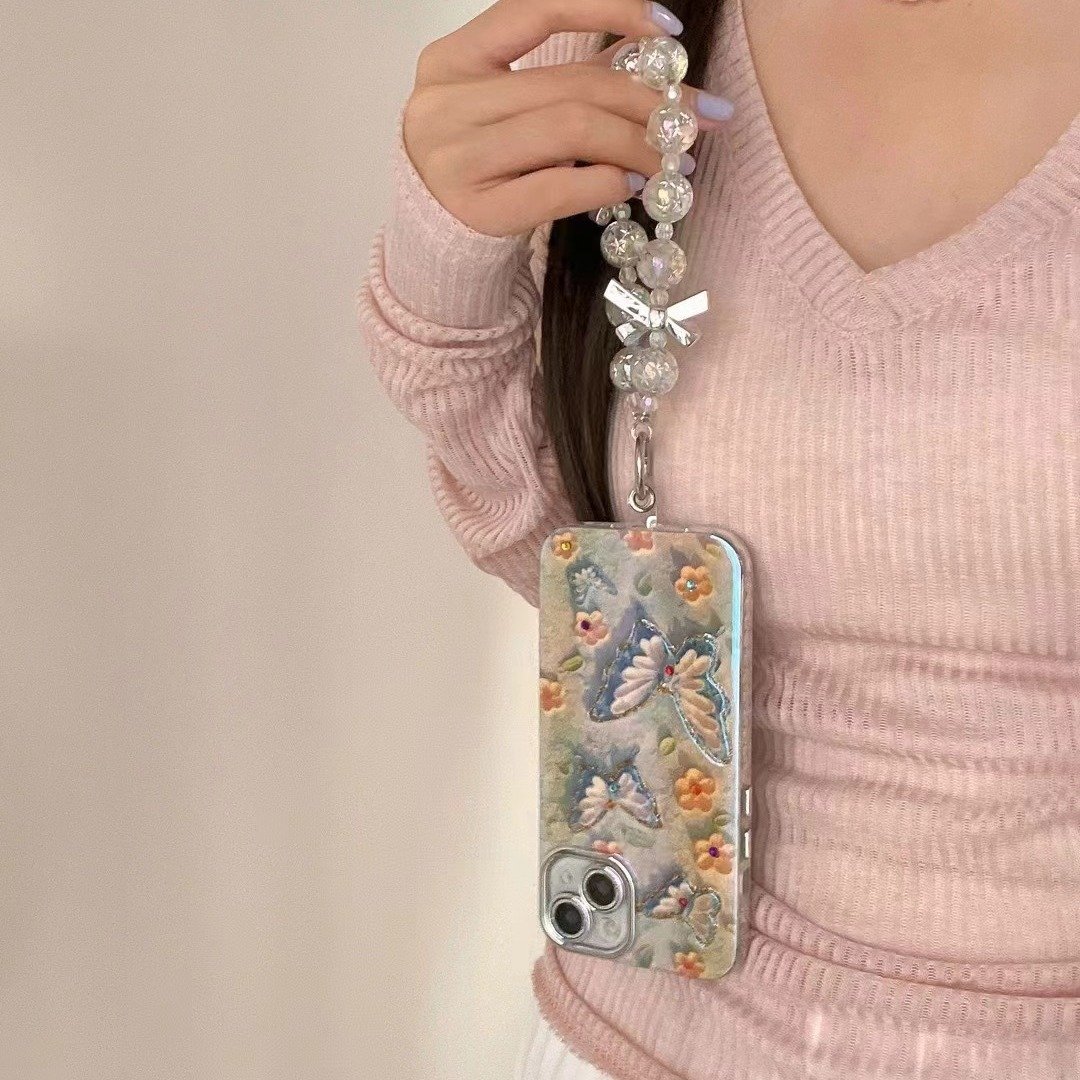 1* Dots Drill Oil Painting Flower Butterfly Phone Case