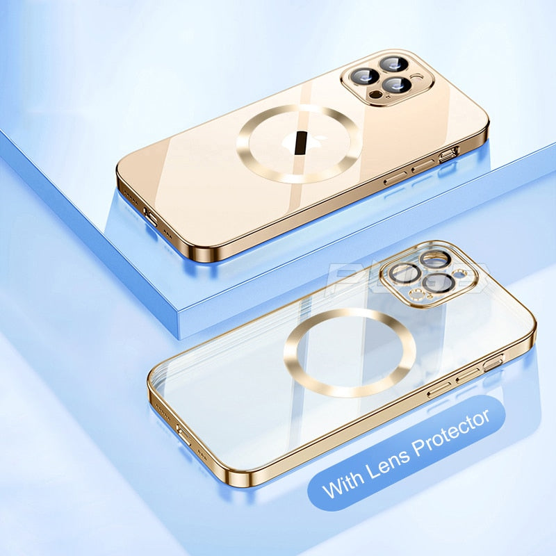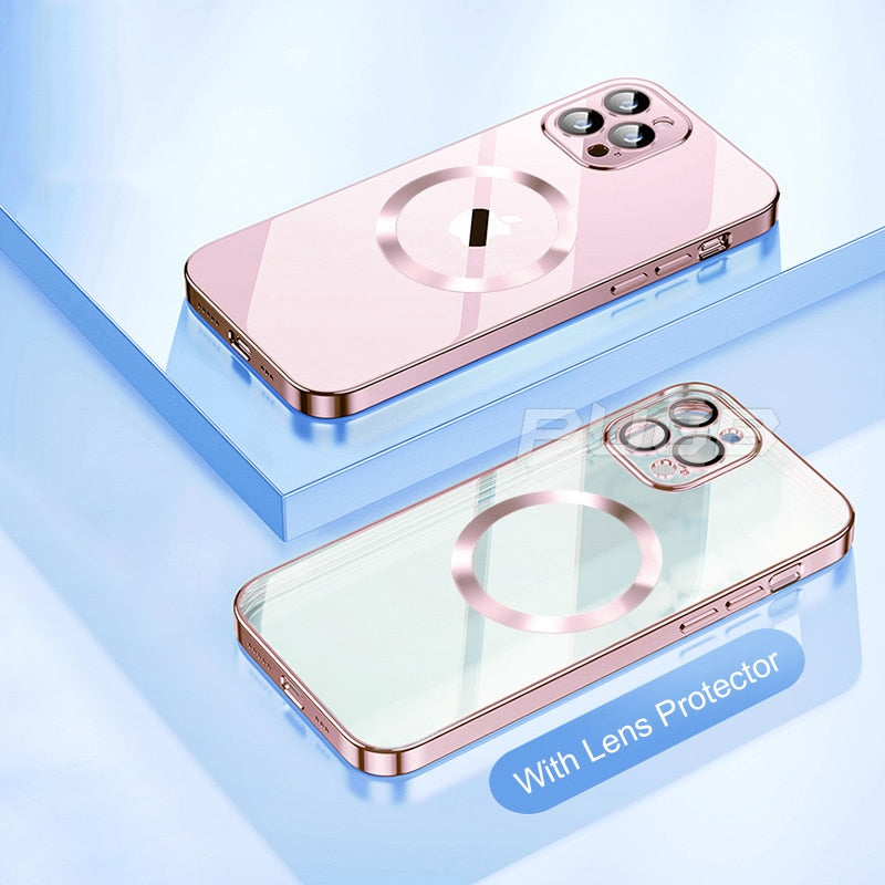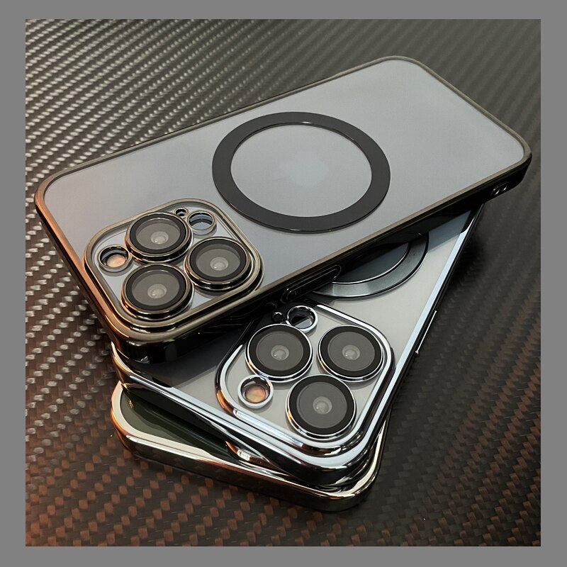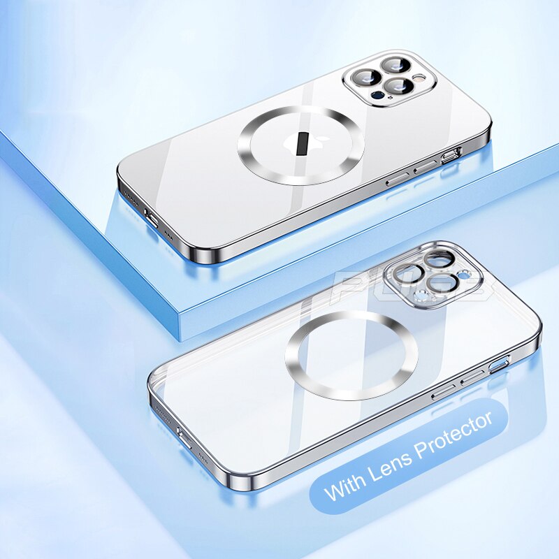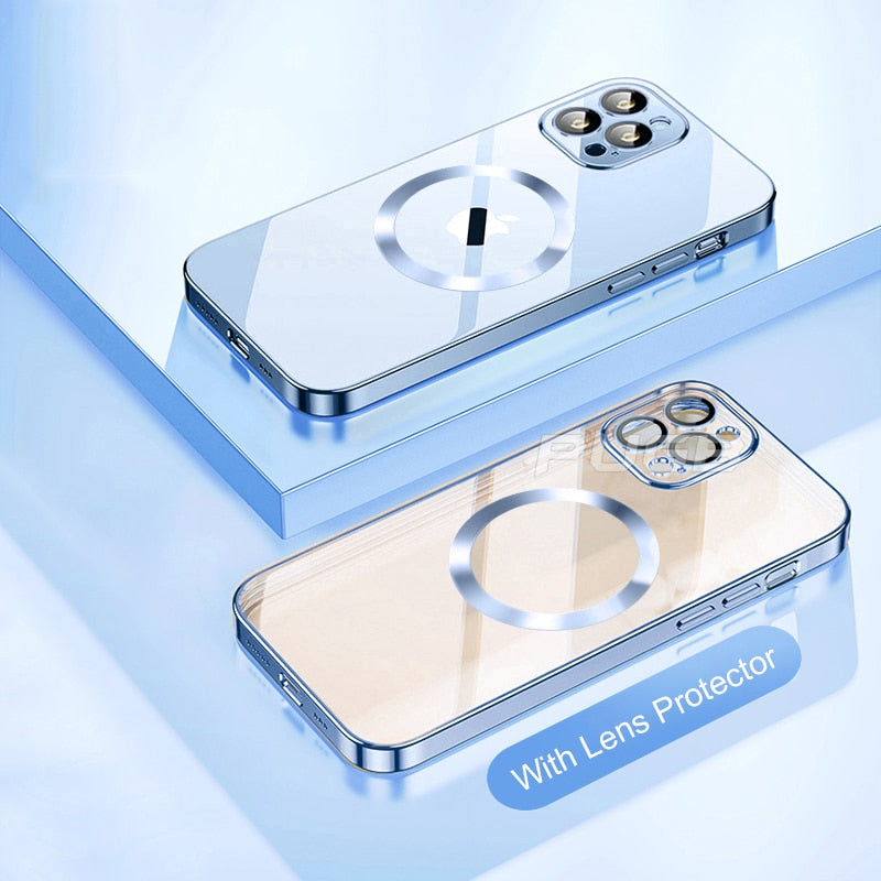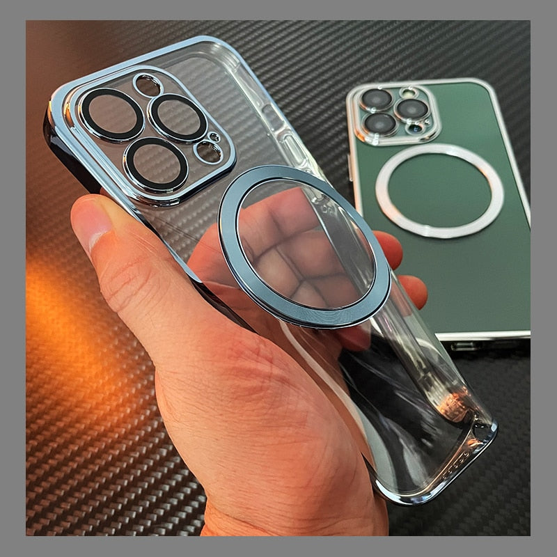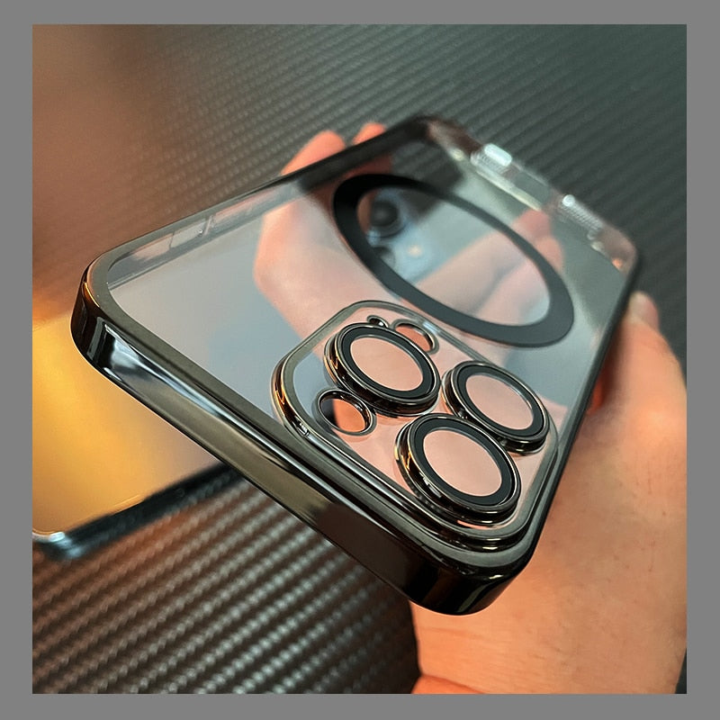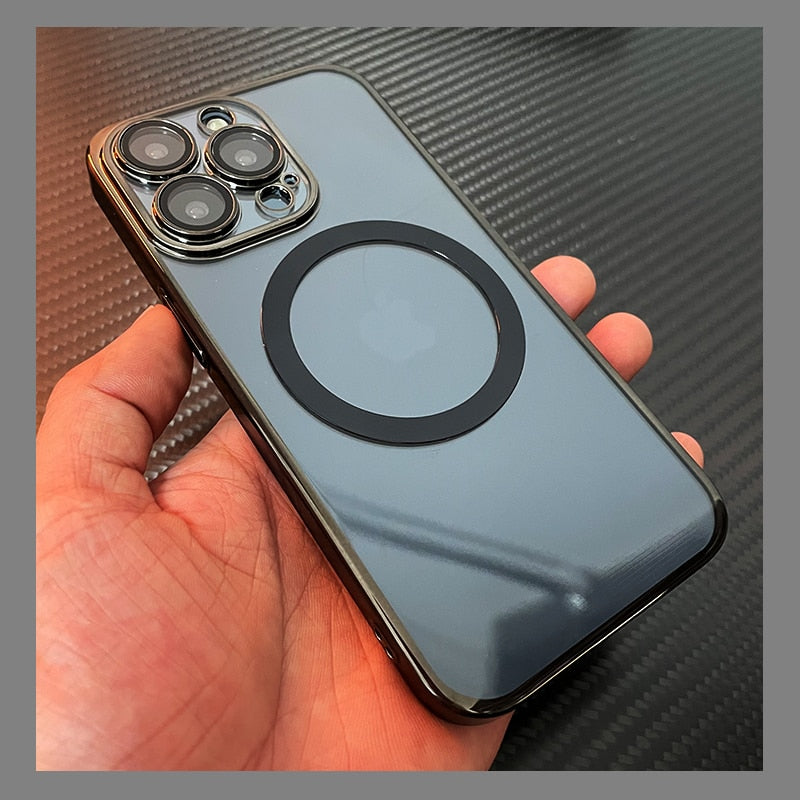 For Magsafe Transparent Magnetic Case For iPhone 14 Plus 13 12 11 Pro Max Clear With Anti-dust Net Glass Lens Protector Cover