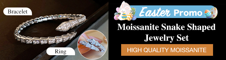 Easter promo - Moissanite Snake Shaped Bracelet and Ring Set - Free Jewelry Box.
