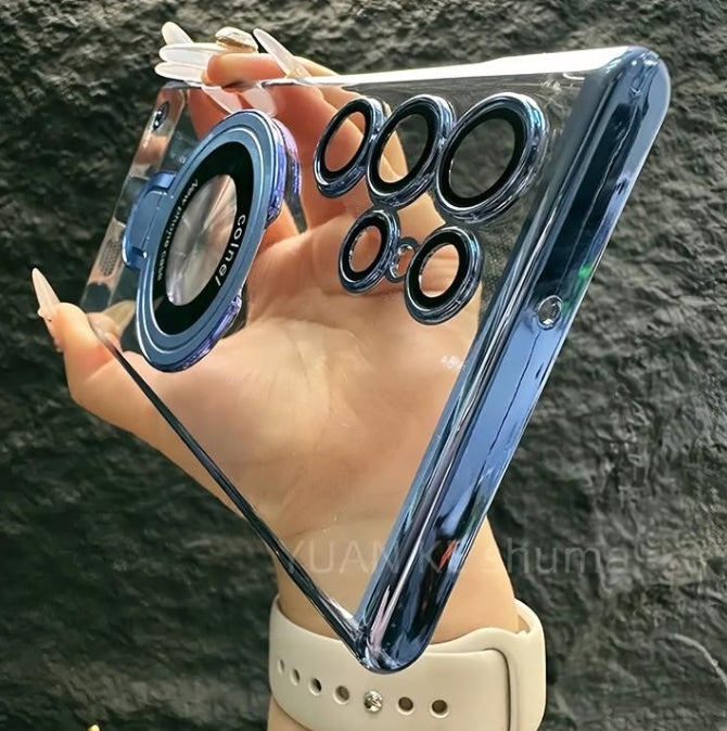 Electroplated Foldable Stand Magnetic Attraction High Definition High Transparency Phone Case for Samsung