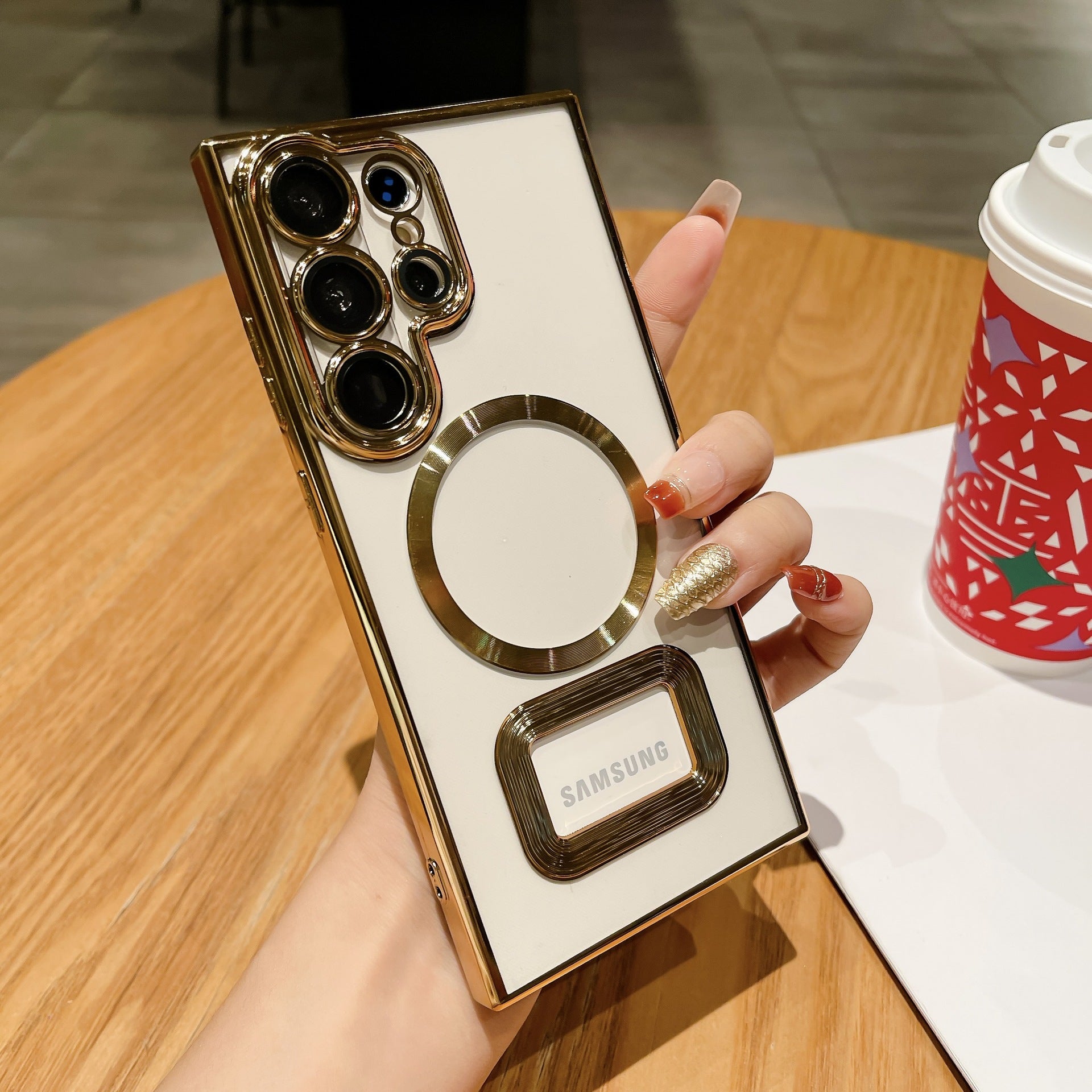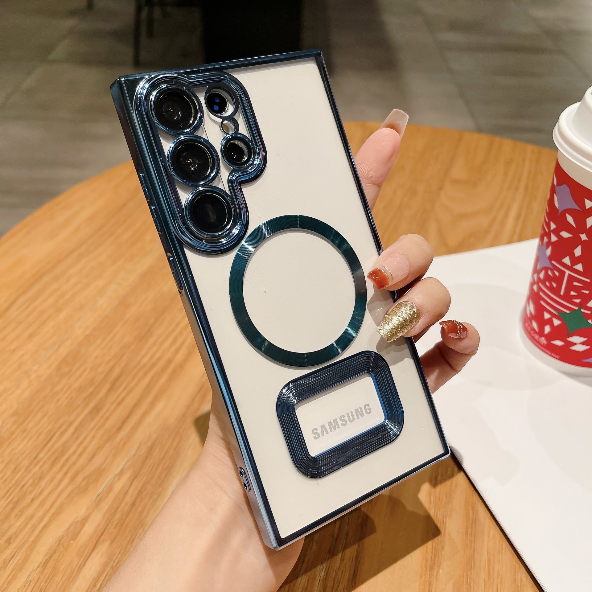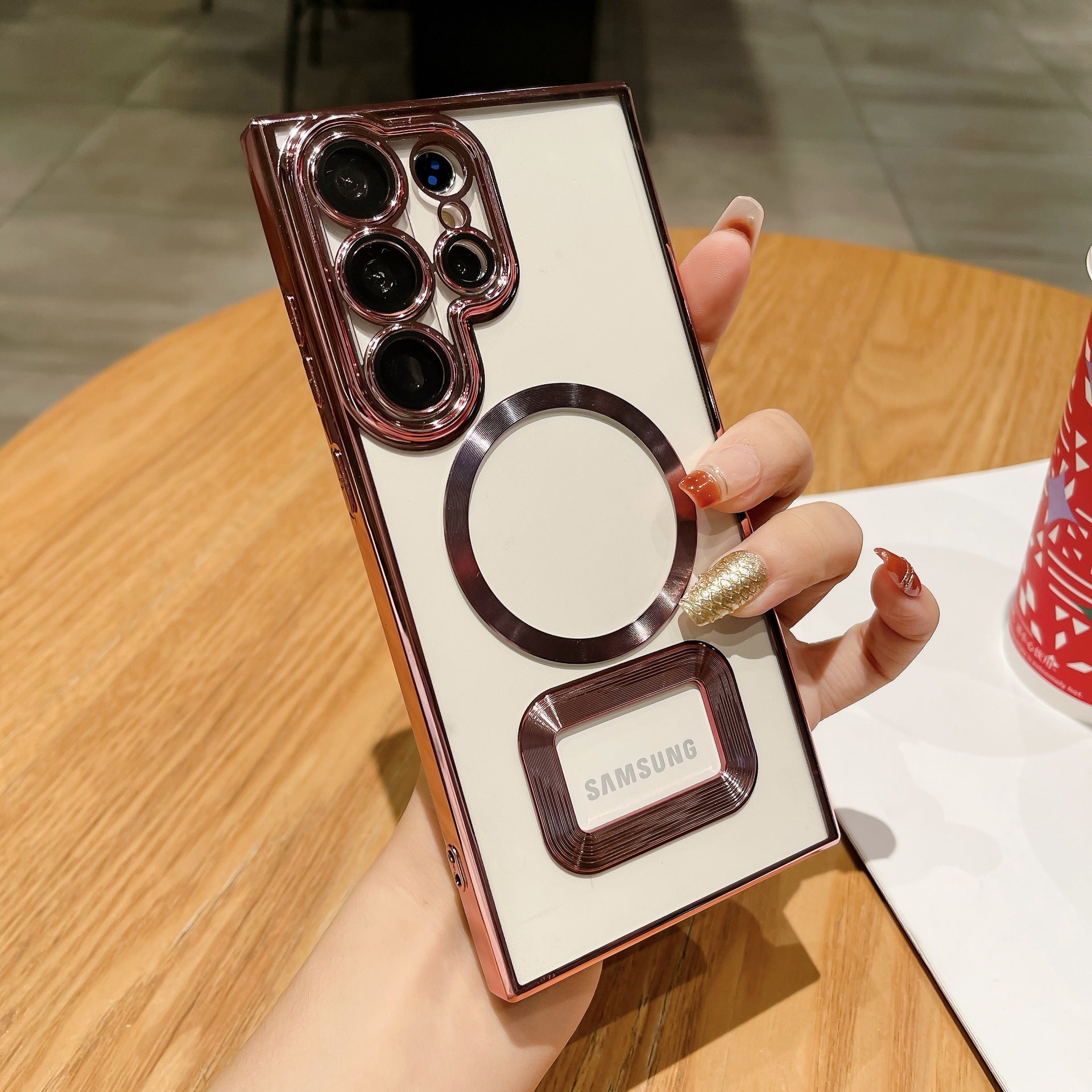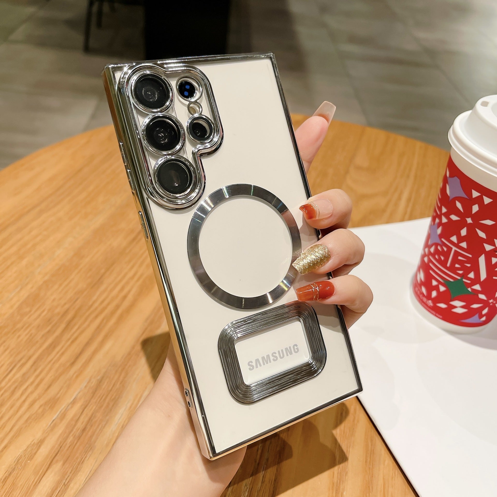 Electroplated Magnetic Anti-fall Phone Case With Built-in Lens Film For Samsung