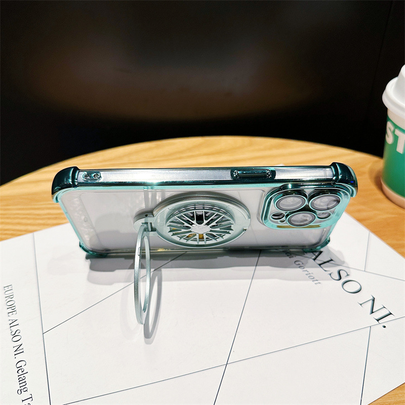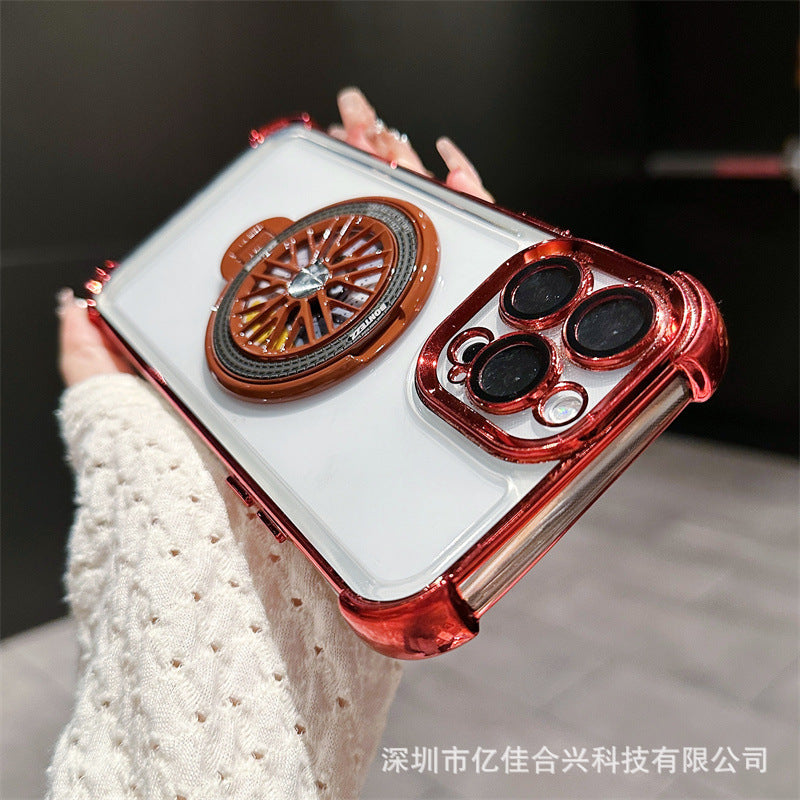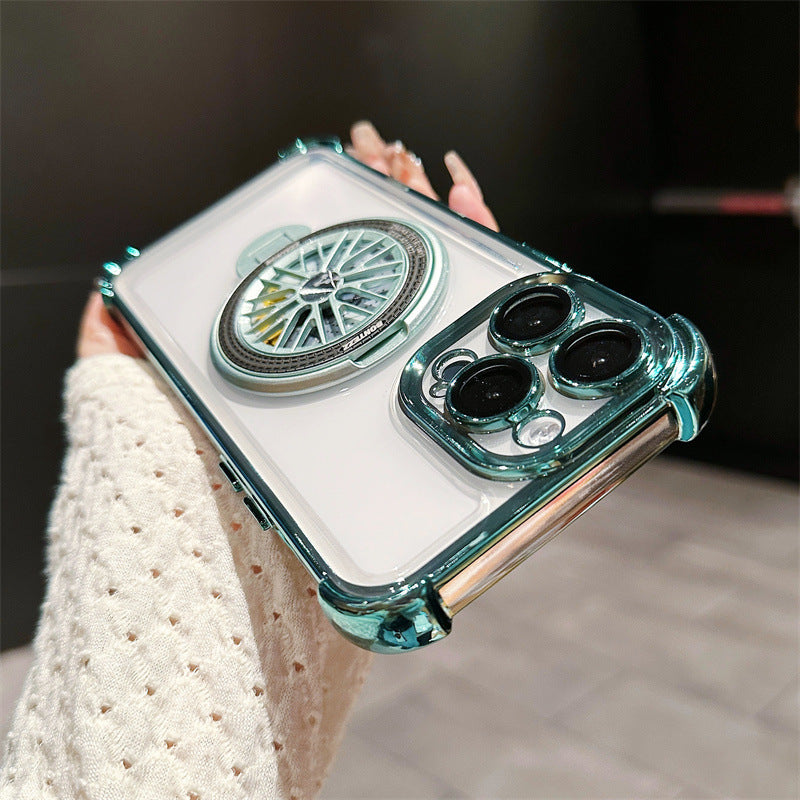 Electroplated rotating gyro bracket four-corner anti-fall mobile phone case suitable for iPhone11/12/13/14/15 mobile phone case