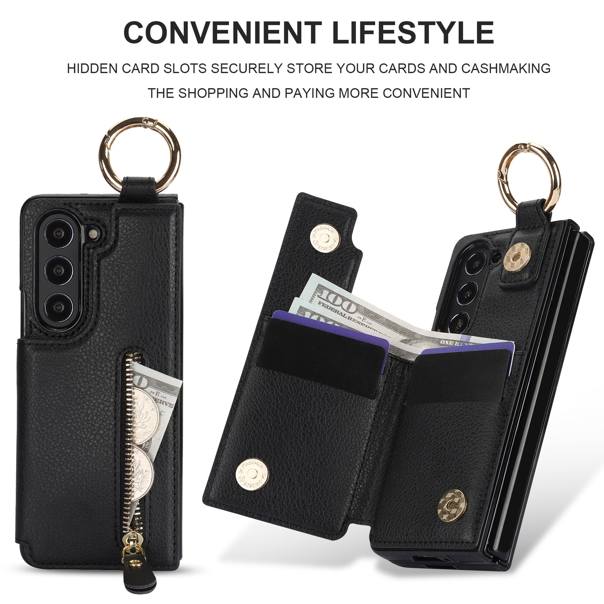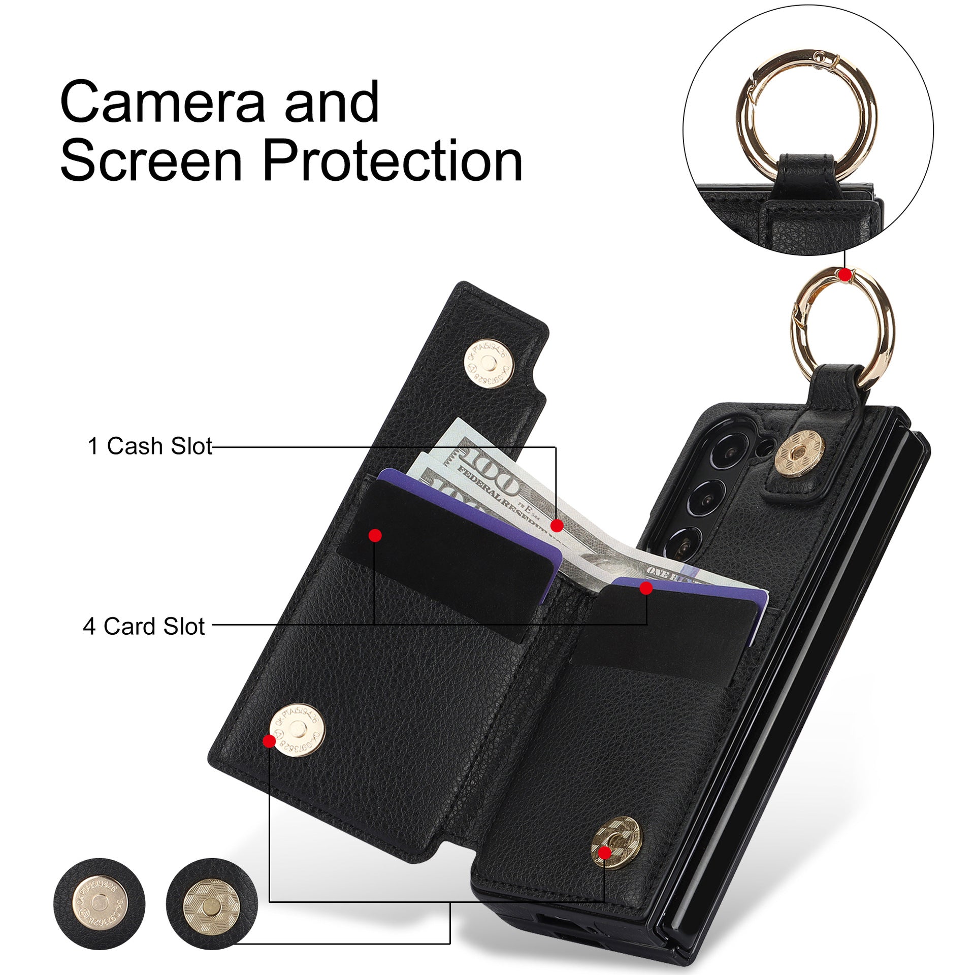 Stay stylish and organized with our Elegant Ring Buckle Leather Wallet Case - Samsung. Crafted from premium leather, this case features a convenient ring holder for added functionality. Keep your essentials secure and your phone protected in style.
