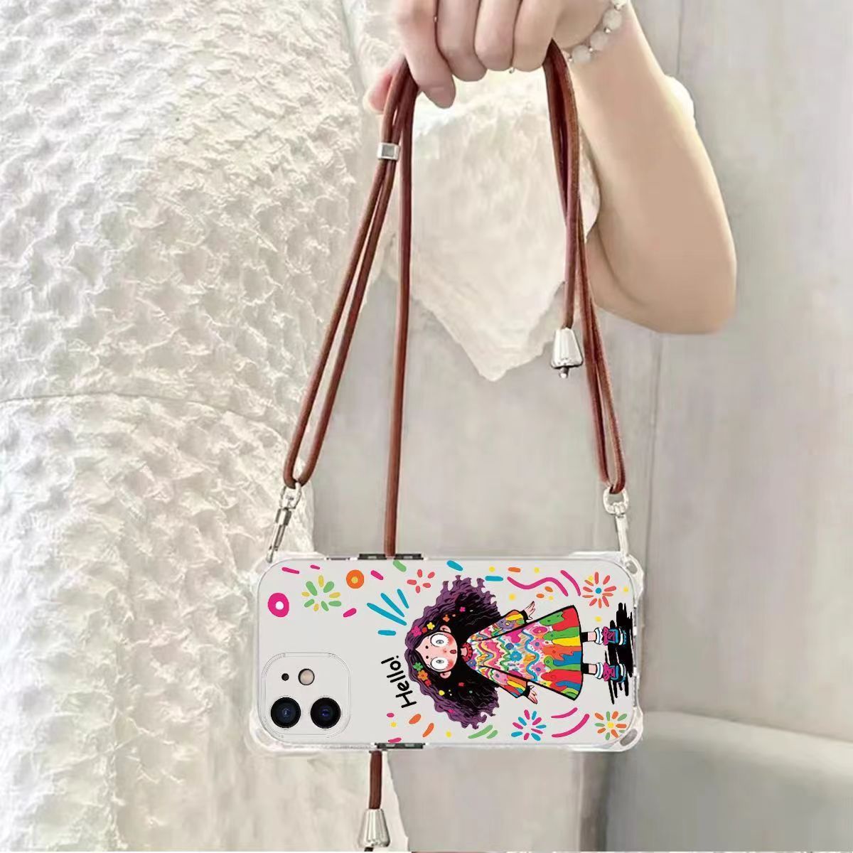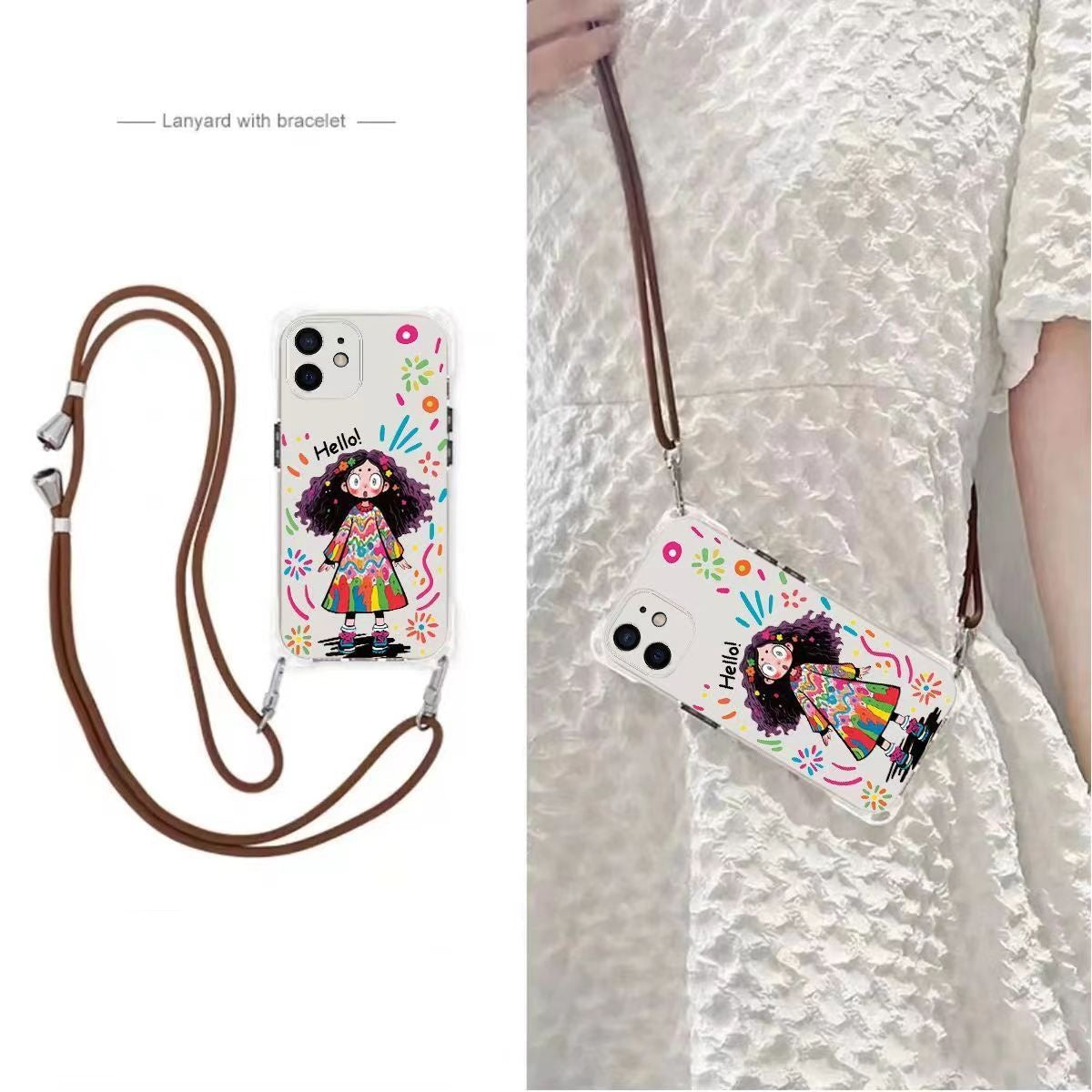 Explosive Hair Girl Crossbody Lanyard Transparent Phone Case