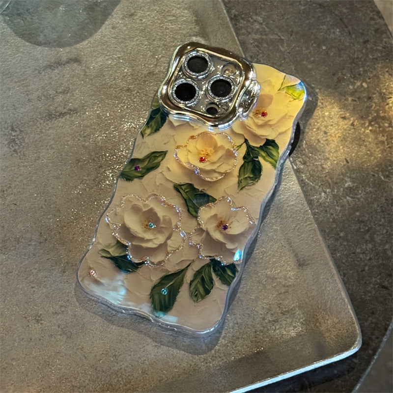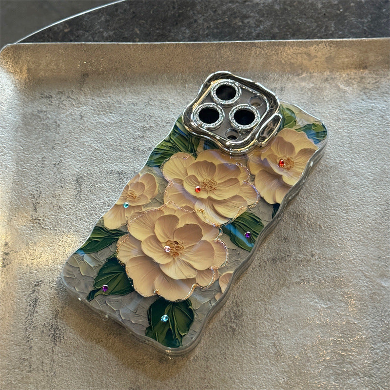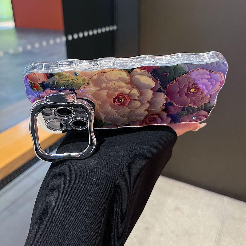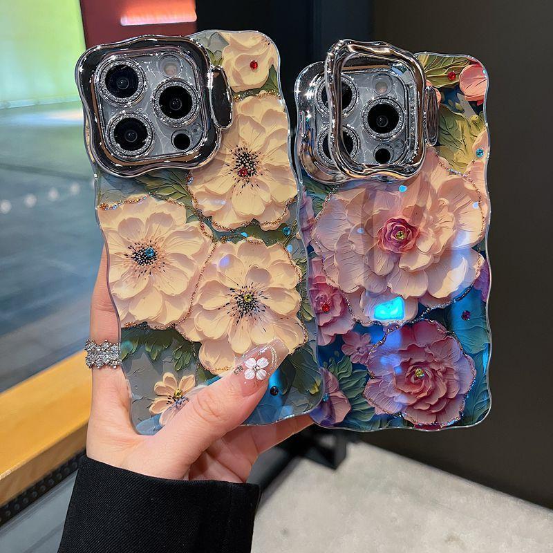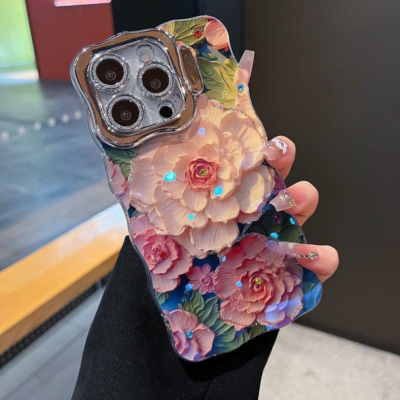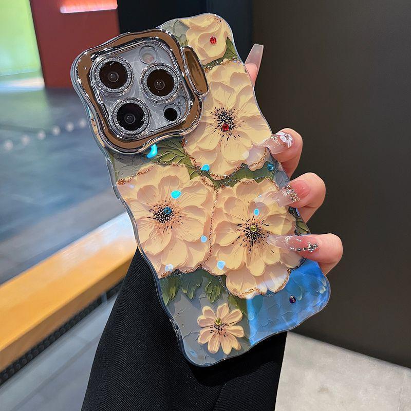 Classy Floral Flowers Oil Painting Wavy iPhone Case With Lens Holder