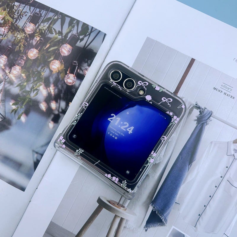 Enhance your Galaxy Z Flip 3/4/5/6 with this elegant floral bow phone case. The exquisite design features a delicate floral pattern paired with a charming bow, making your phone a stylish accessory that stands out.