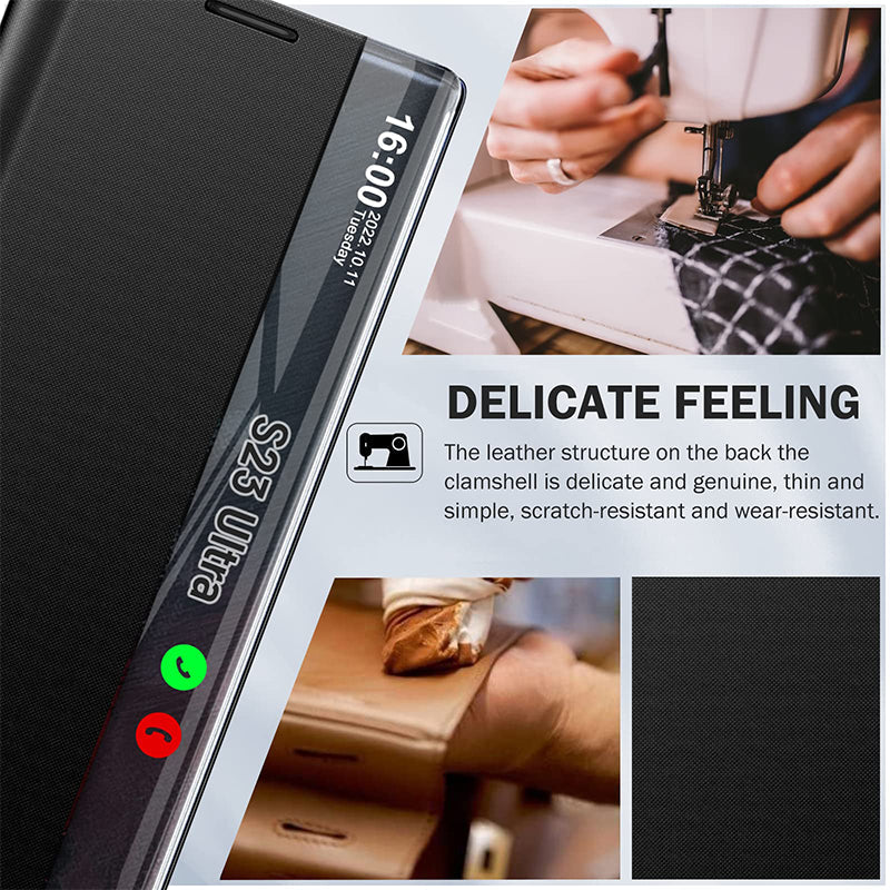 ?¡¾Practical Window¡¿Flip Mobile phone case for Samsung Case has a transparent side window, you can view reminders and notifications, keep up to date with remaining battery power and view time.