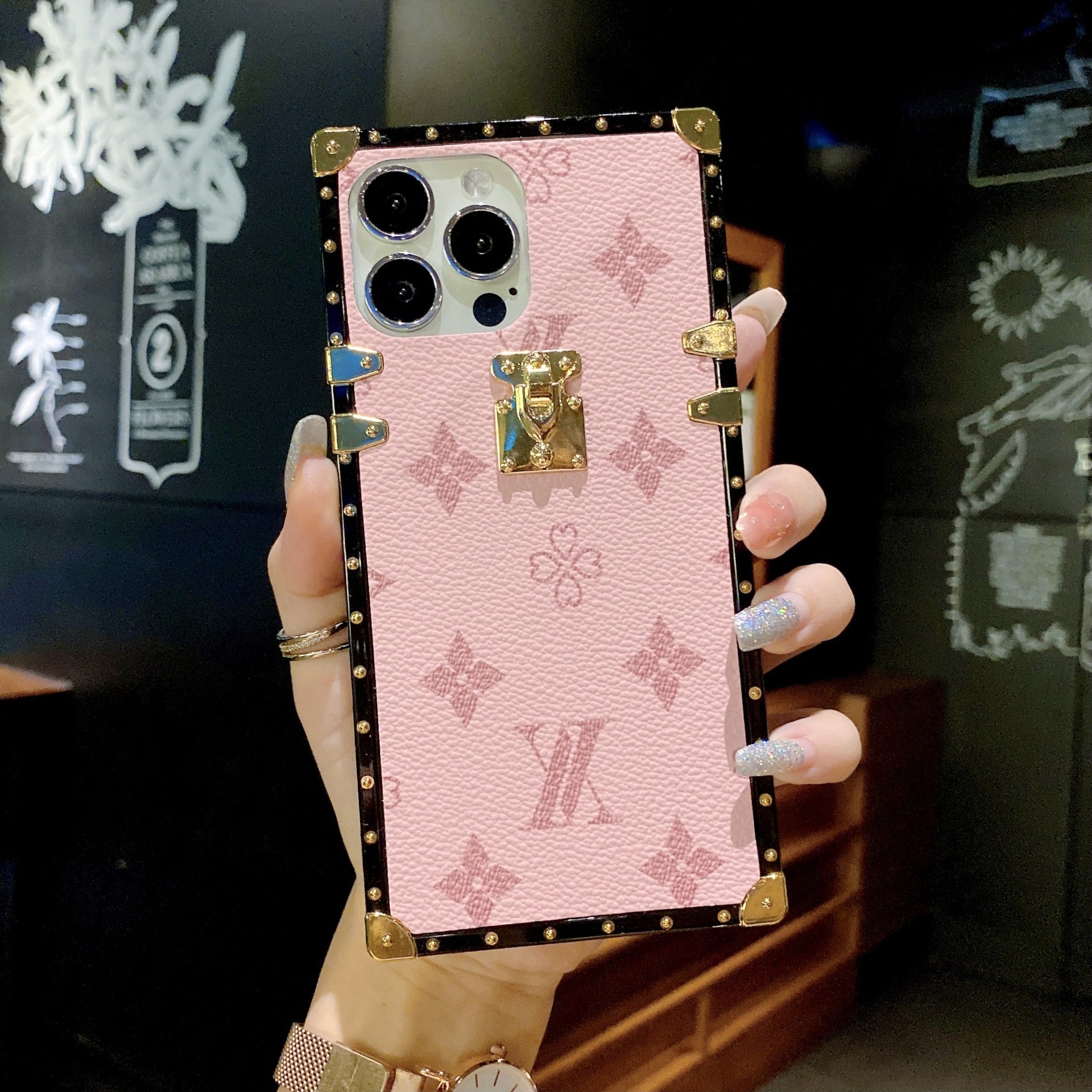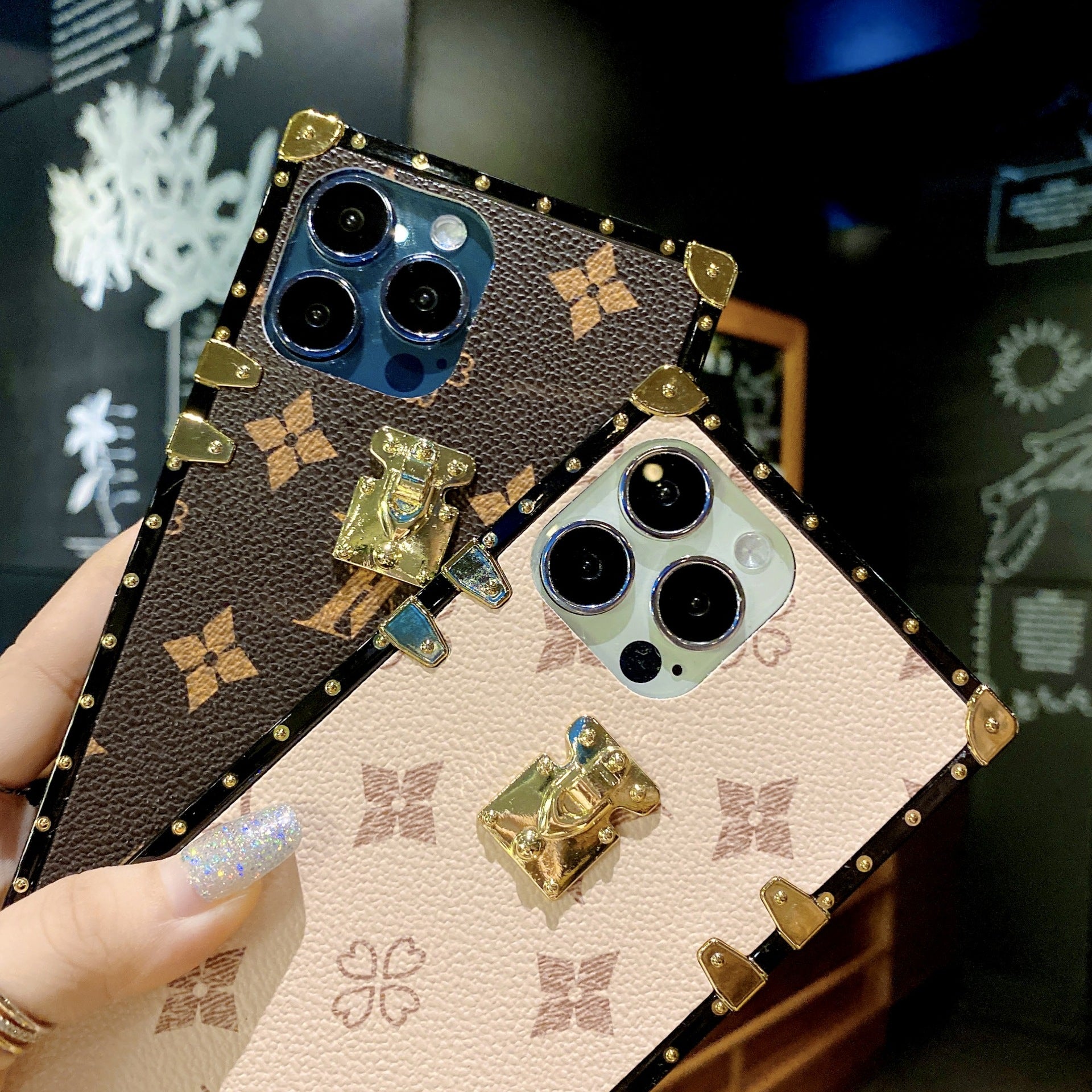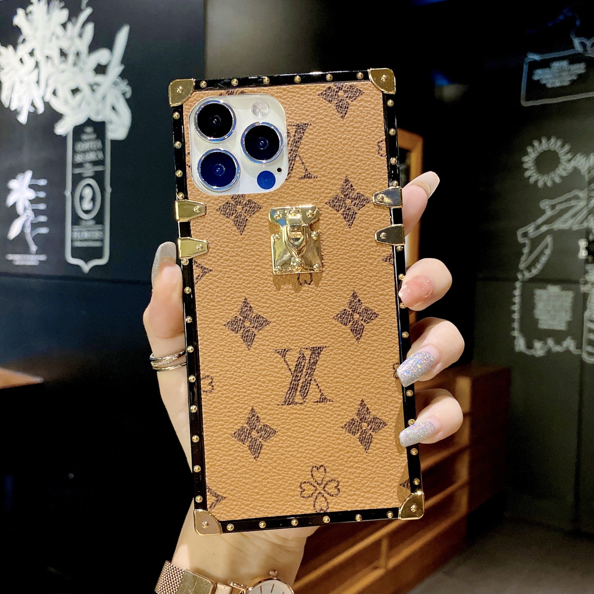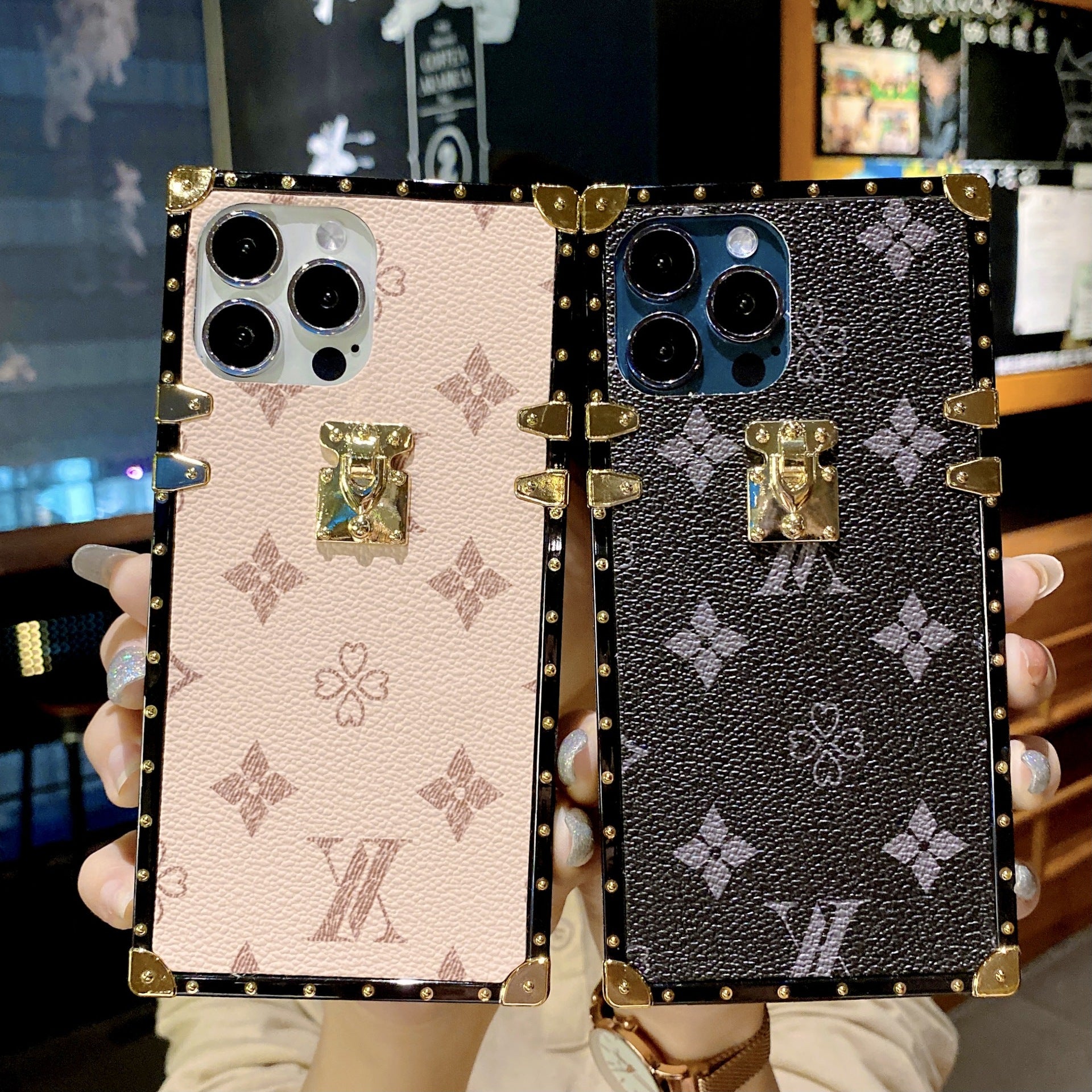 Foreign trade big brand square trendy classic LV brand leather texture mobile phone case