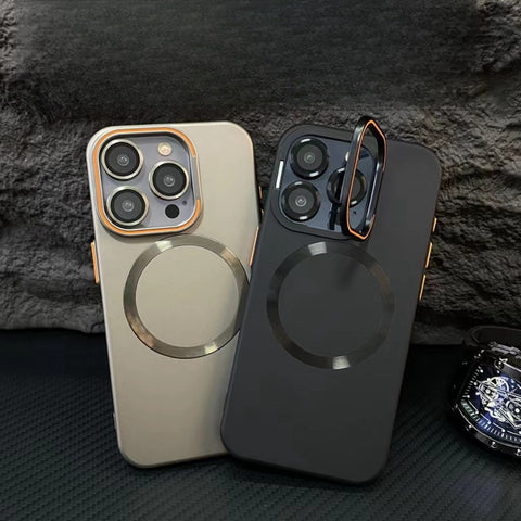 Introducing our Frosted Magnetic Holder Mobile Phone Case. Designed to securely hold your phone in place while providing a sleek and stylish look. With its magnetic backing, you can easily attach it to any metal surface for hands-free convenience. Practical, functional, and fashionable.