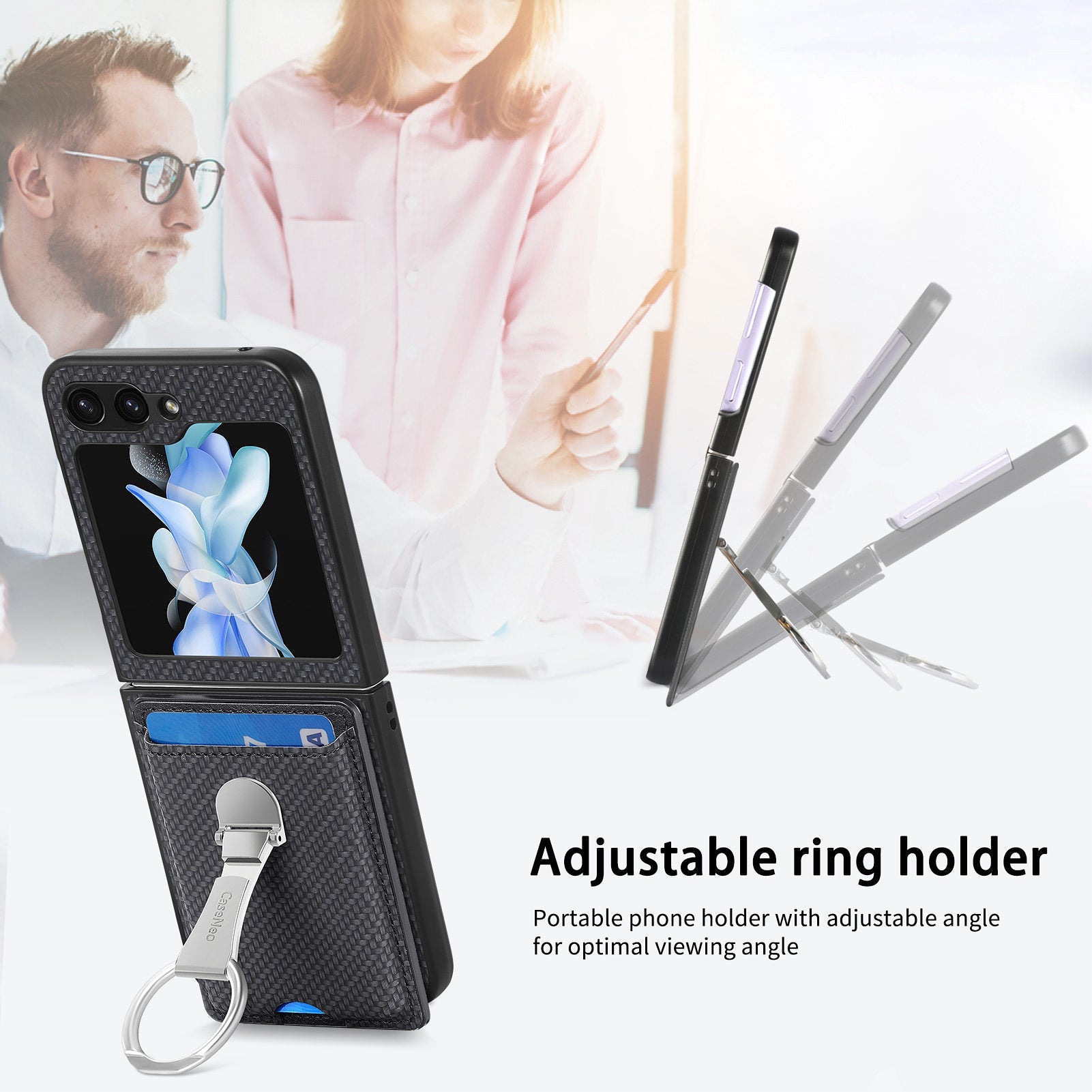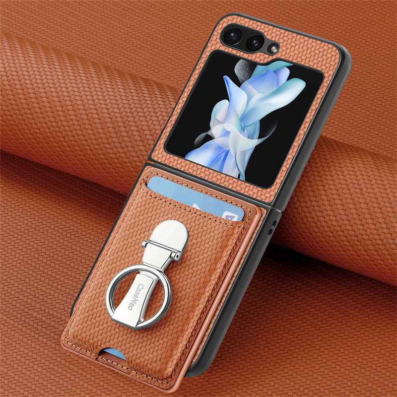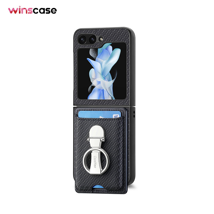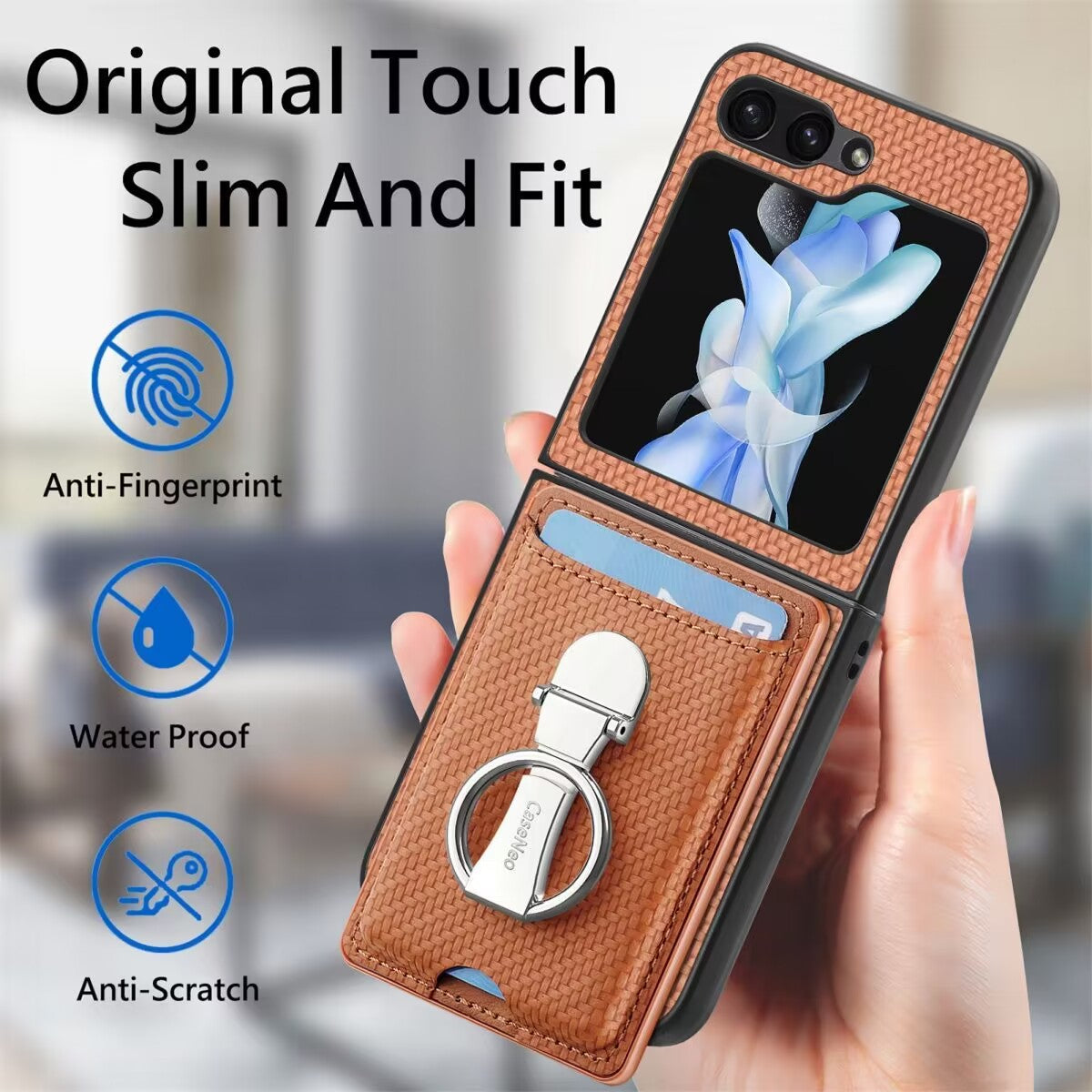Samsung Galaxy Z Flip Series | Carbon Fiber Leather Case with Ring Holder