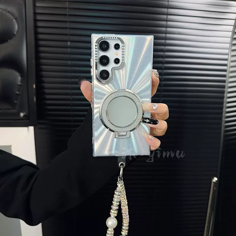 Glitter Aurora Case With Mirror And Stand For Samsung Galaxy S Series
