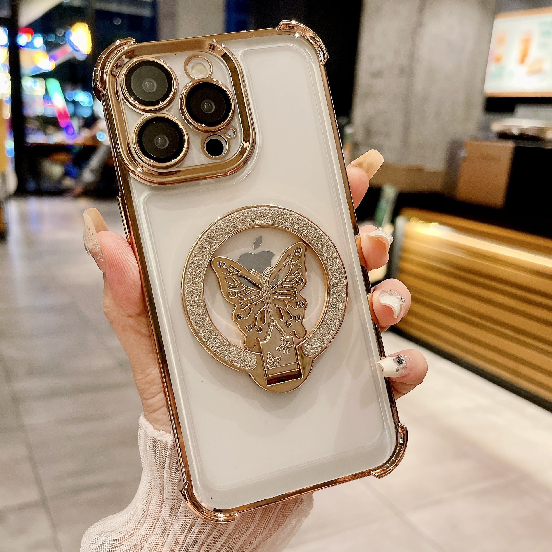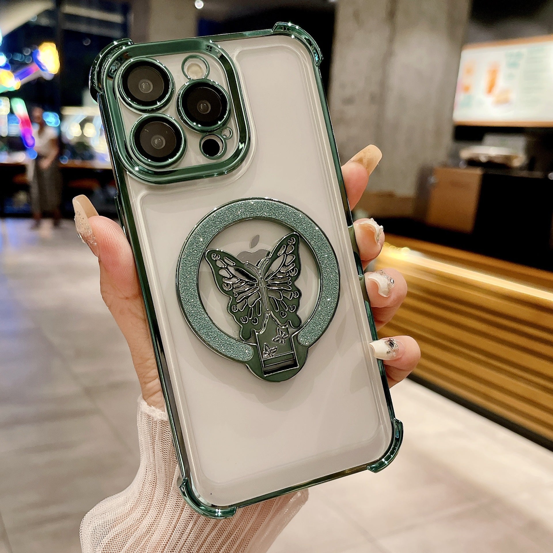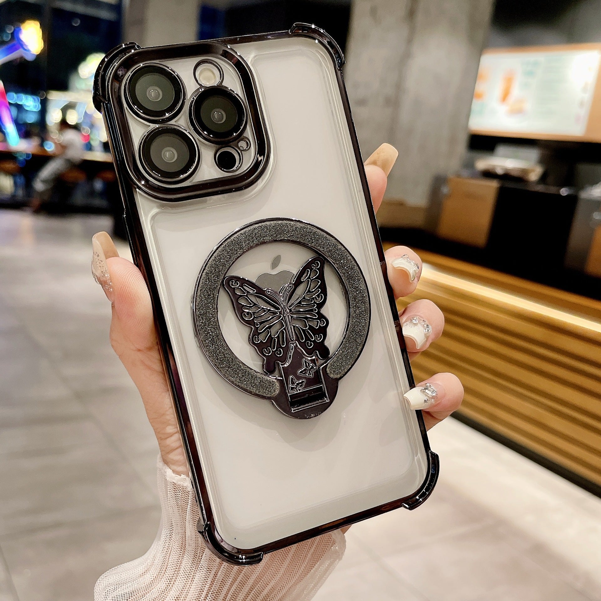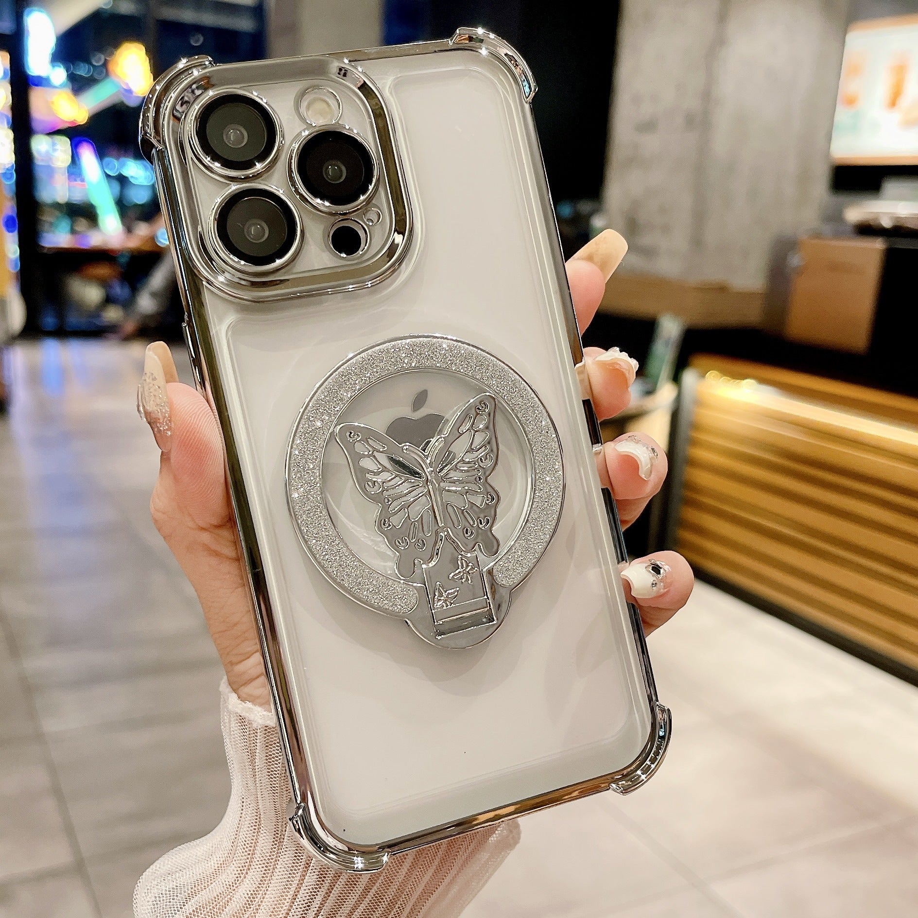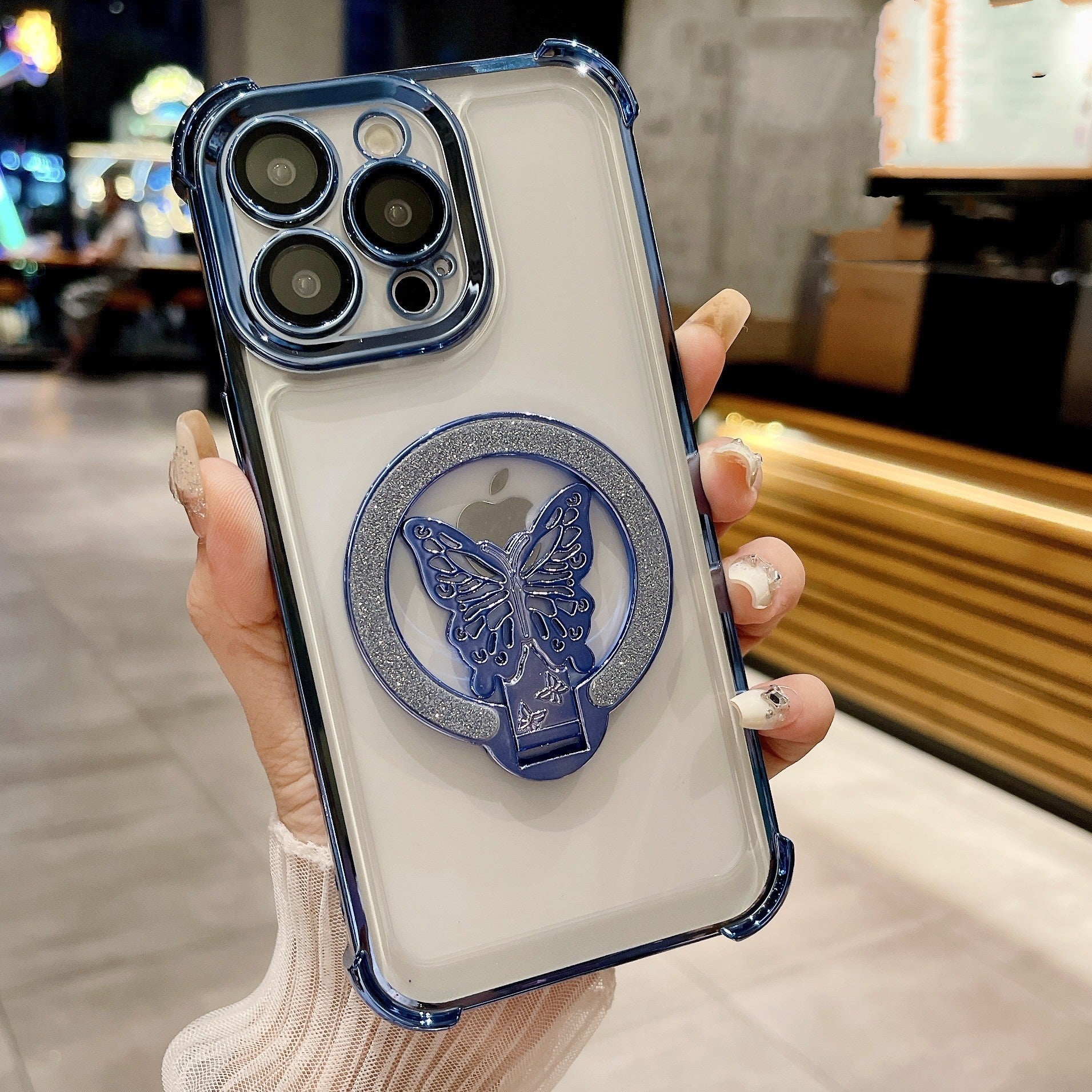 Glitter butterfly bracket electroplating four-corner anti-fall mobile phone case