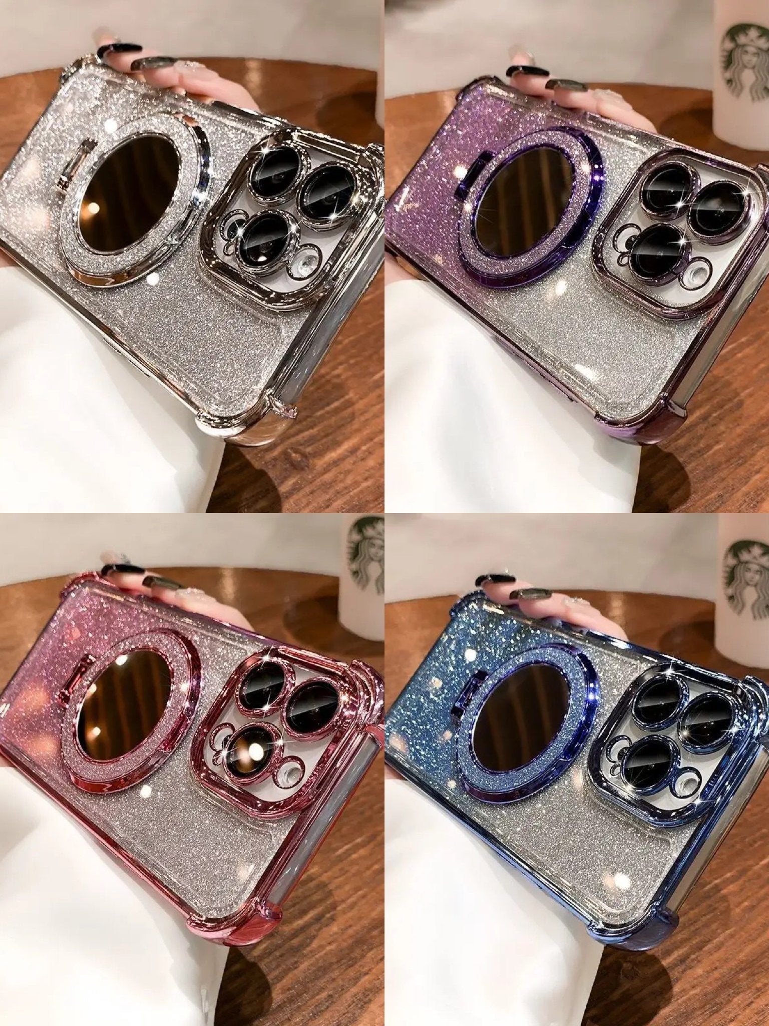 Combines glitter glamour, mirror practicality, magnetic convenience, lens film protection and four-corner drop-proof function.