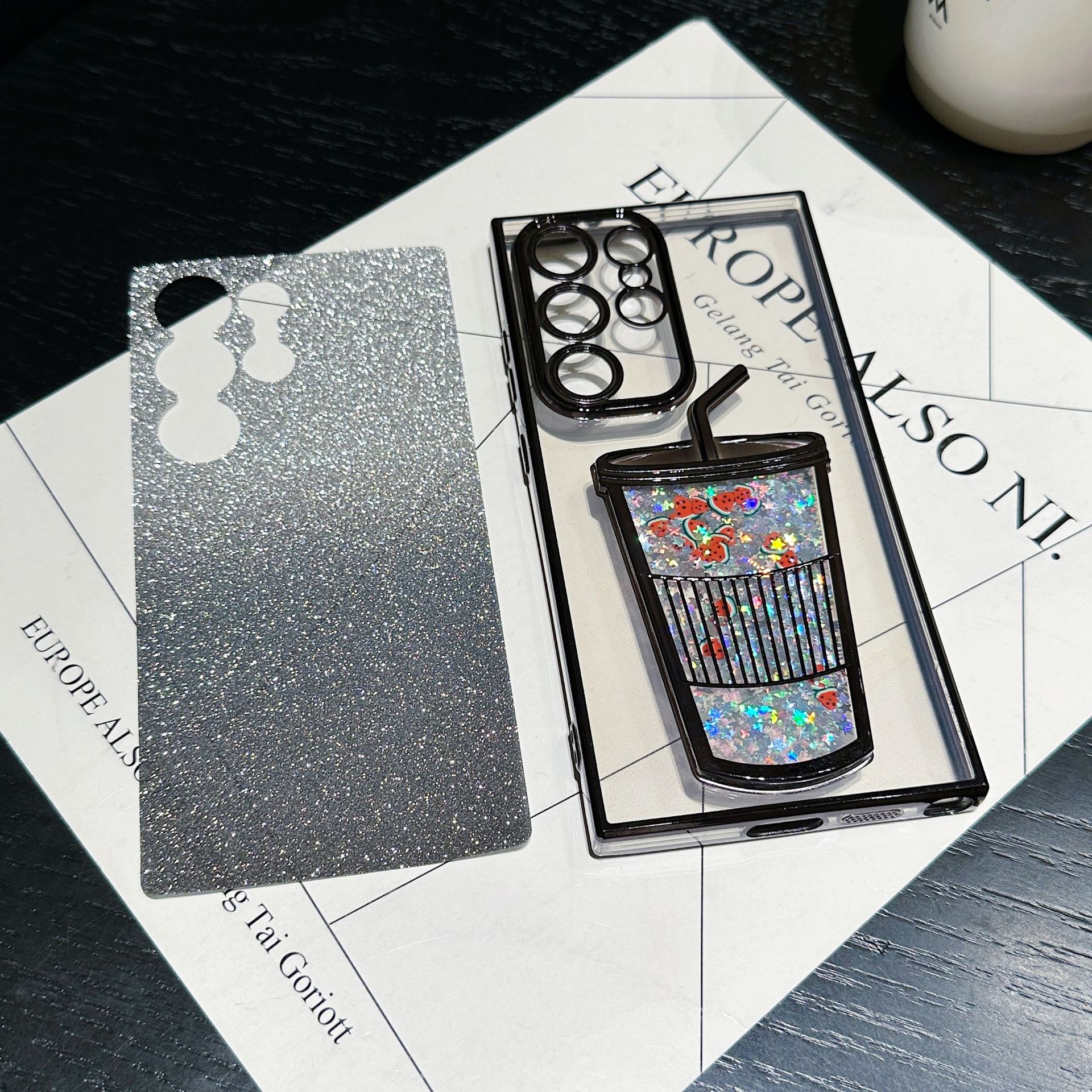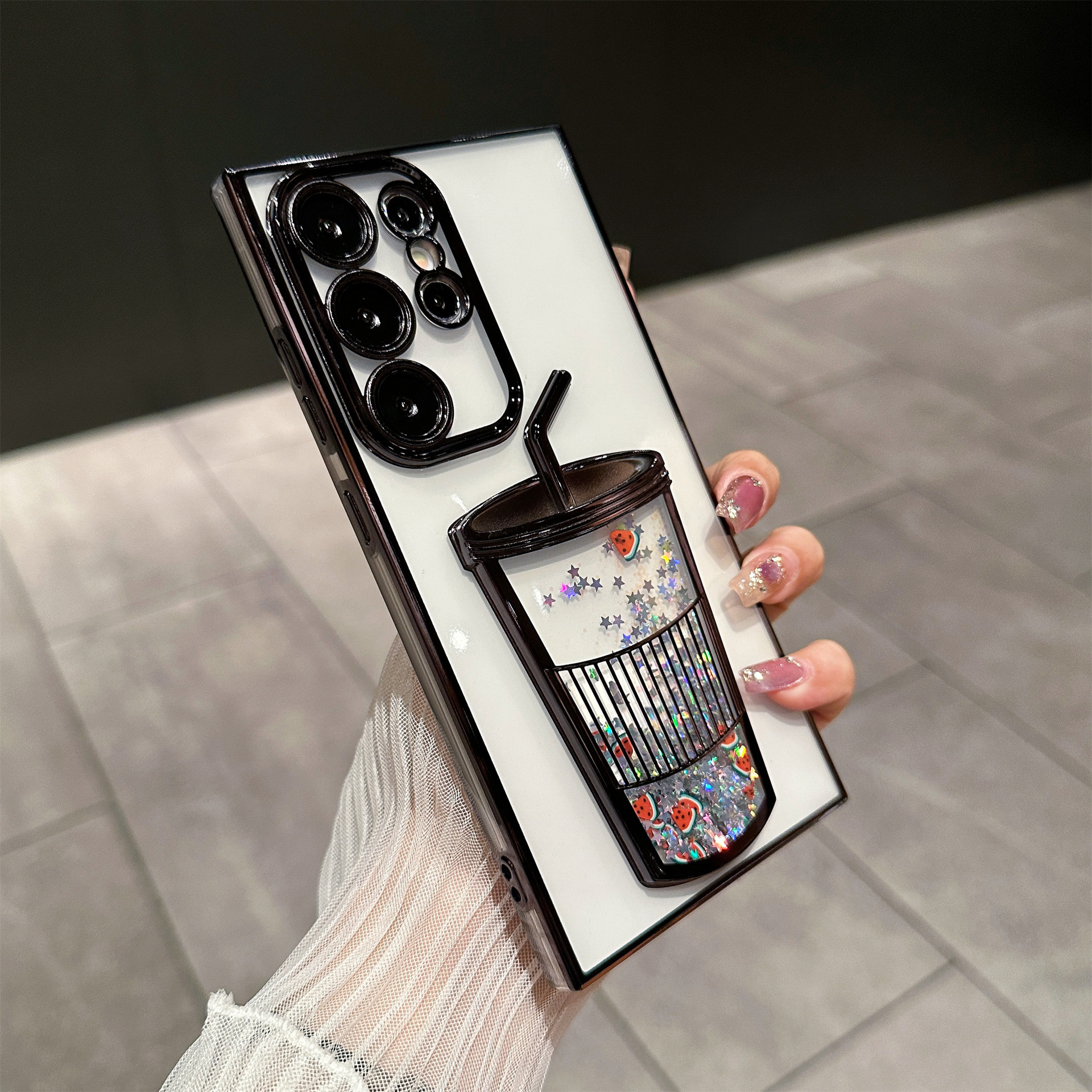 Gradient electroplating quicksand cup soft cover mobile phone case