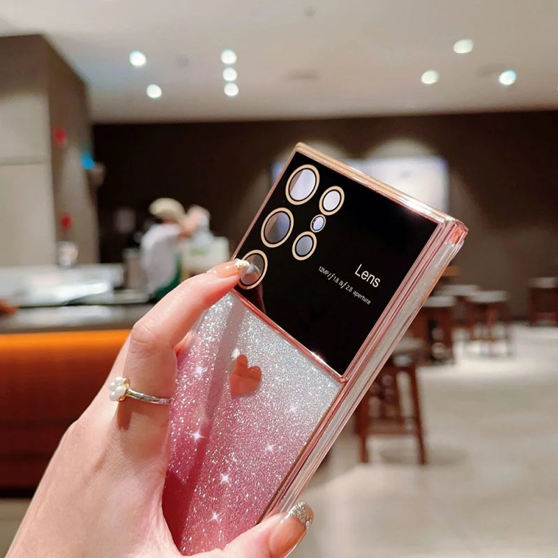 This Gradient Love Heart Glitter Phone Case features a beautiful and eye-catching design that adds a touch of glamour to your phone. The gradual color transition and sparkling glitter are sure to make your phone stand out in a crowd. Protect your phone while also making a fashion statement with this stylish accessory.