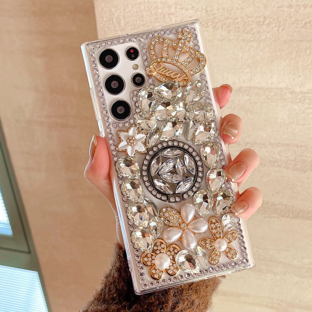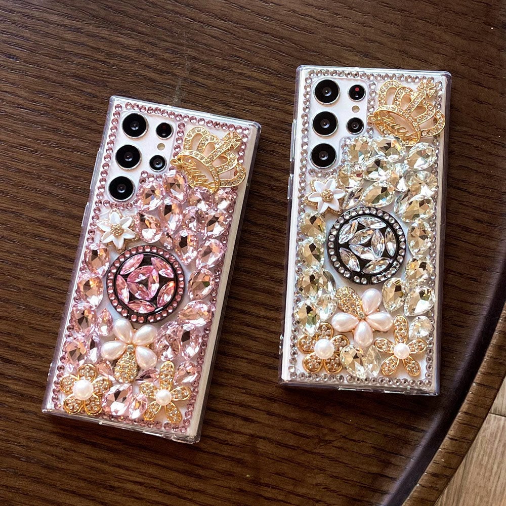 Handmade Luxury High-End Rhinestone Crown Ring Phone Case For Samsung Galaxy