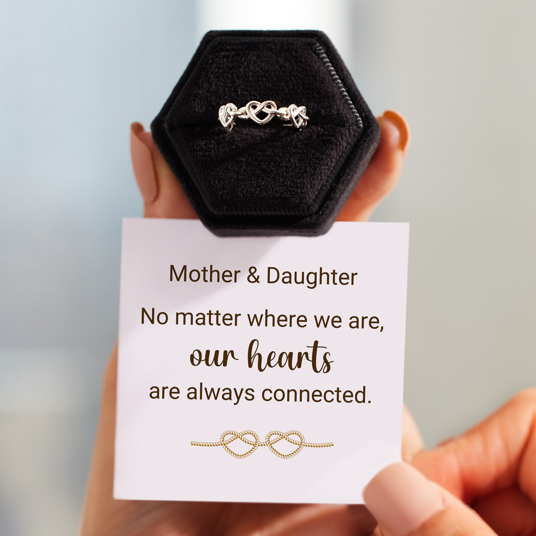 Celebrate the unbreakable bond between a mother and daughter with Always Connected Infinity Heart Knot Ring. The intertwined hearts symbolize infinite love and support, making it the perfect gift for any occasion. Show your appreciation for the unique relationship in your life with this delicate and meaningful ring.