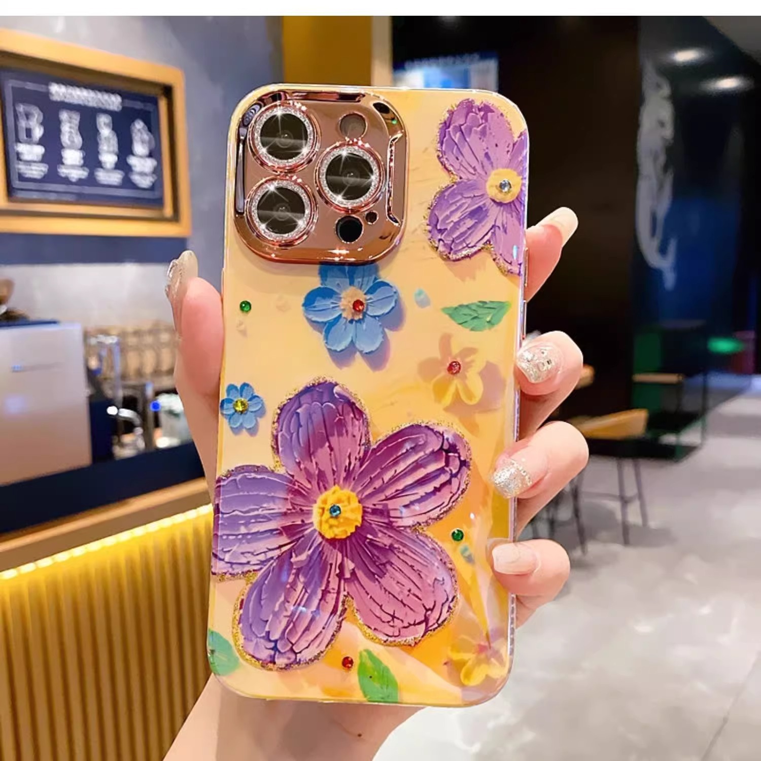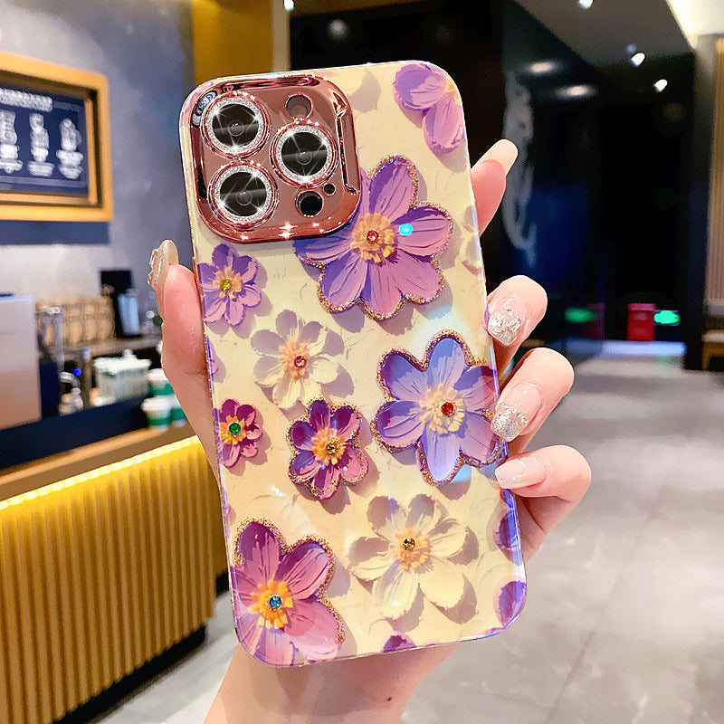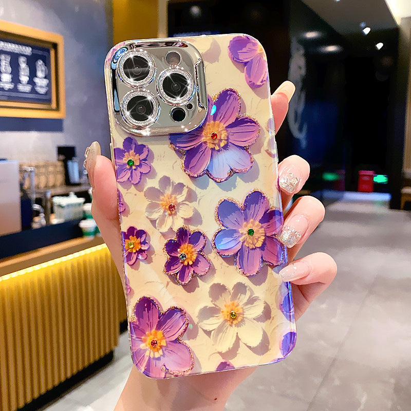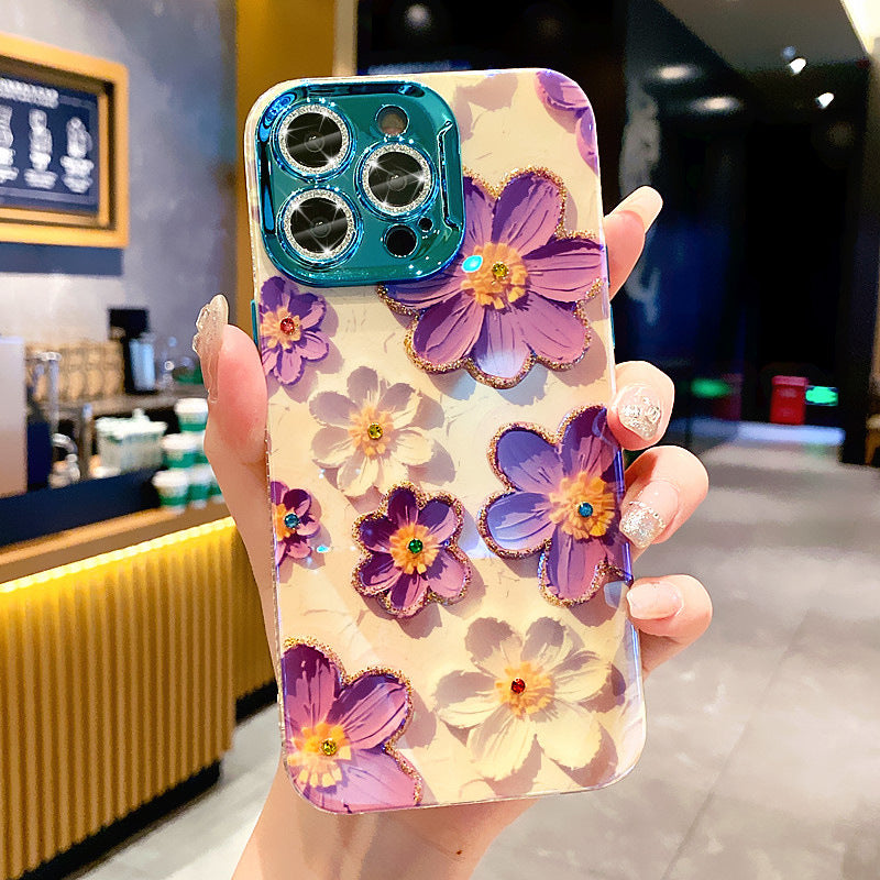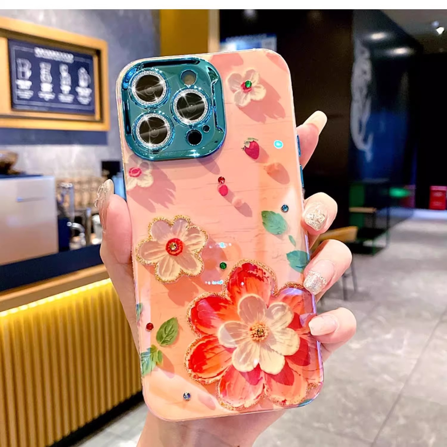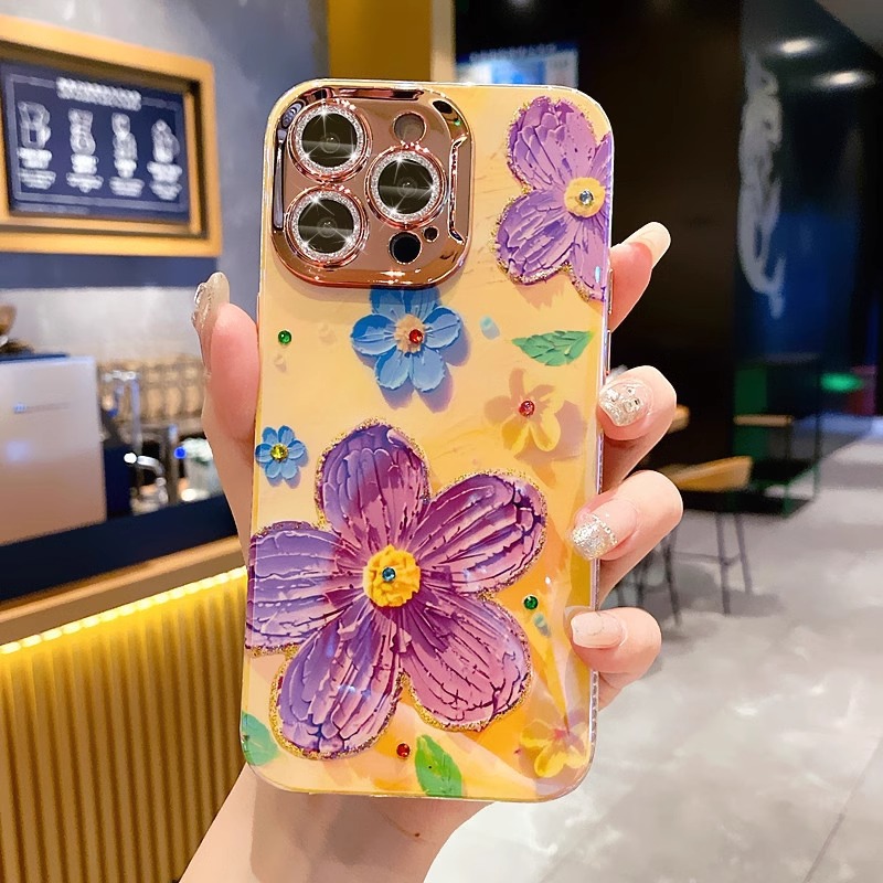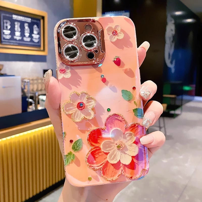 High-end Korean style rhinestone oil painting flower mobile phone case