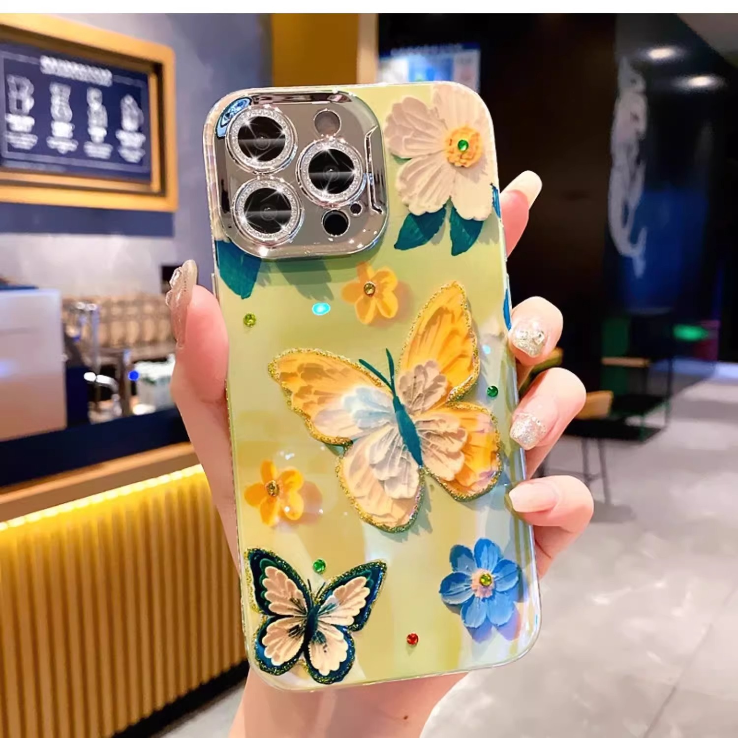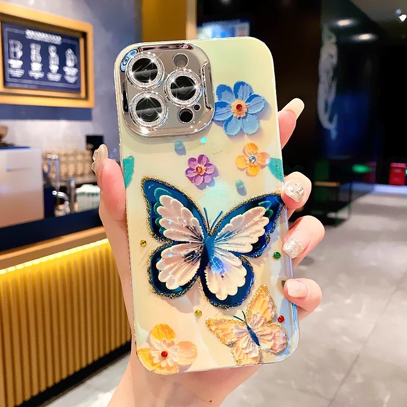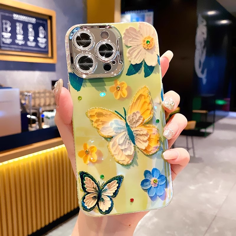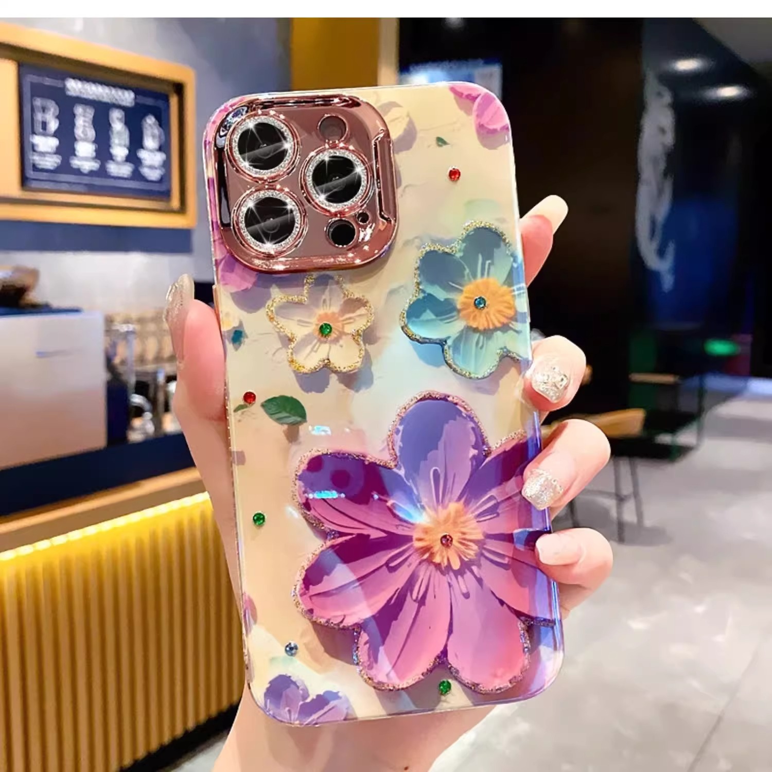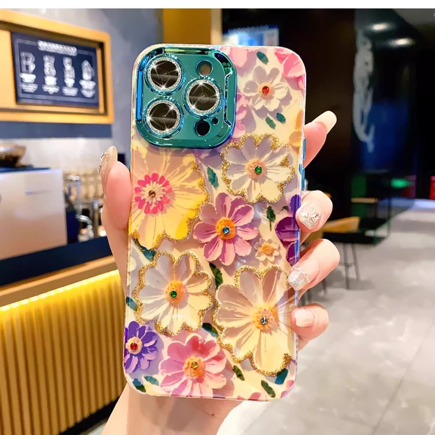 High-end Korean style rhinestone oil painting flower mobile phone case
