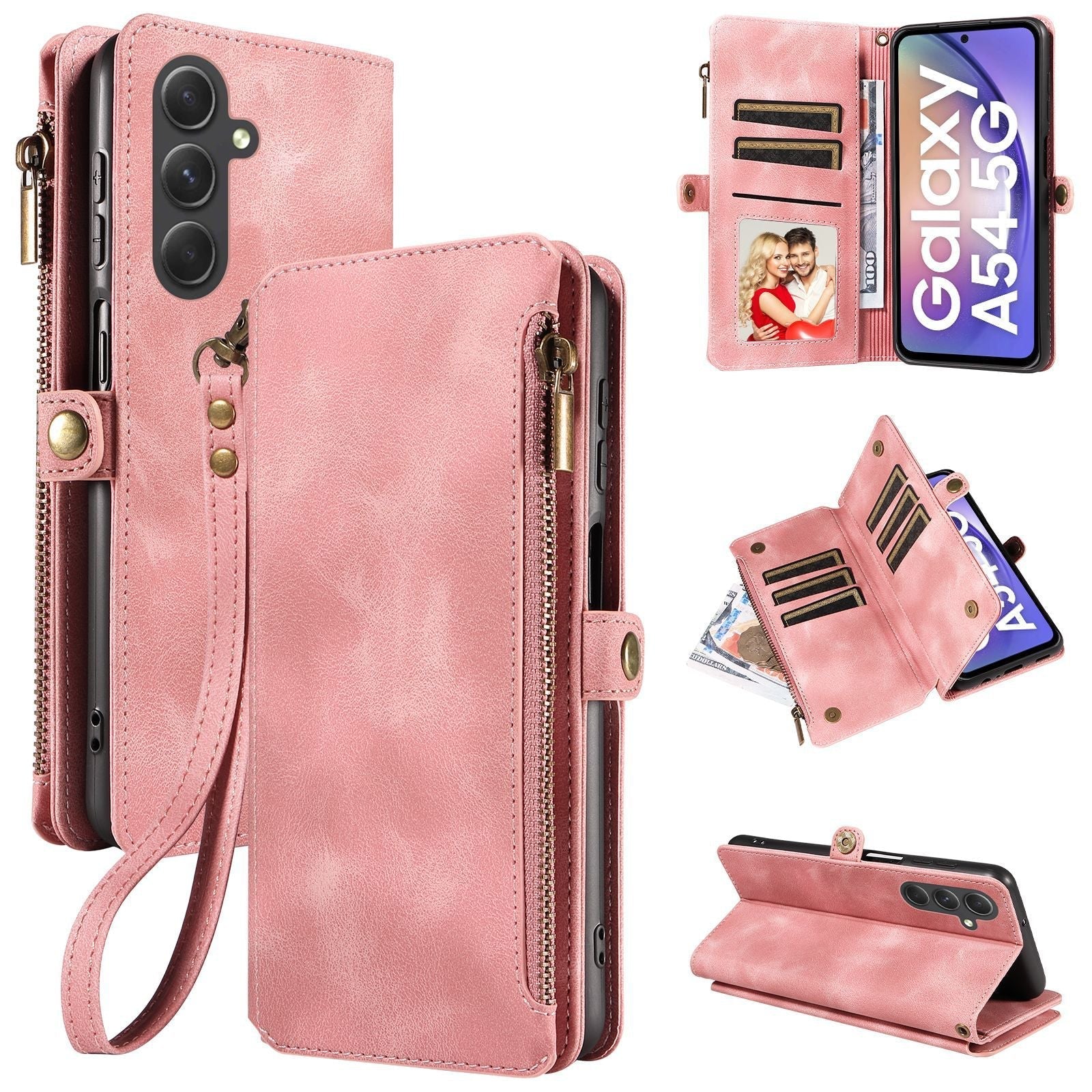 High-End Retro Leather Pouch Wallet Lanyard Zipper Card Phone Case For Galaxy A54