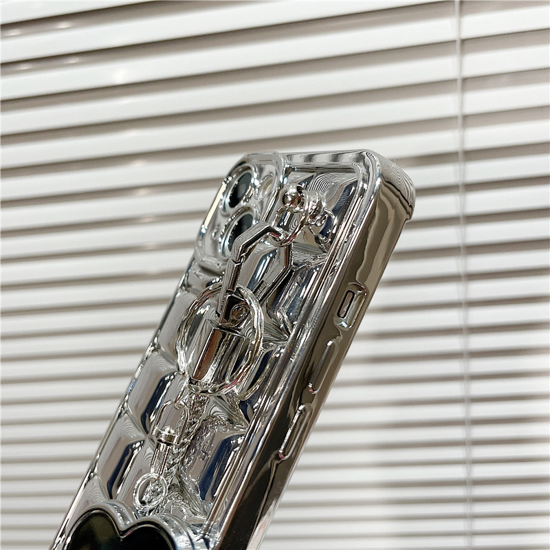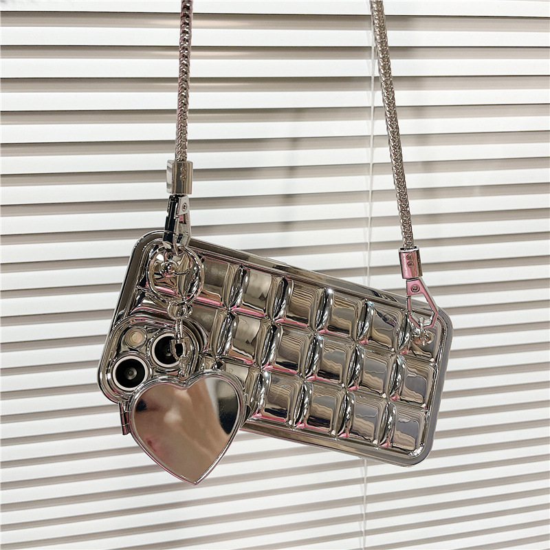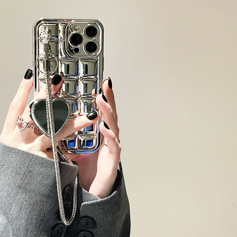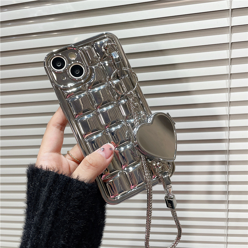 High-grade silver heart mirror mobile phone case + same style bracelet
