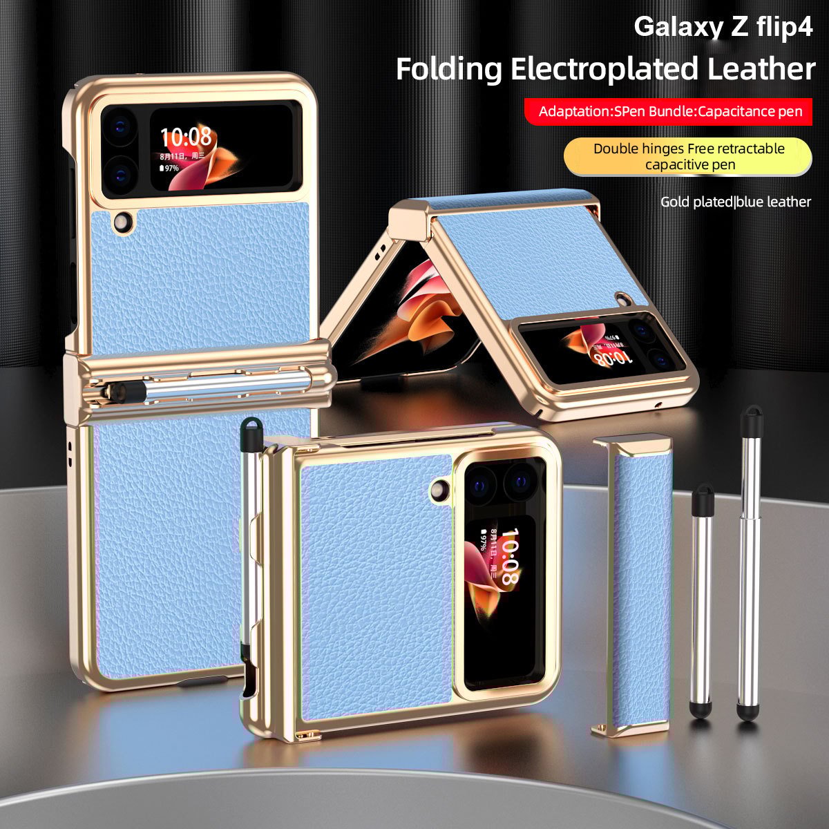 Luxury Leather Case For Samsung Galaxy Z Flip3(4/5) With Double Hinge + Retractable Stylus