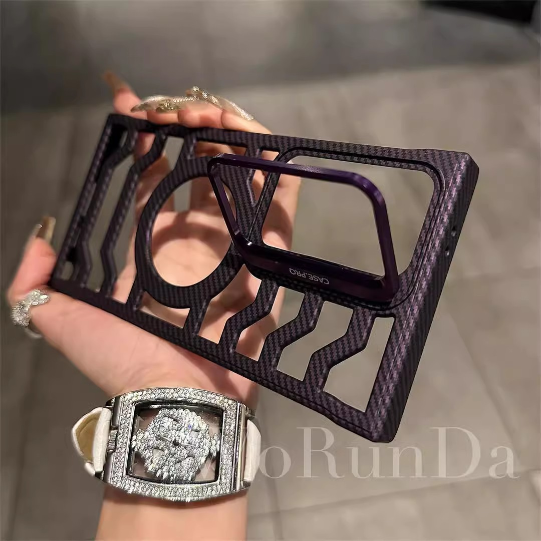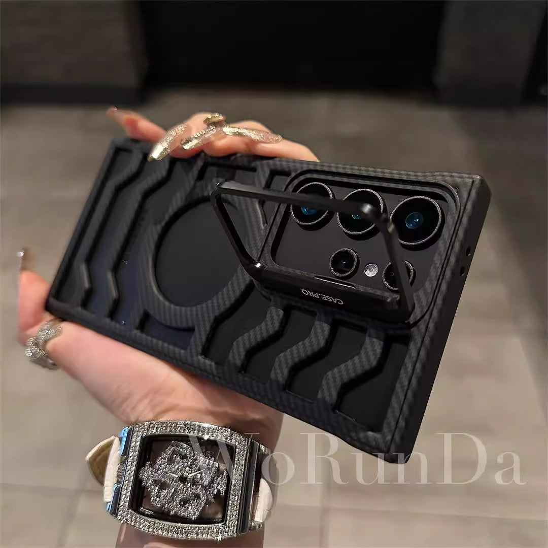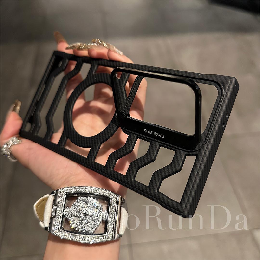 Hollow Carbon Fiber Magnetic Lens Holder Phone Case For Samsung