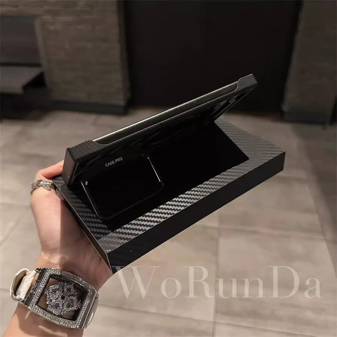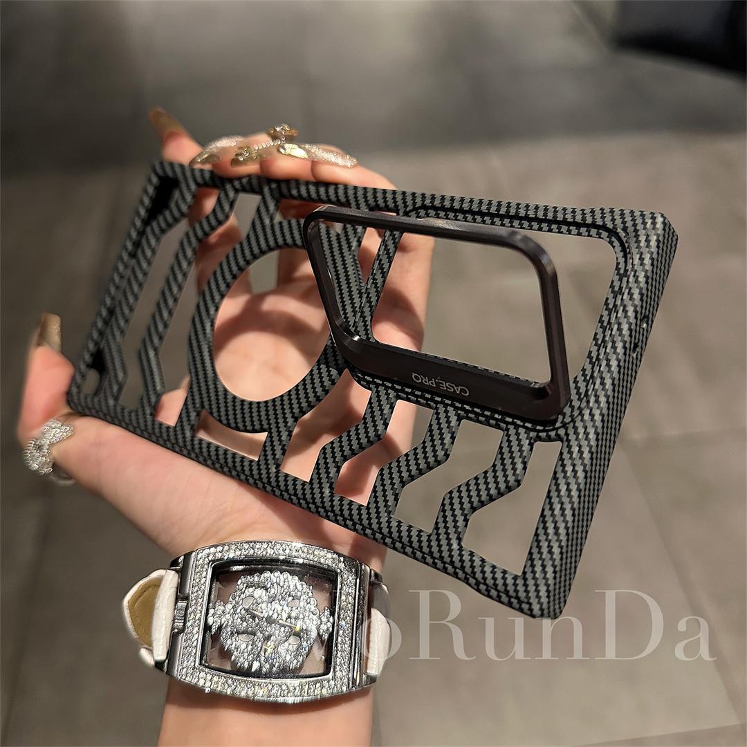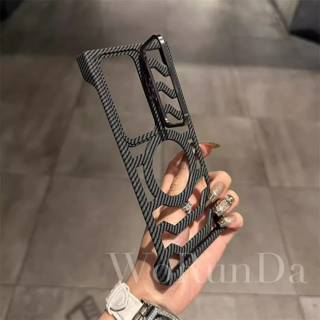 Hollow Carbon Fiber Magnetic Lens Holder Phone Case For Samsung