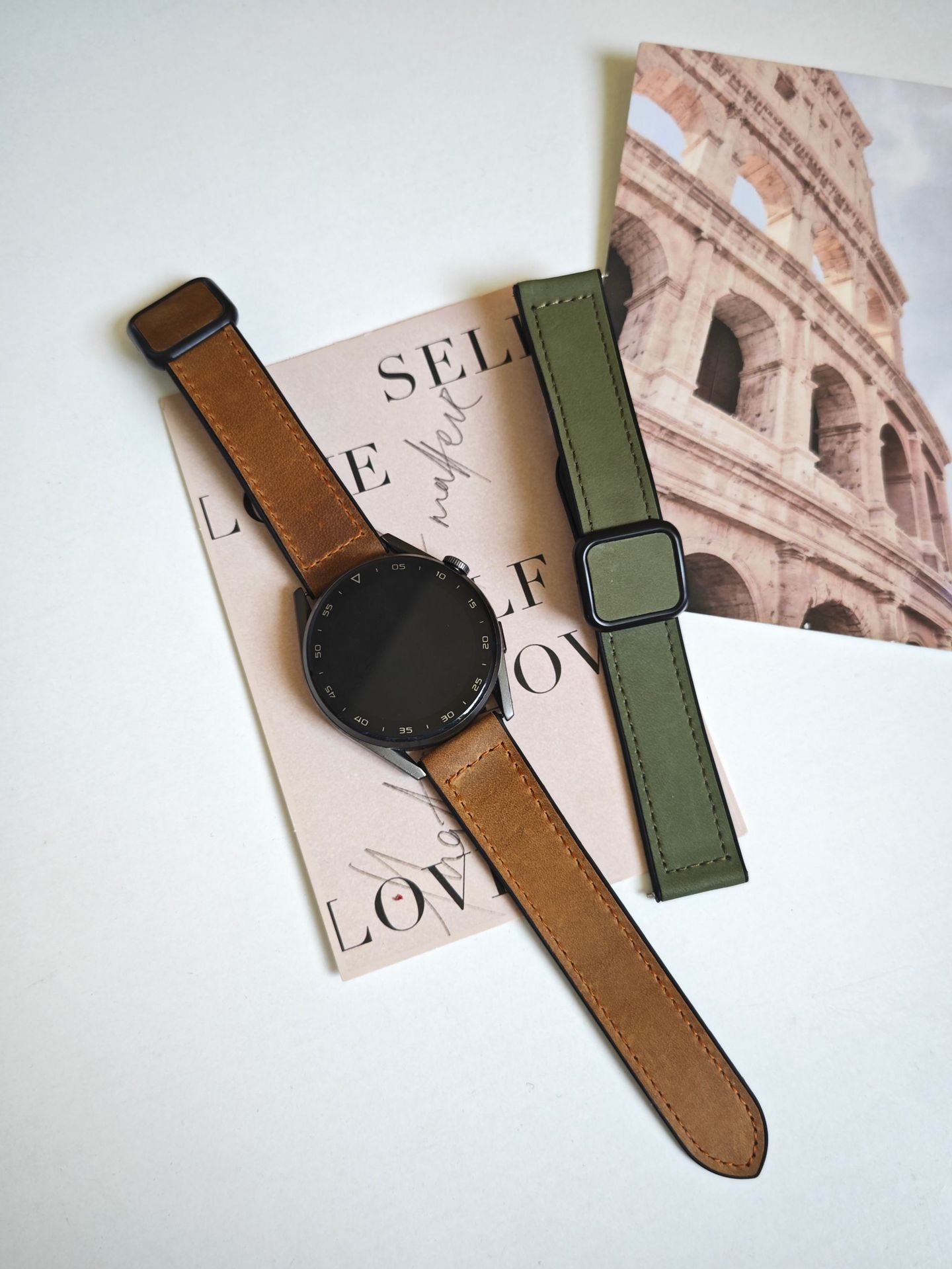 Huawei GT4 Samsung Garmin Applewatch Crazy Horse Pattern Folding Magnetic Leather Strap