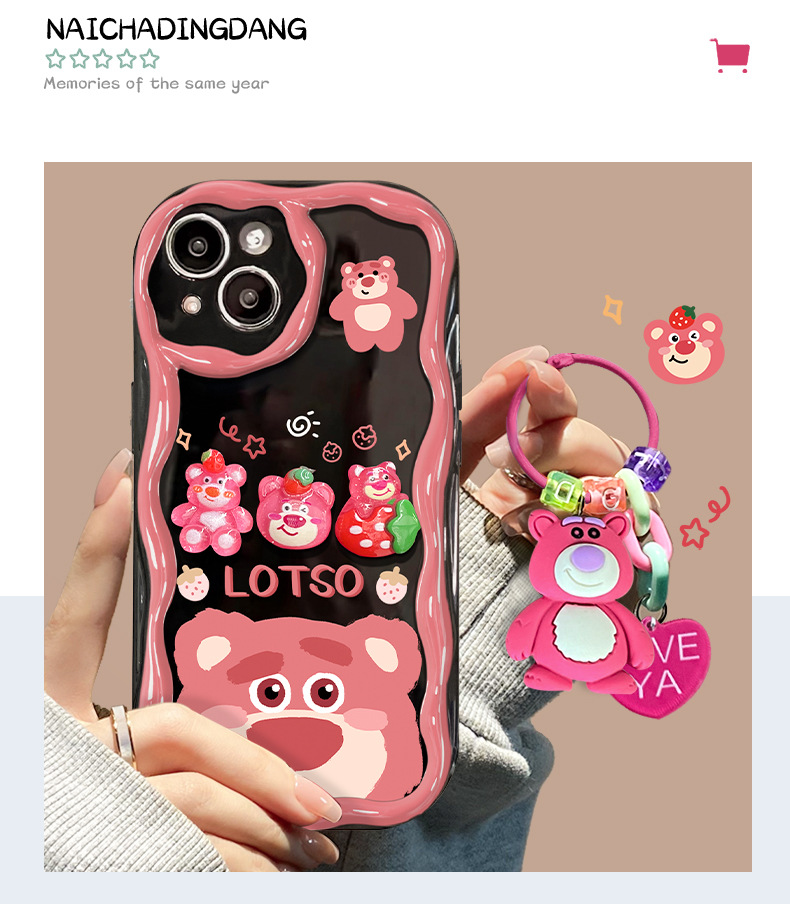 ins three-dimensional strawberry bear soft shell mobile phone case