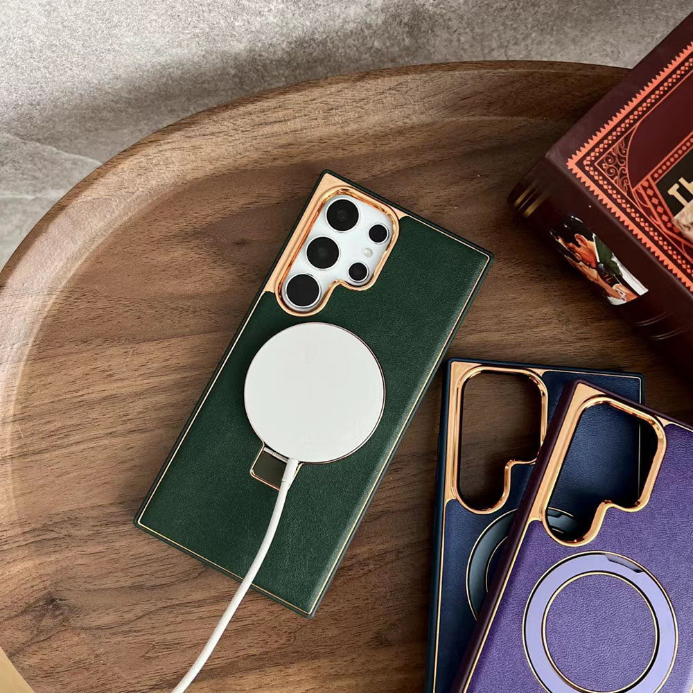 Invisible Magnetic Holder Electroplated Leather Phone Case For Samsung Galaxy