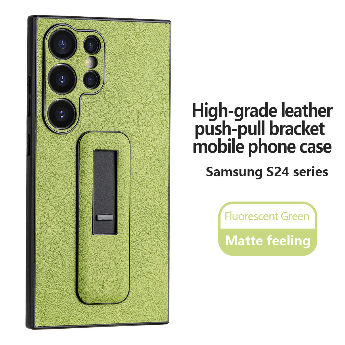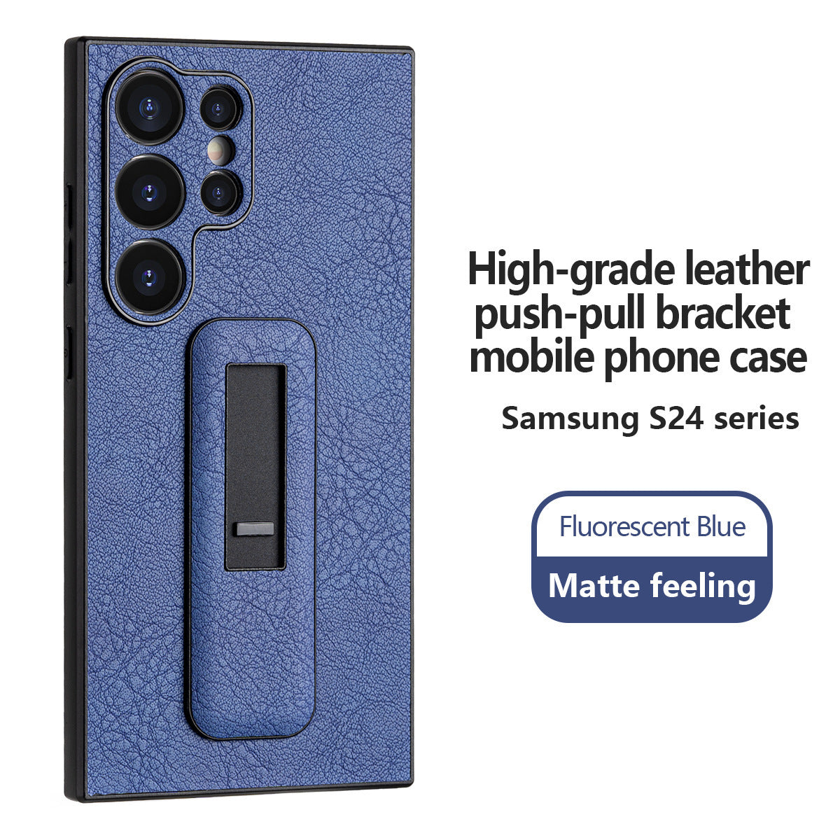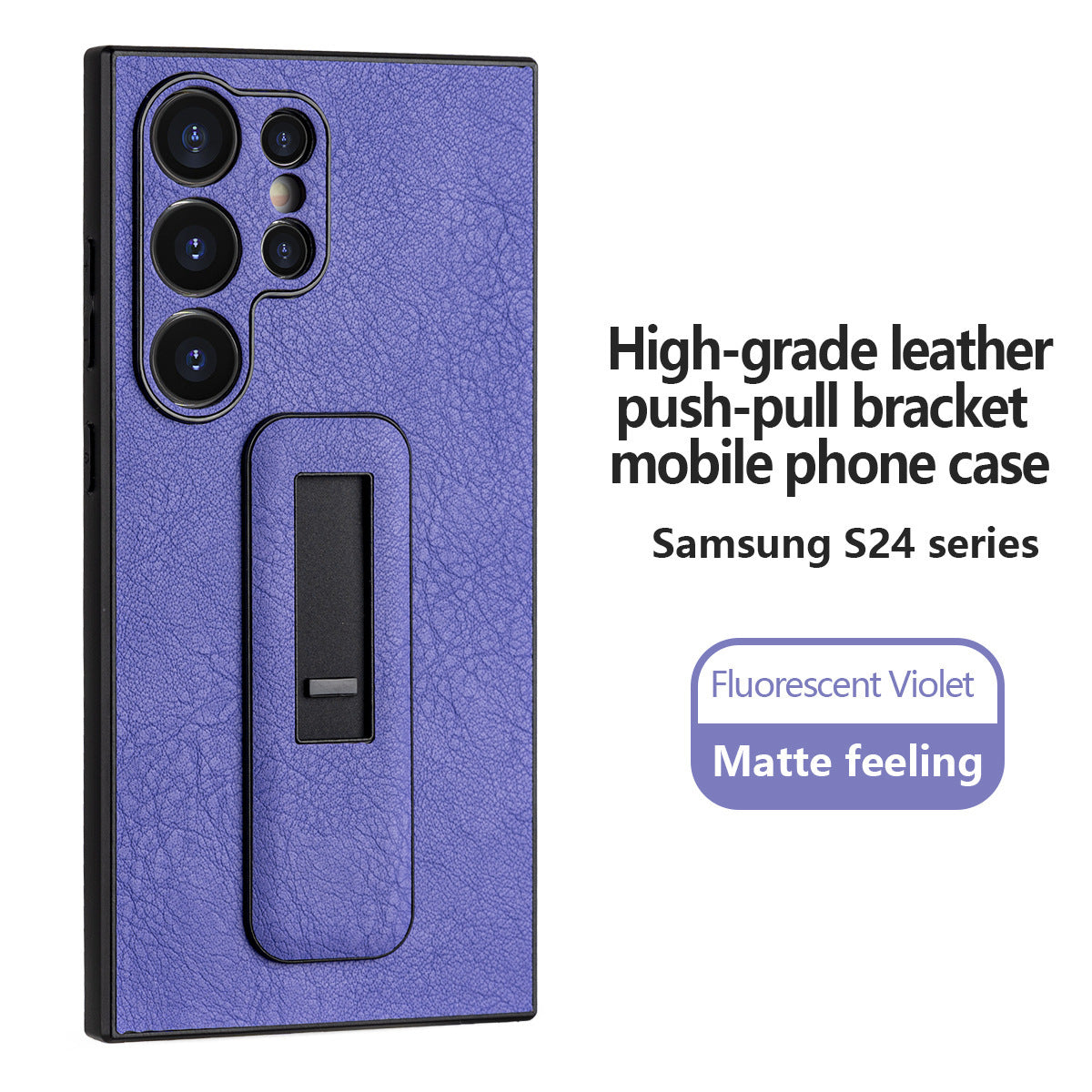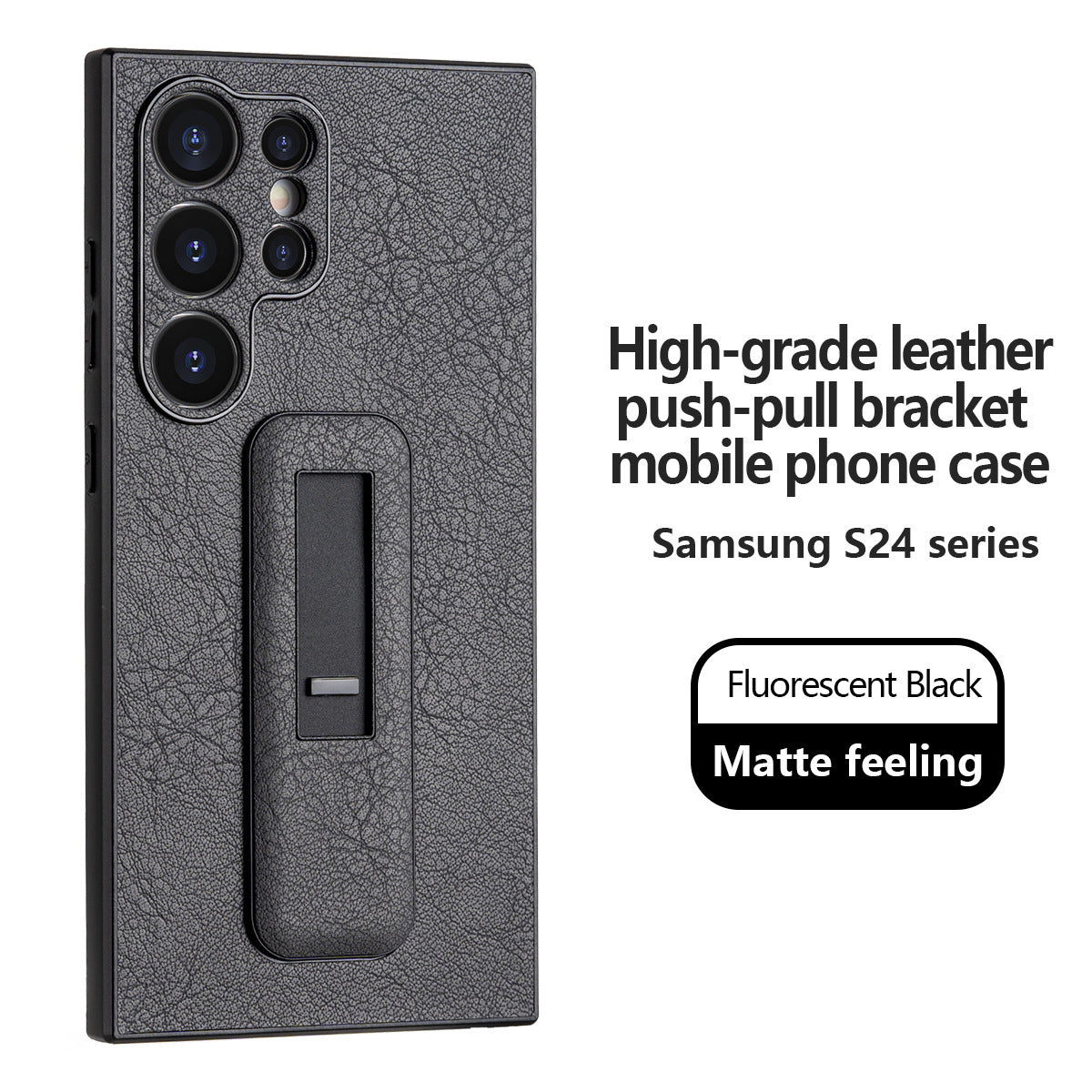 Invisible Push-pull Bracket Plain Leather Phone Case For Samsung