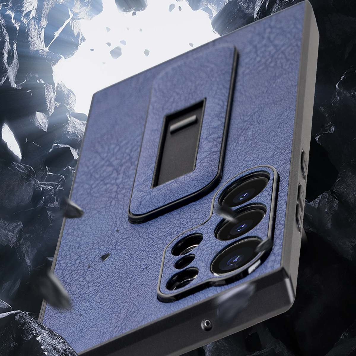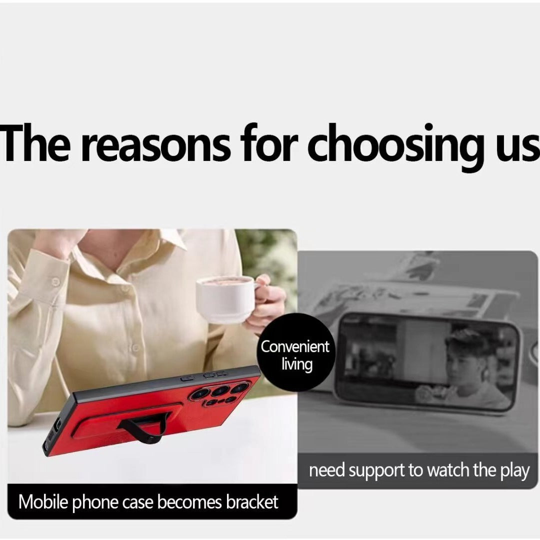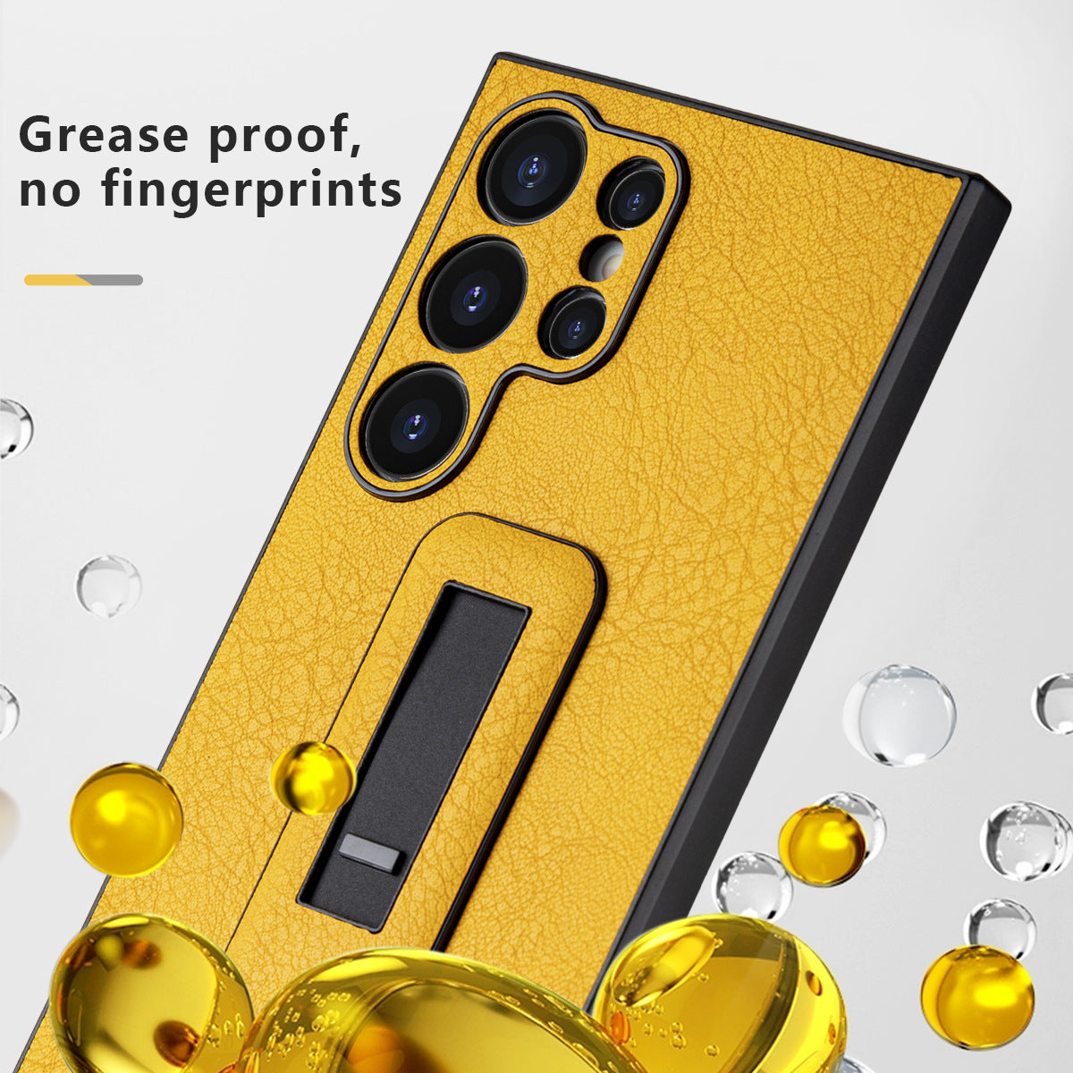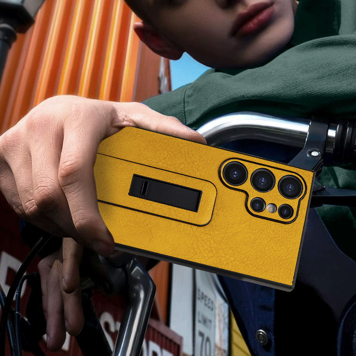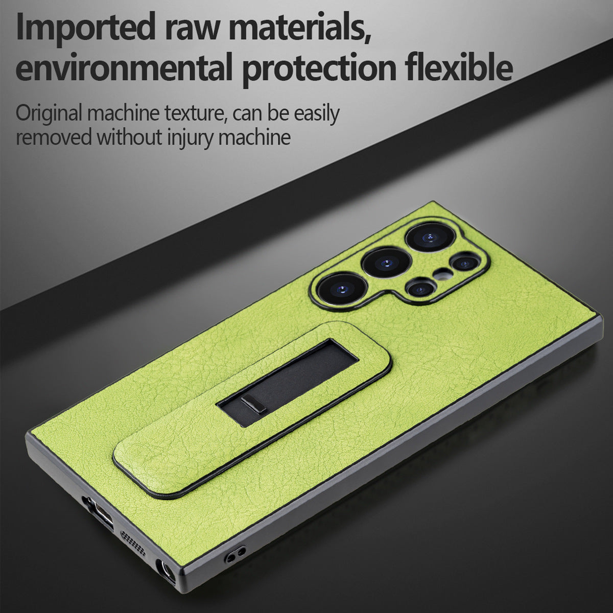 Invisible Push-pull Bracket Plain Leather Phone Case For Samsung