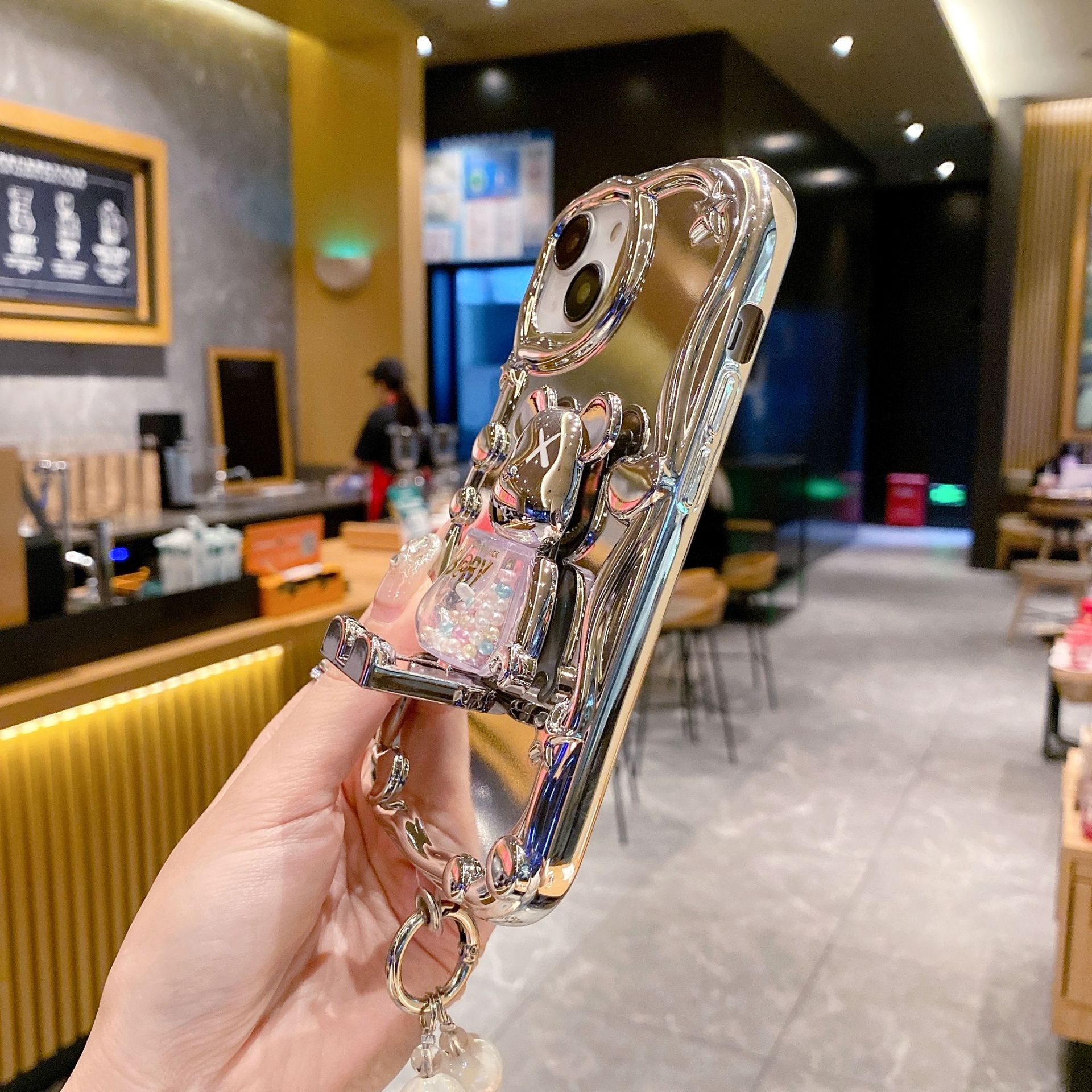 iPhone advanced violent bear quicksand series mobile phone protective case + bracelet Be applicable iphone 11/12/13/14/15series. Add glamor to your iPhone with our high-quality cases