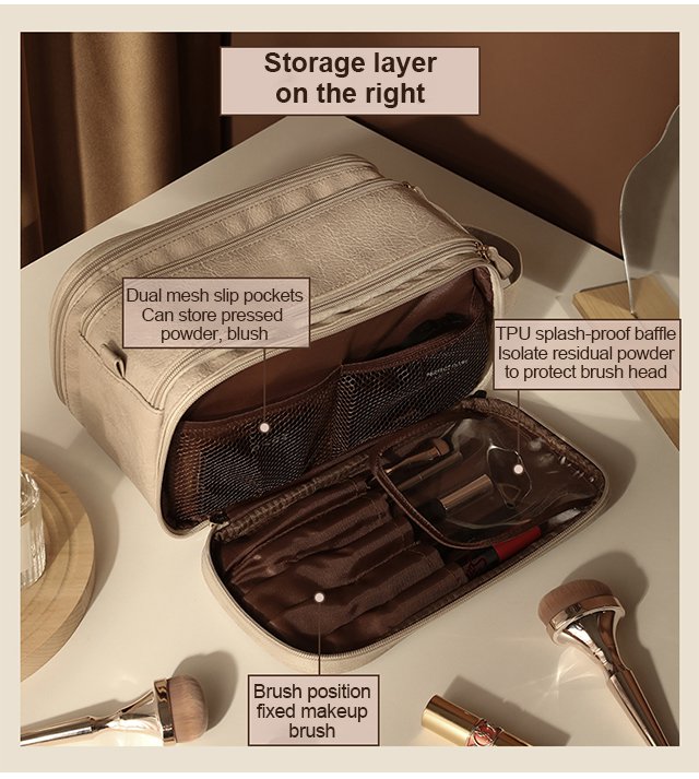Large Capacity -- Multi-compartment/ double-layer design with a super large capacity can hold all the cosmetics and makeup tools you need. Separate storage keeps everything in order and mess-free.