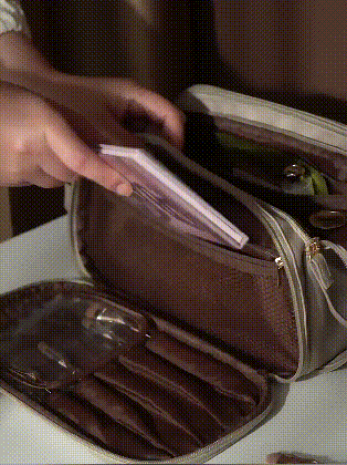 Multifunctional Storage Makeup Bag -- This makeup bag not only stores your cosmetics, but also jewelry, electronic accessories, camera, essential oil, toiletries, shaving kit, glasses, valuable objects, and so on.