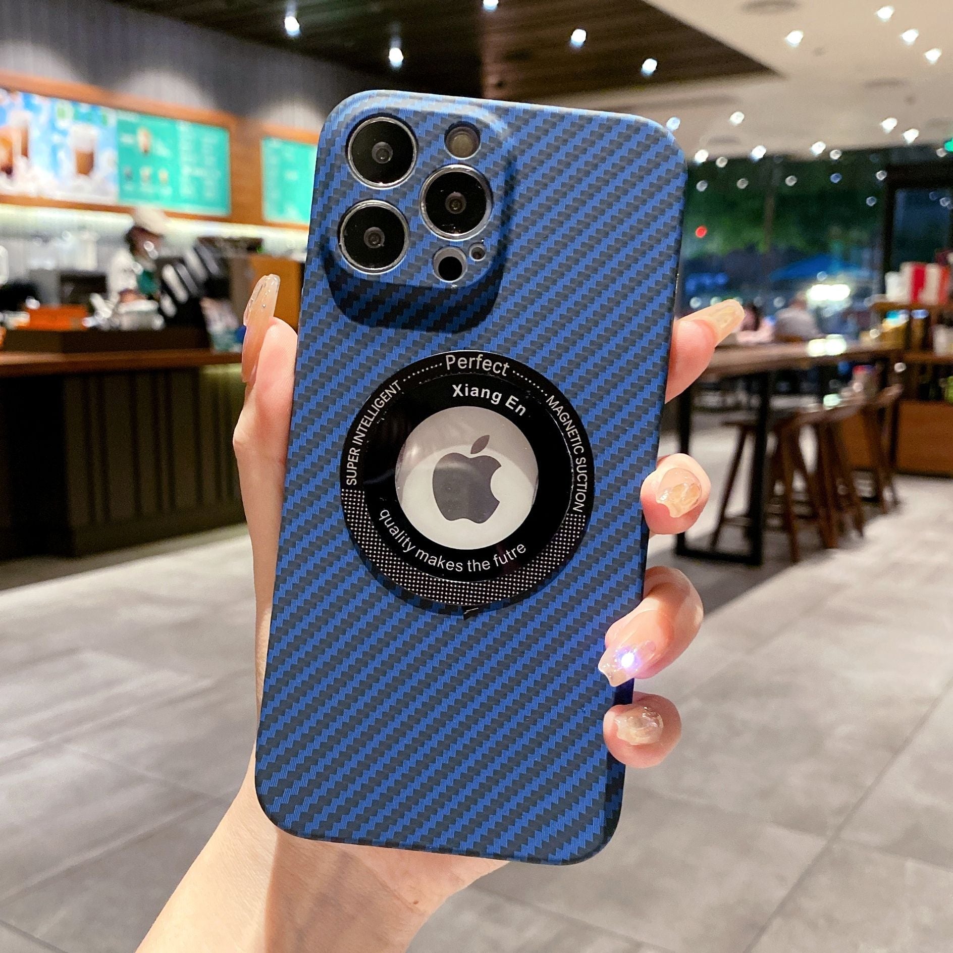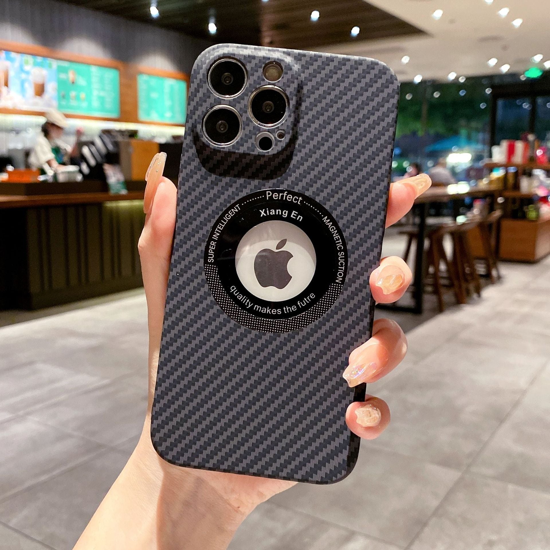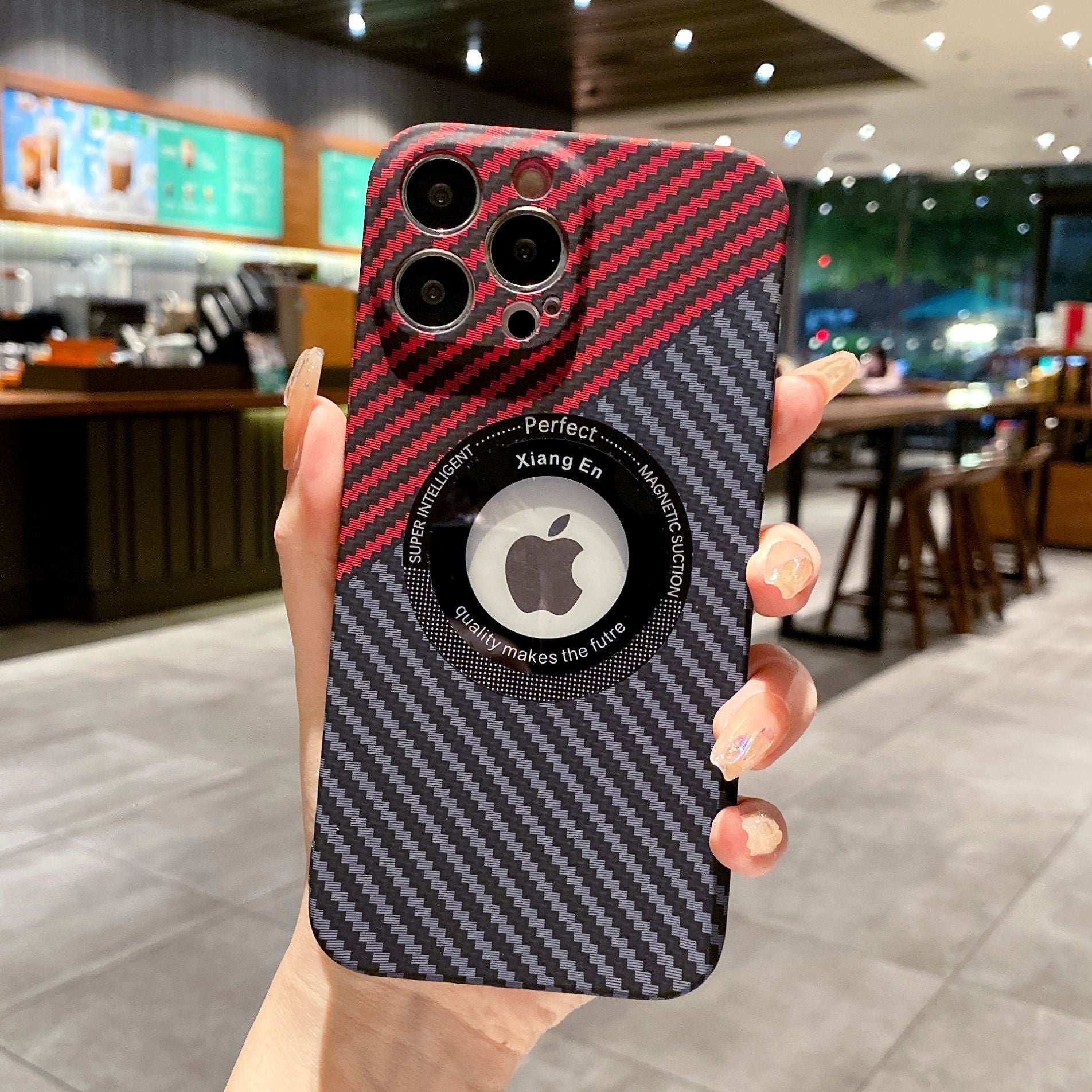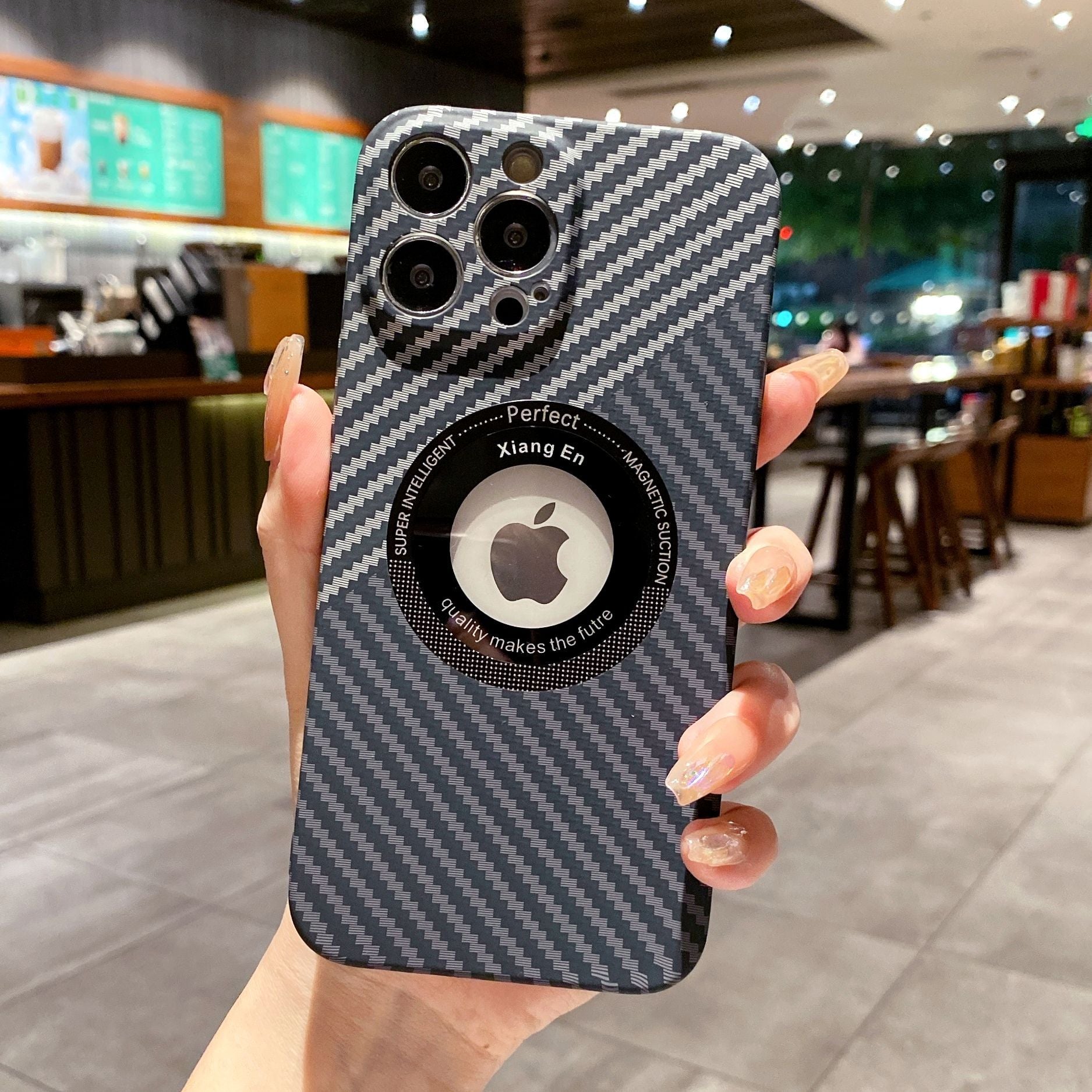 Logo Hole Carbon Fiber Magnetic Wireless iPhone Case