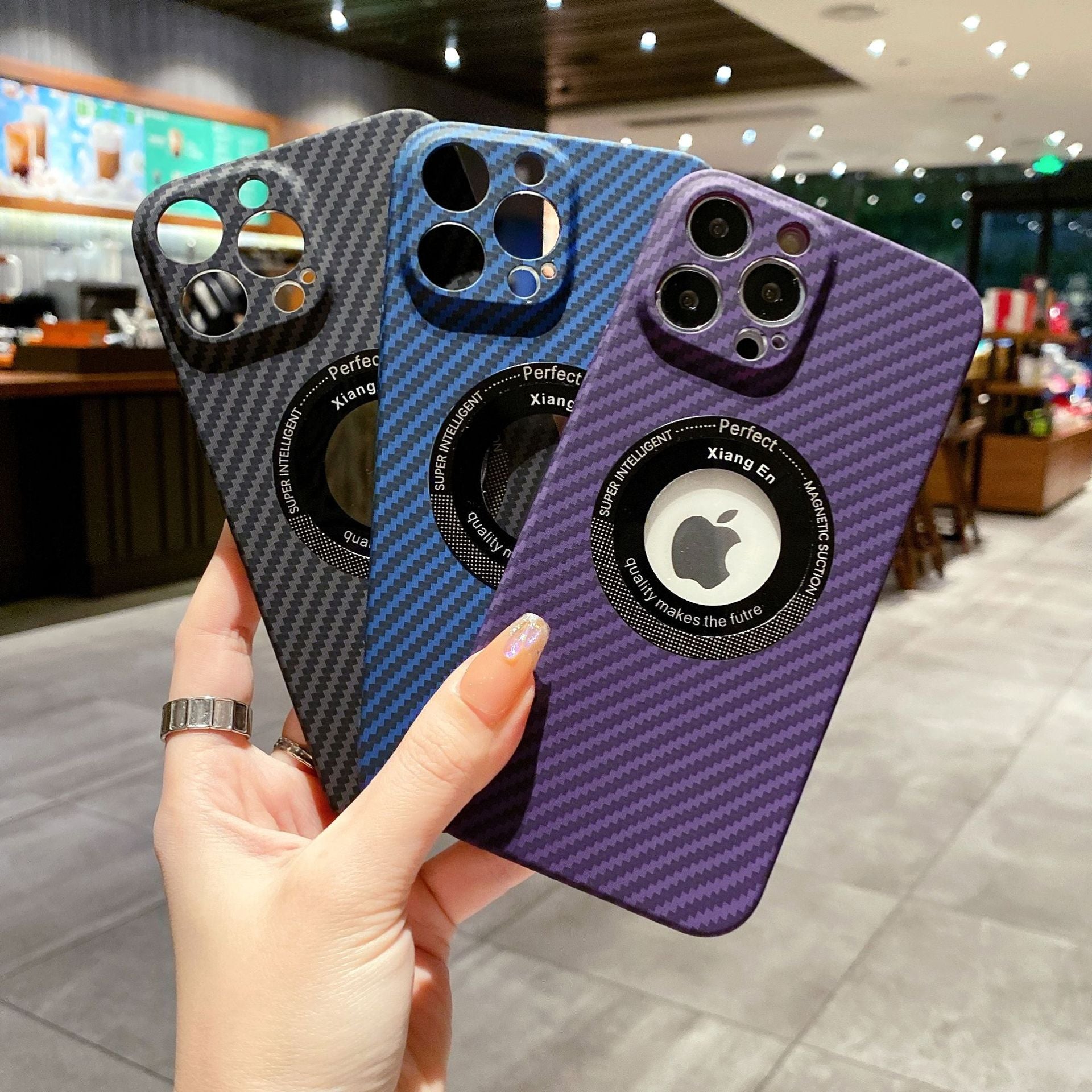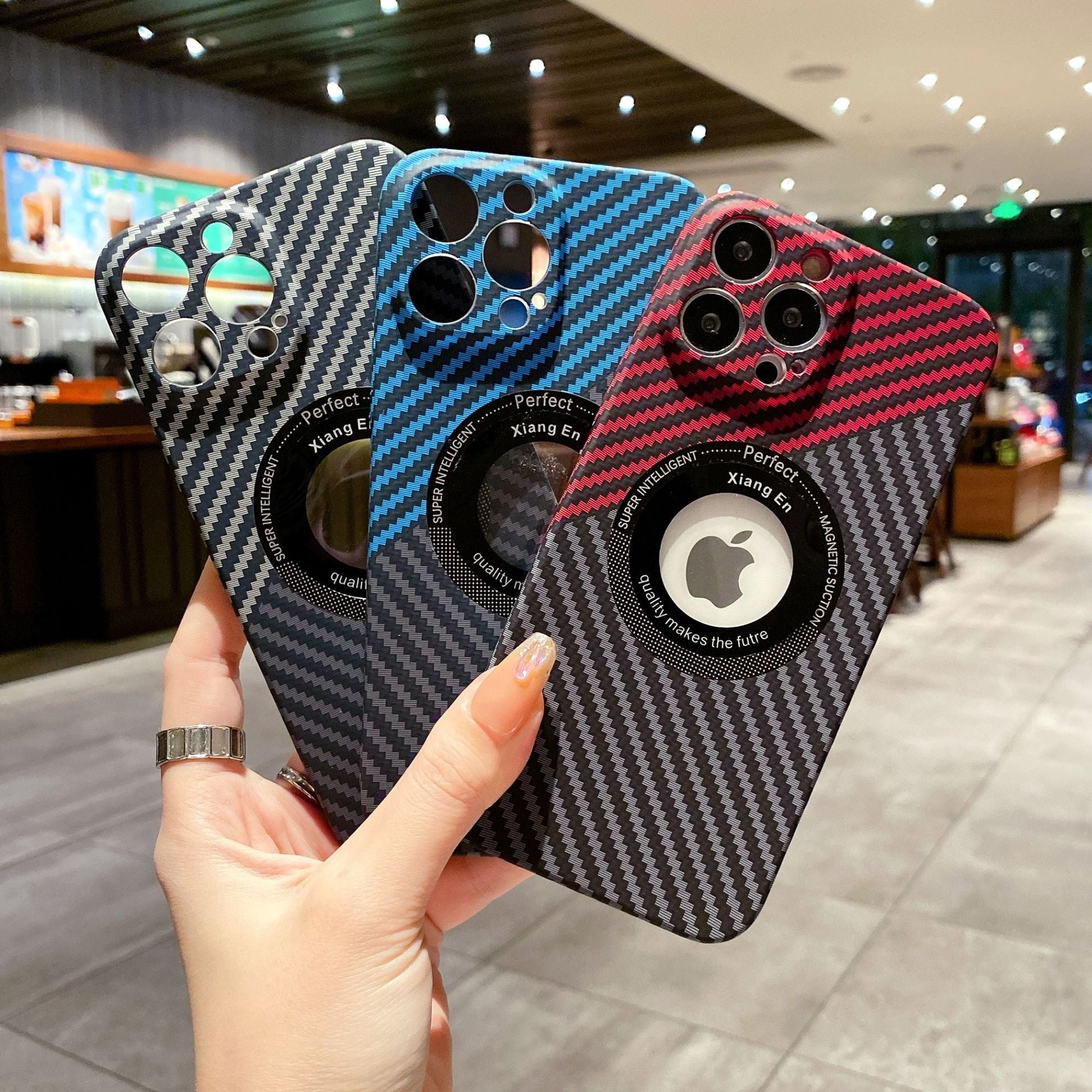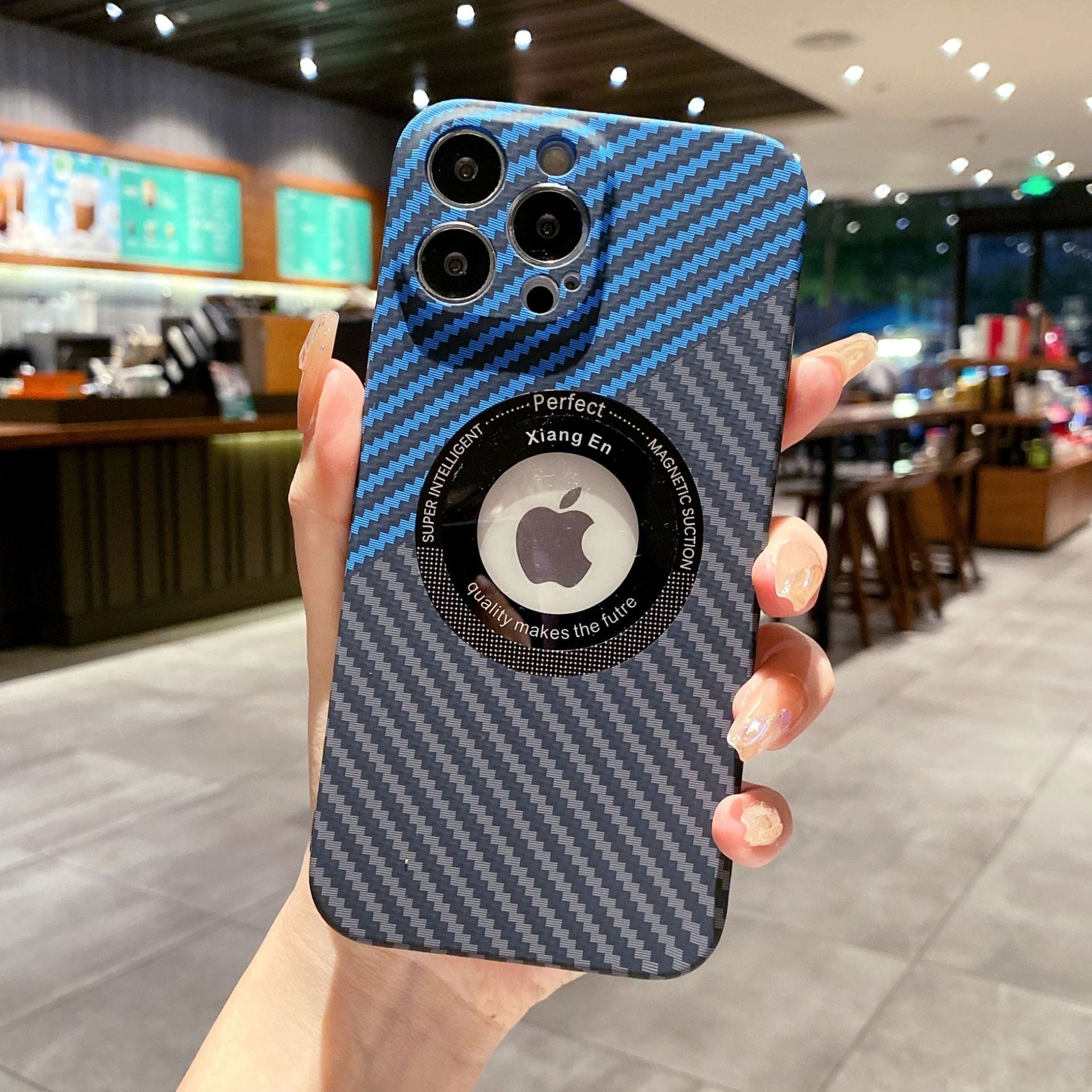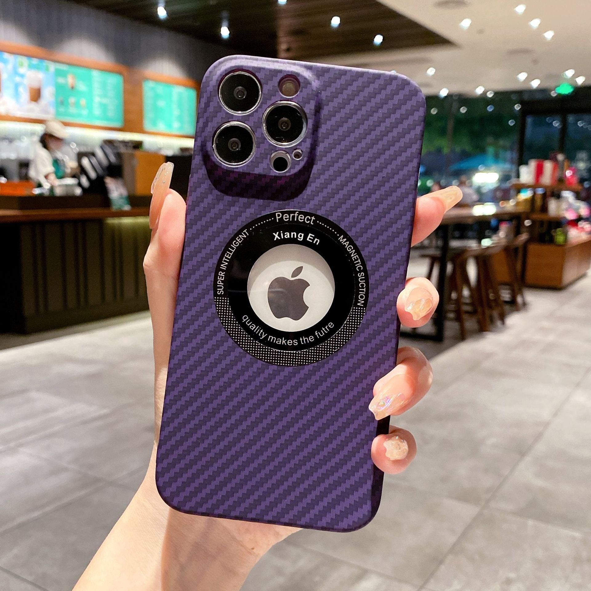 Logo Hole Carbon Fiber Magnetic Wireless iPhone Case