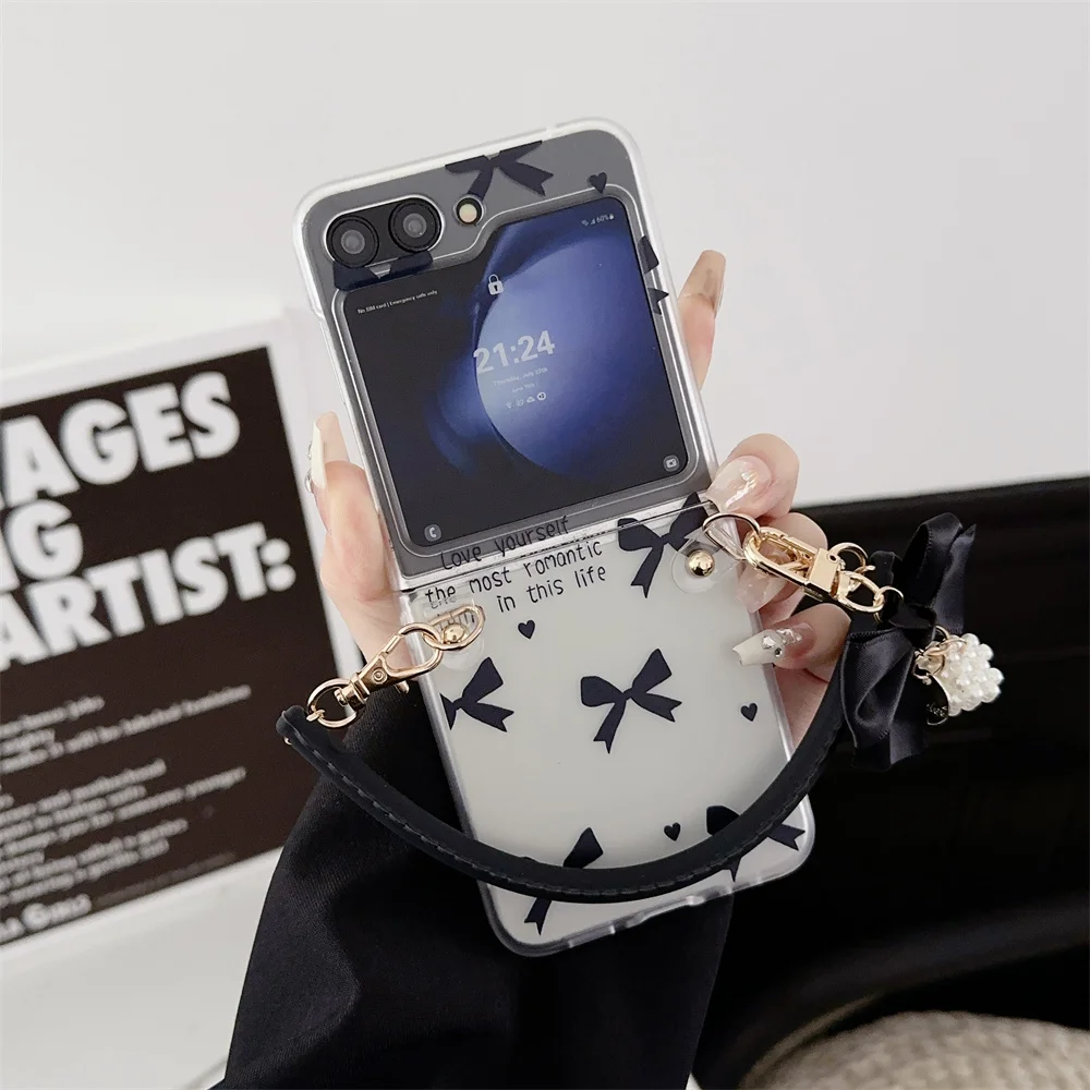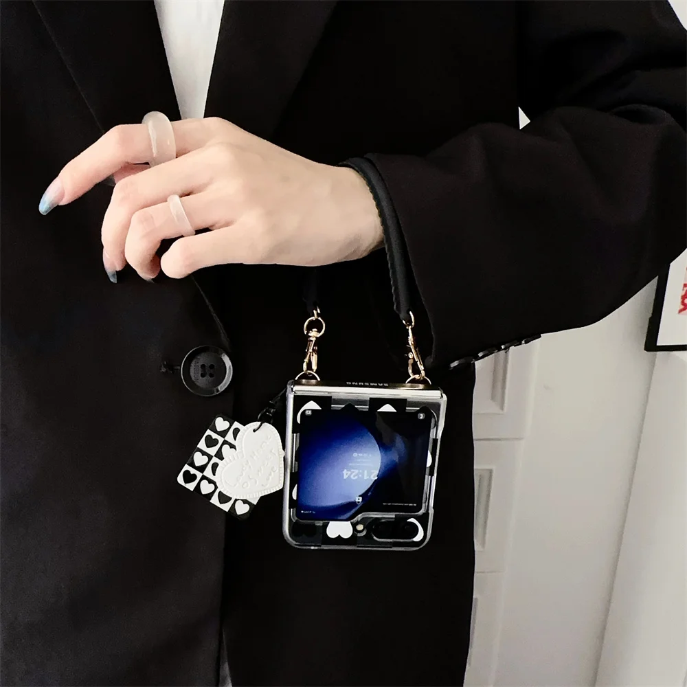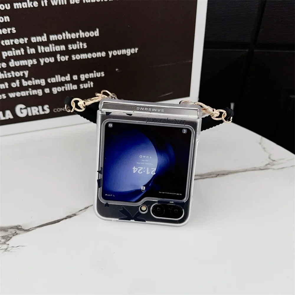 Enhance your Samsung Galaxy Z Flip Series with the Luxury Flower Heart Bracelet Case. This exquisite case features a sophisticated design with flower and heart motifs, complemented by a stylish bracelet strap. Crafted from premium materials, it offers robust protection against scratches and minor impacts while maintaining a slim profile. Designed for both style and functionality, it ensures easy access to all ports and buttons, making it a perfect accessory for your Galaxy Z Flip.