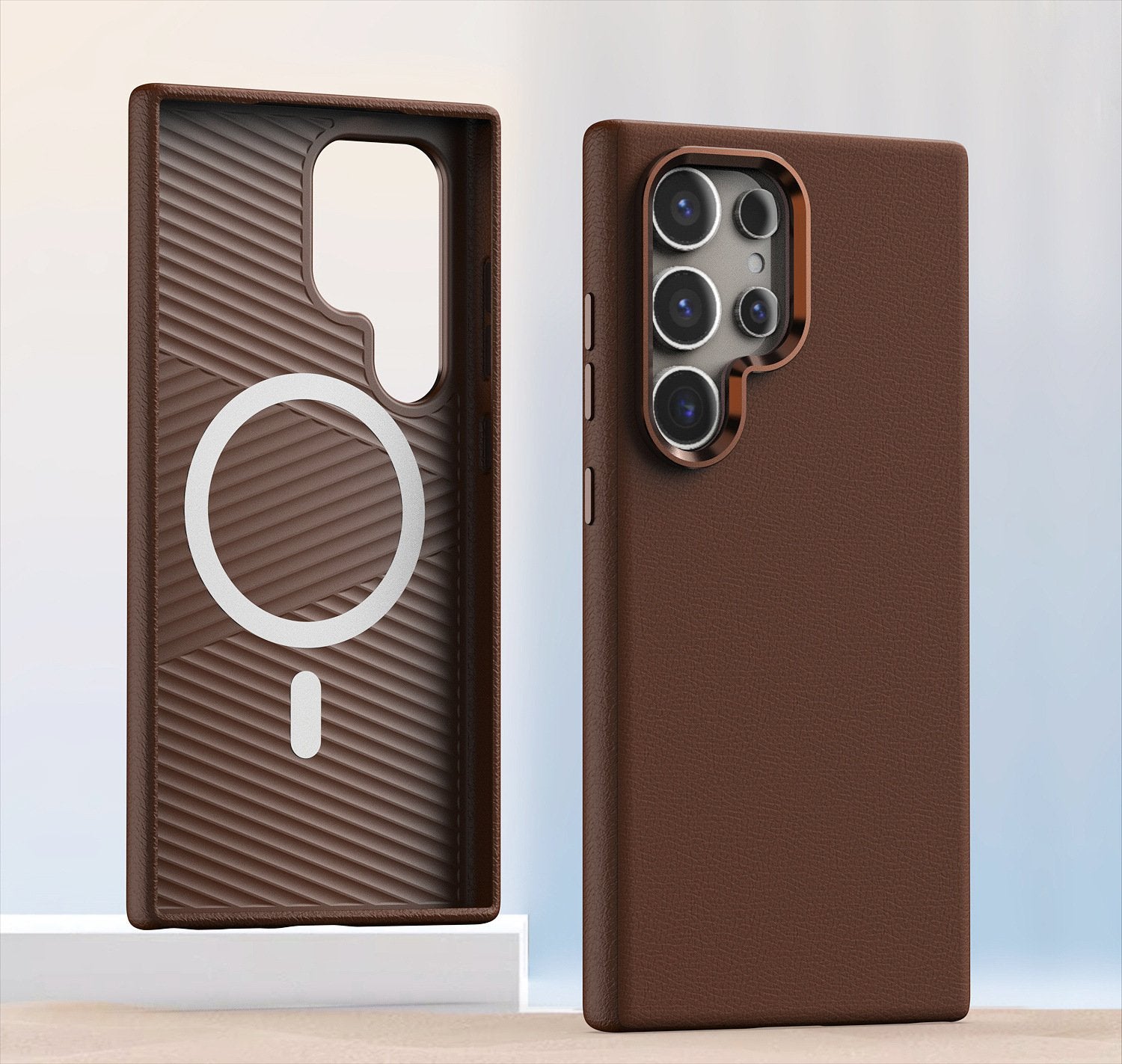 Luxury For Wireless Charging MagSafe Magnetic Soft TPU Leather Cover For Samsung Galaxy S24 Ultra Plus FE