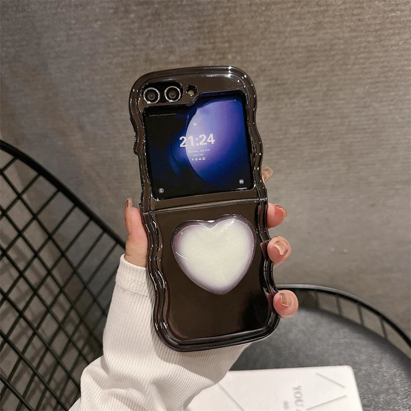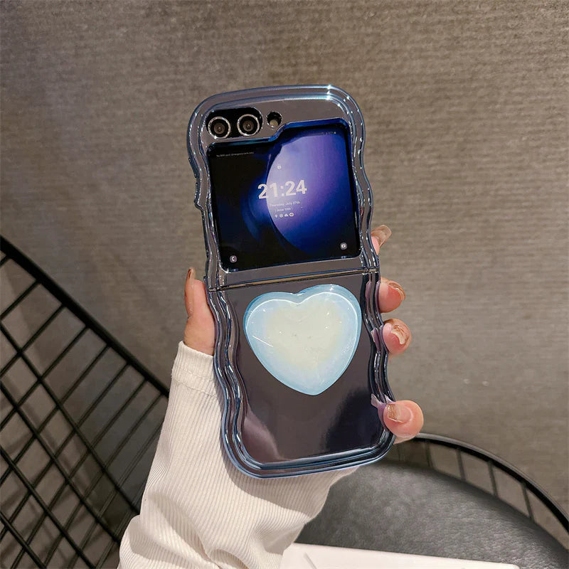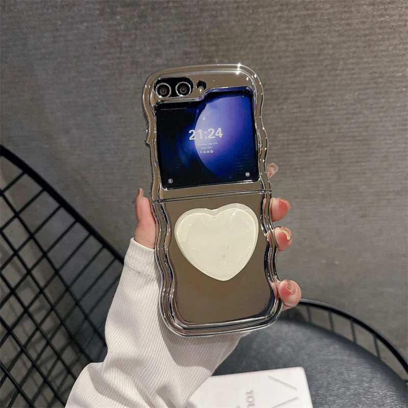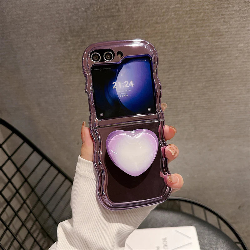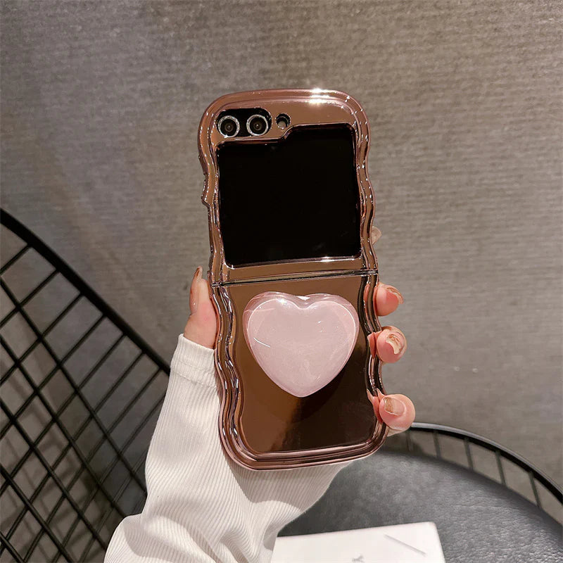 Luxury Heart Stand Plating Wave Edge Phone Case For Samsung Galaxy Z Flip Series