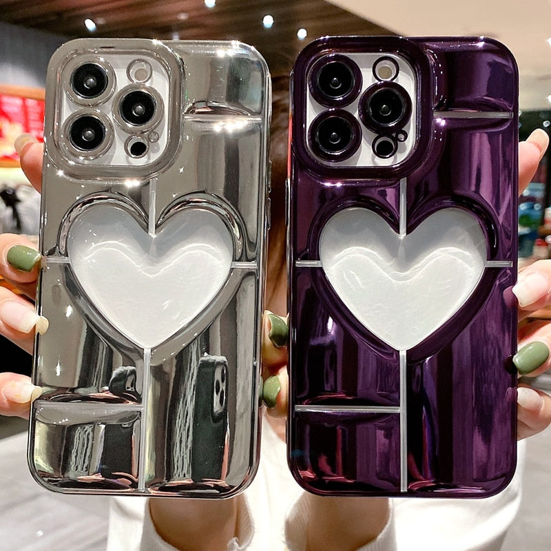 Luxury Soft Love Heart Phone Case For IPhone 14 /13 /12 Shockproof Silicone Electroplate Bumper Cover