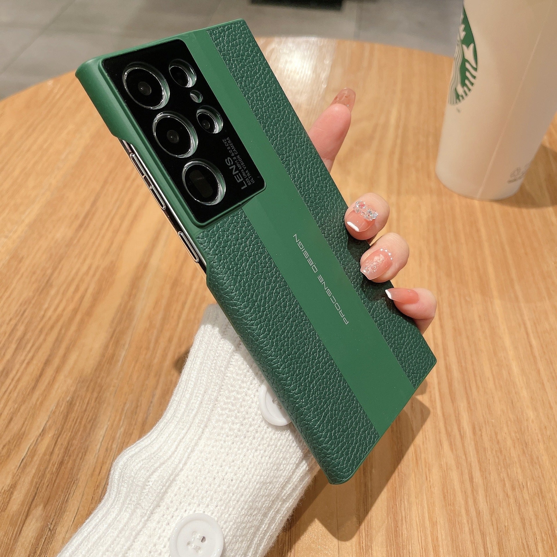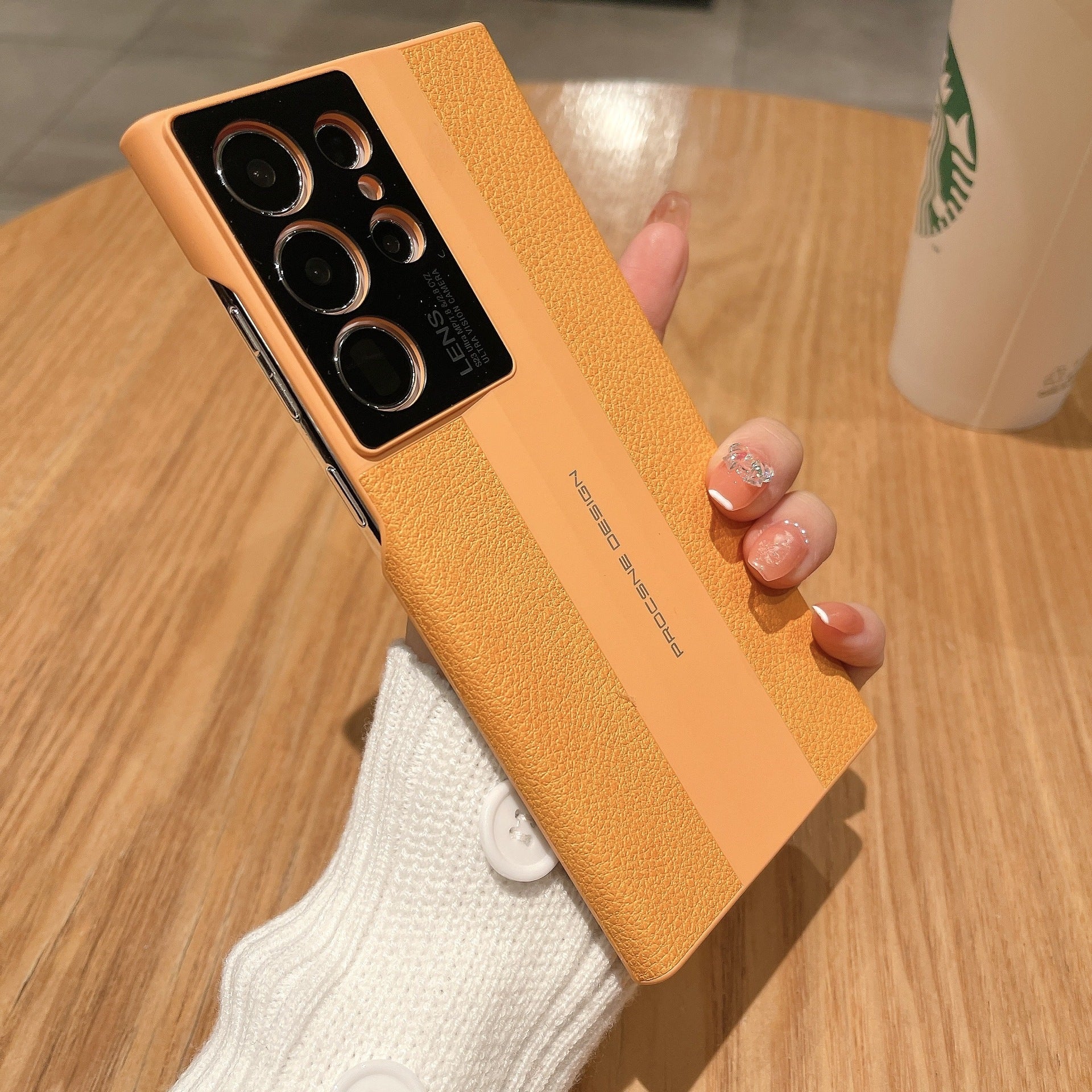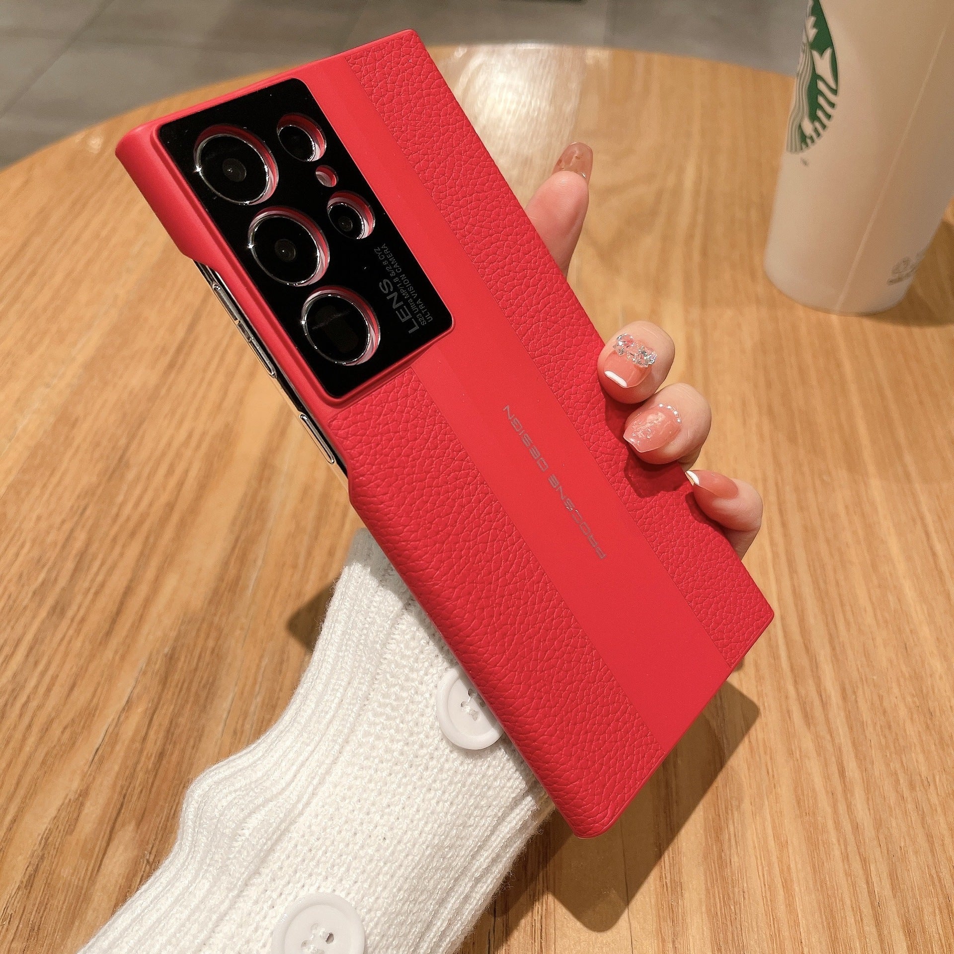 Leather Porsche Print Metal Lens Phone Case For Samsung