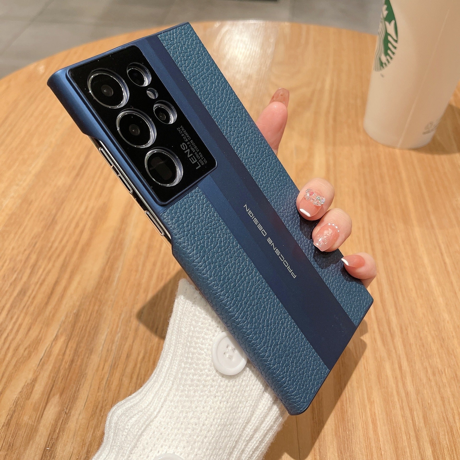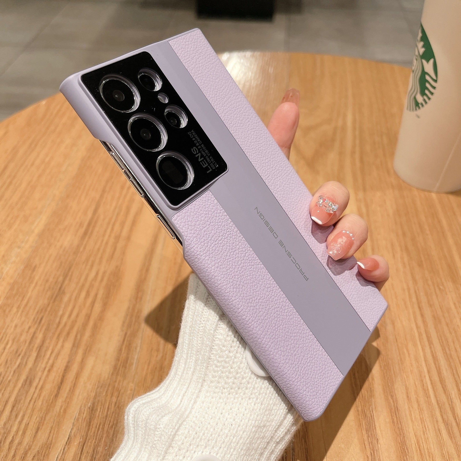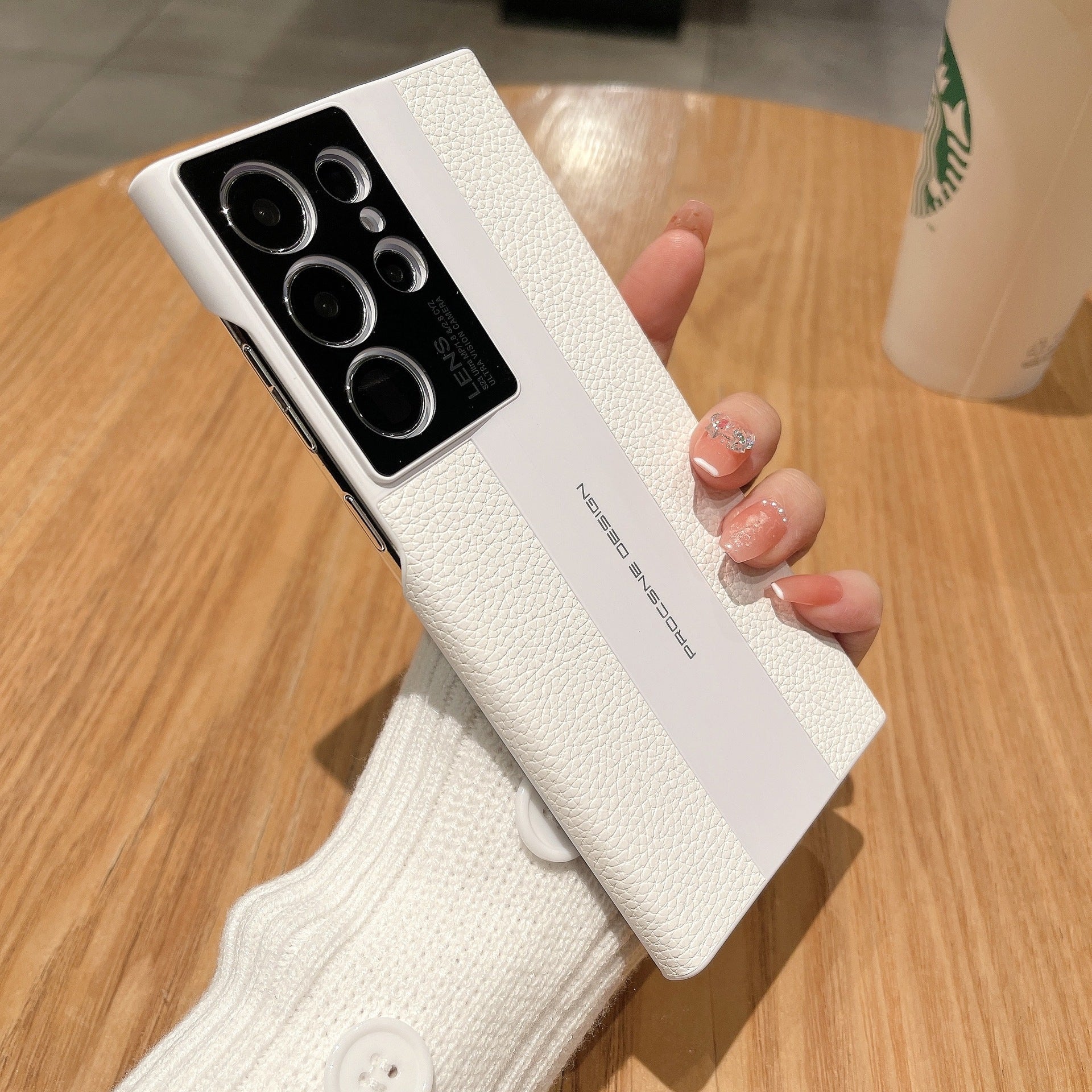 Leather Porsche Print Metal Lens Phone Case For Samsung