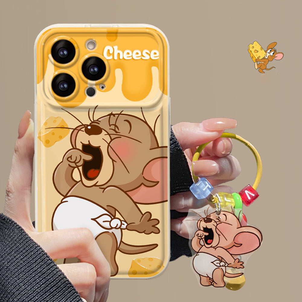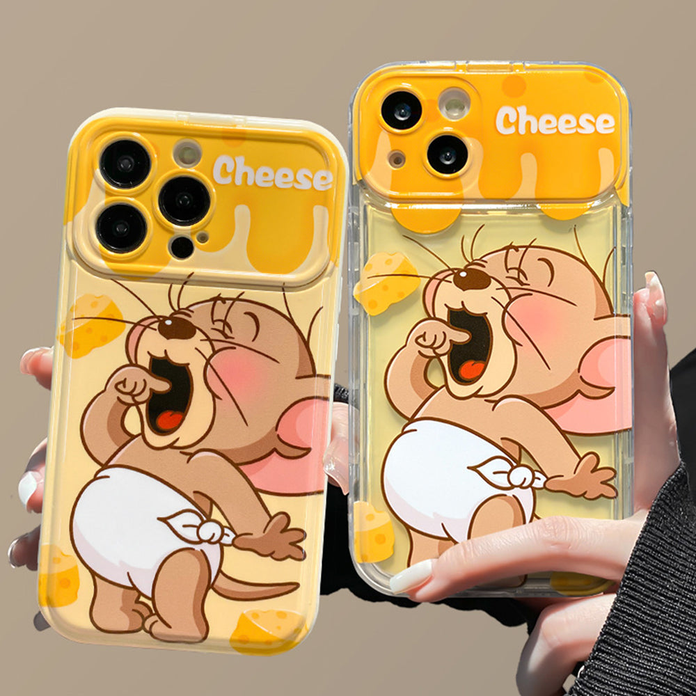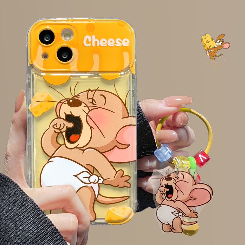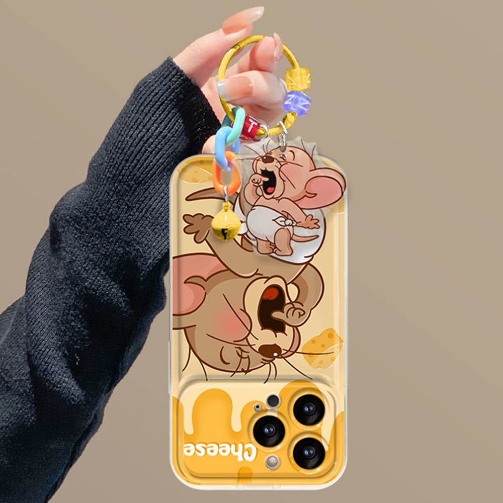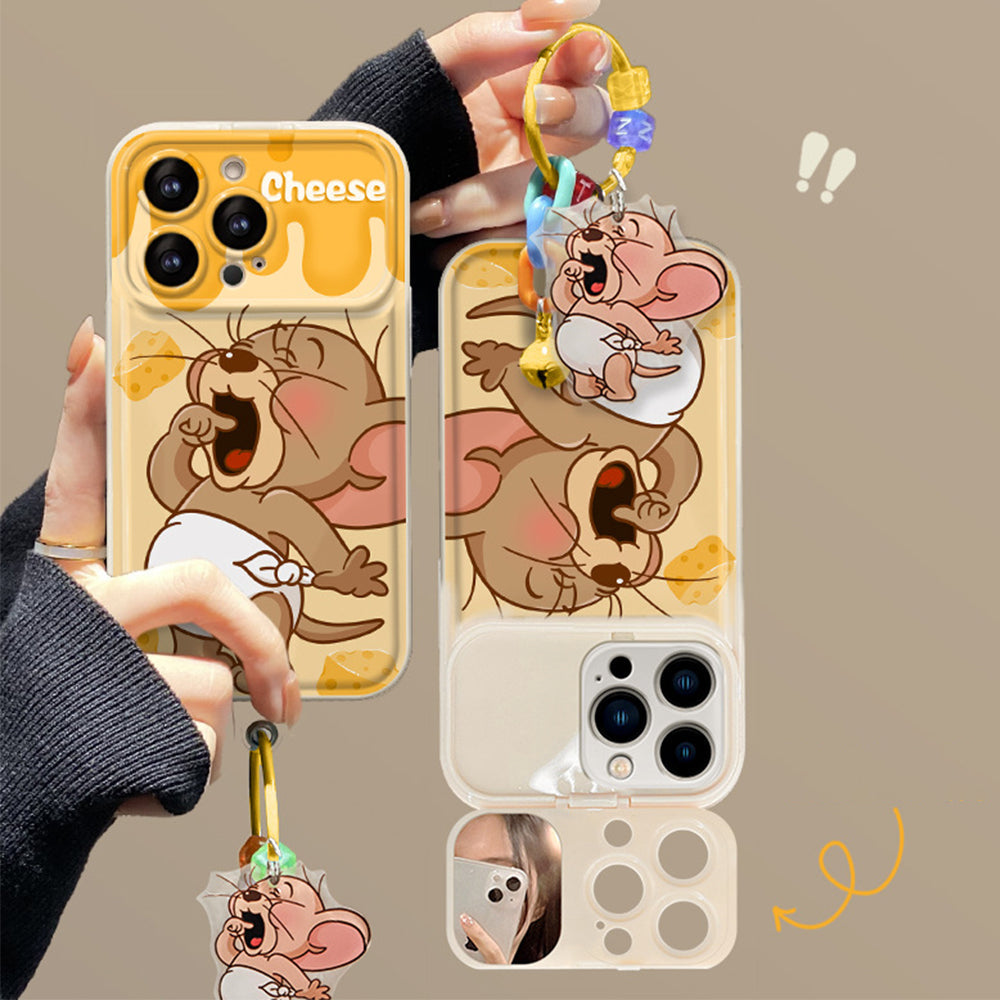 Mickey Mouse Cute Cheese Pendant Phone Case With Flip Mirror