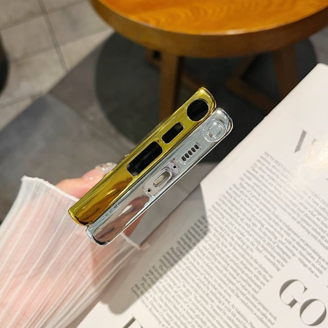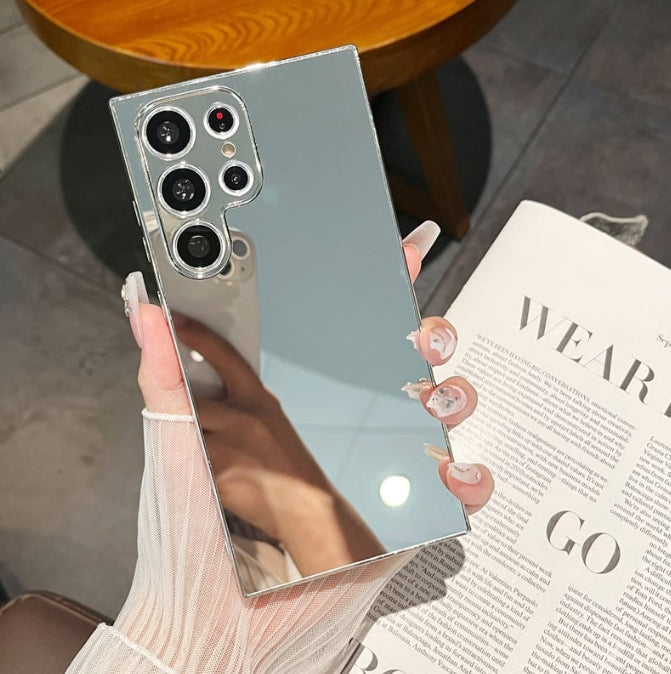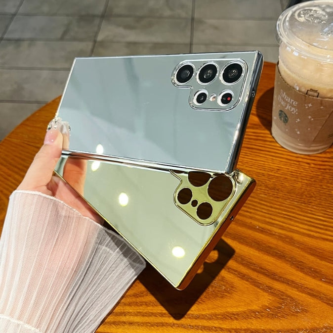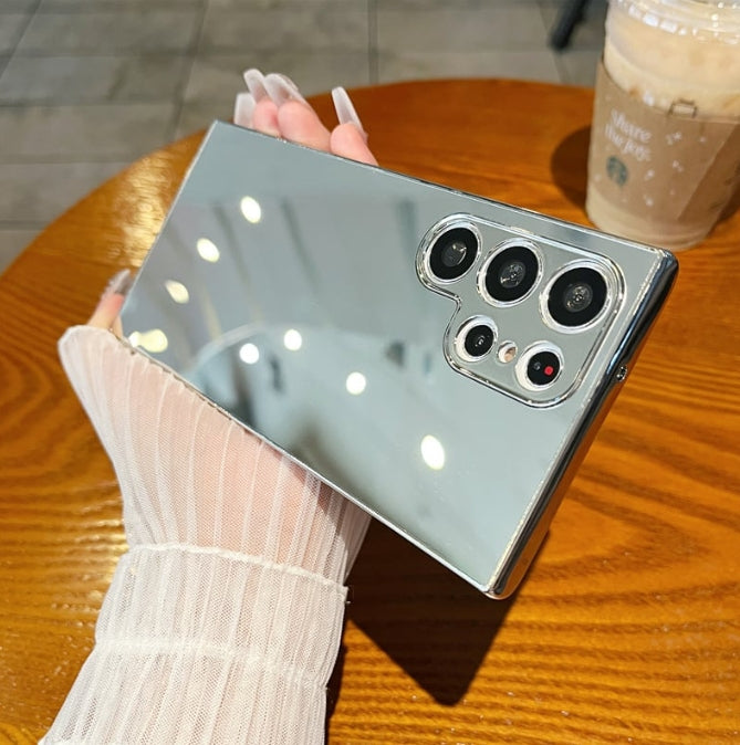 This Samsung phone case boasts a sleek mirror-plated design, offering both style and functionality. Its reflective surface not only enhances the device's aesthetic appeal but also provides a protective layer against scratches and minor impacts.