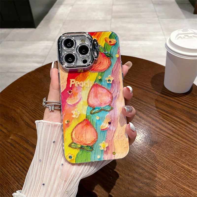 New Chinese style oil painting full-cover lens holder anti-fall phone case